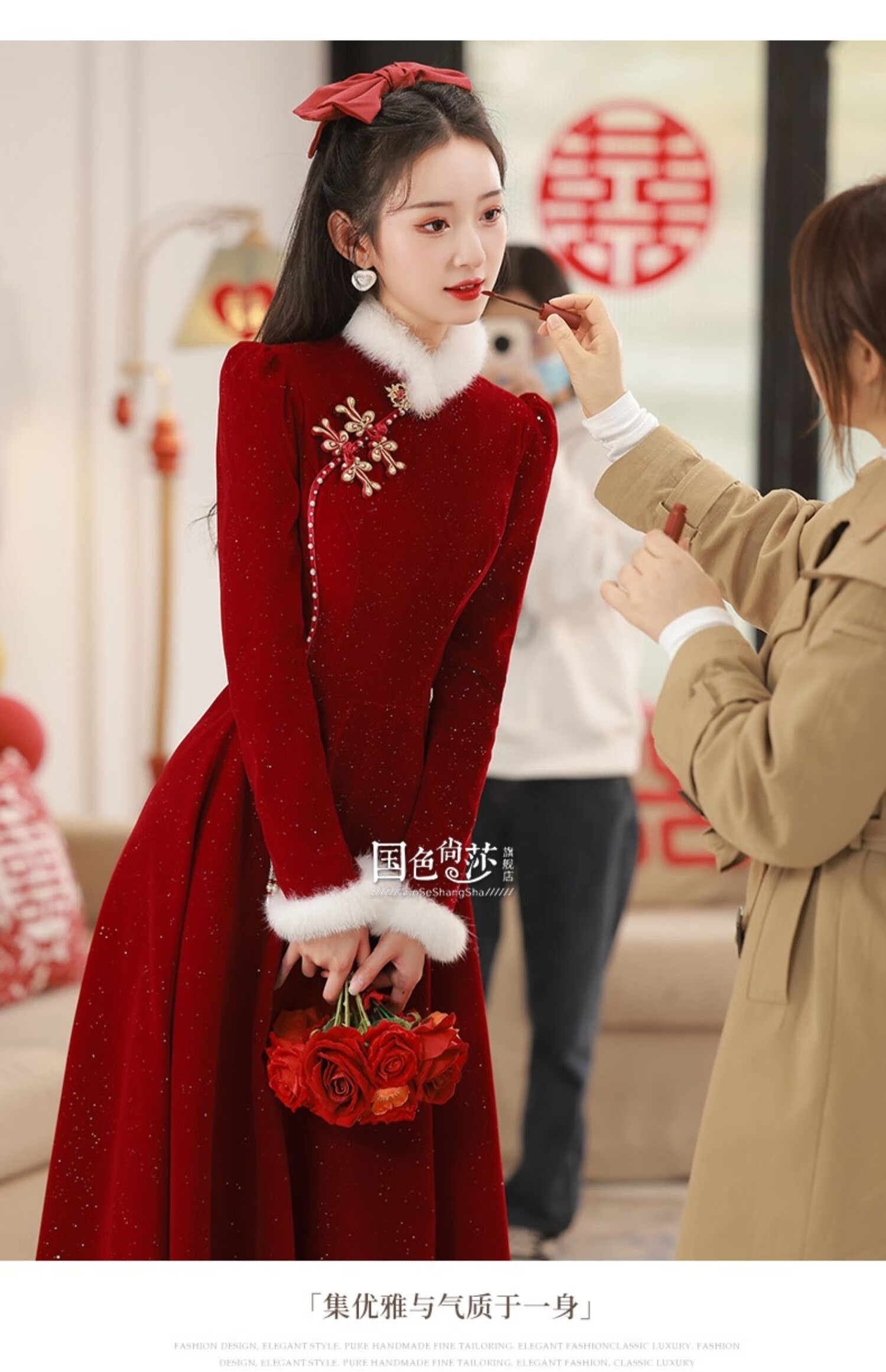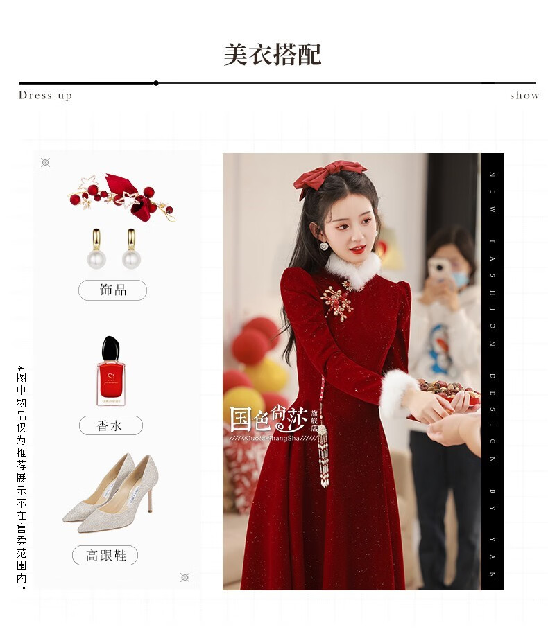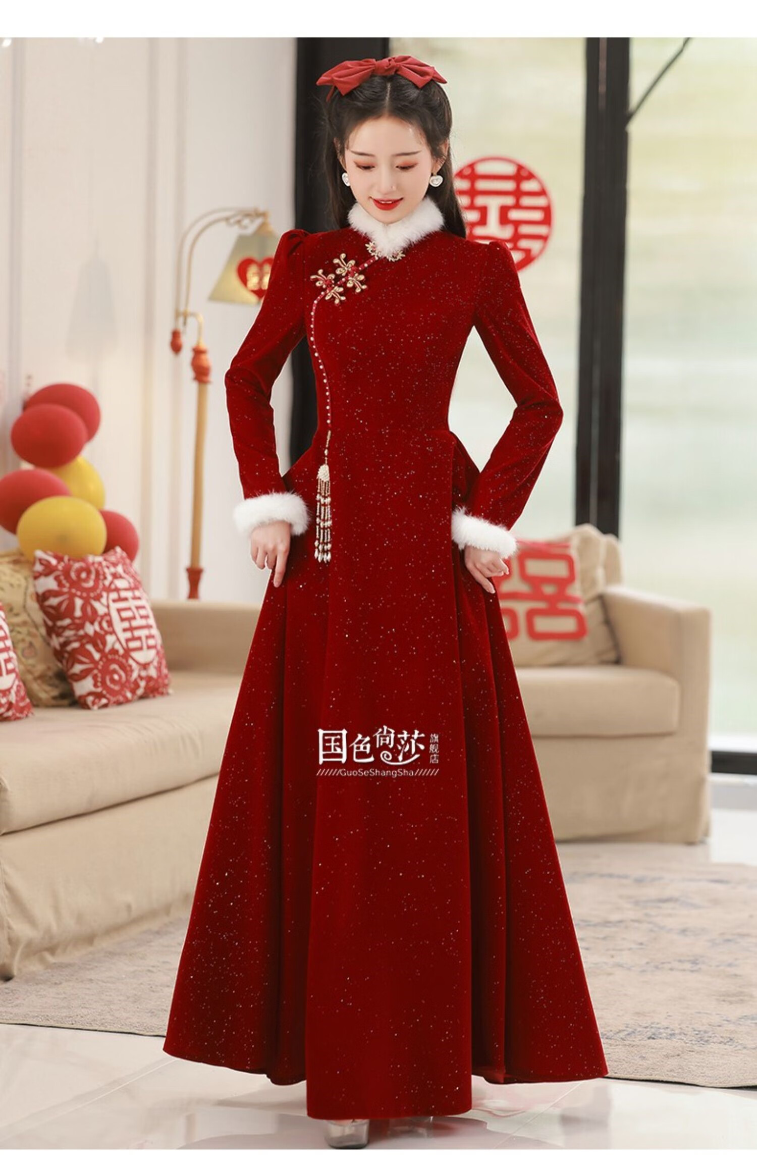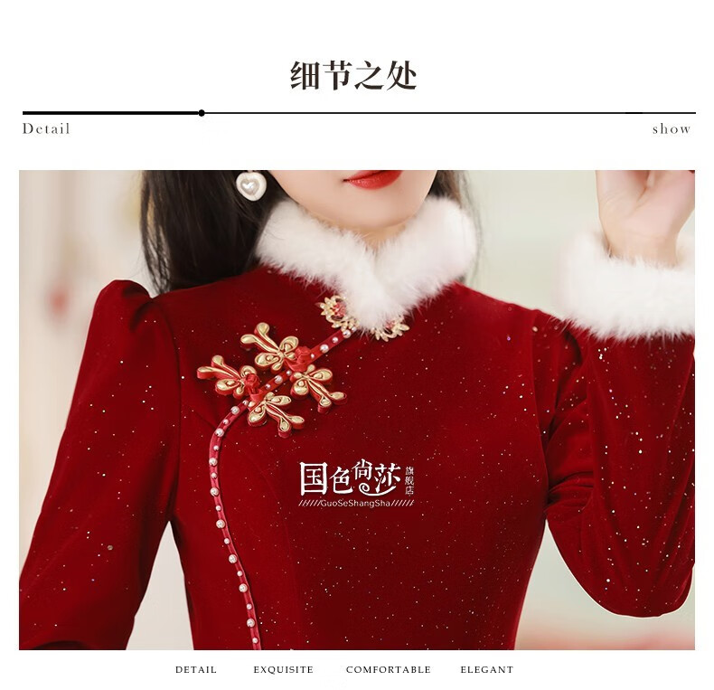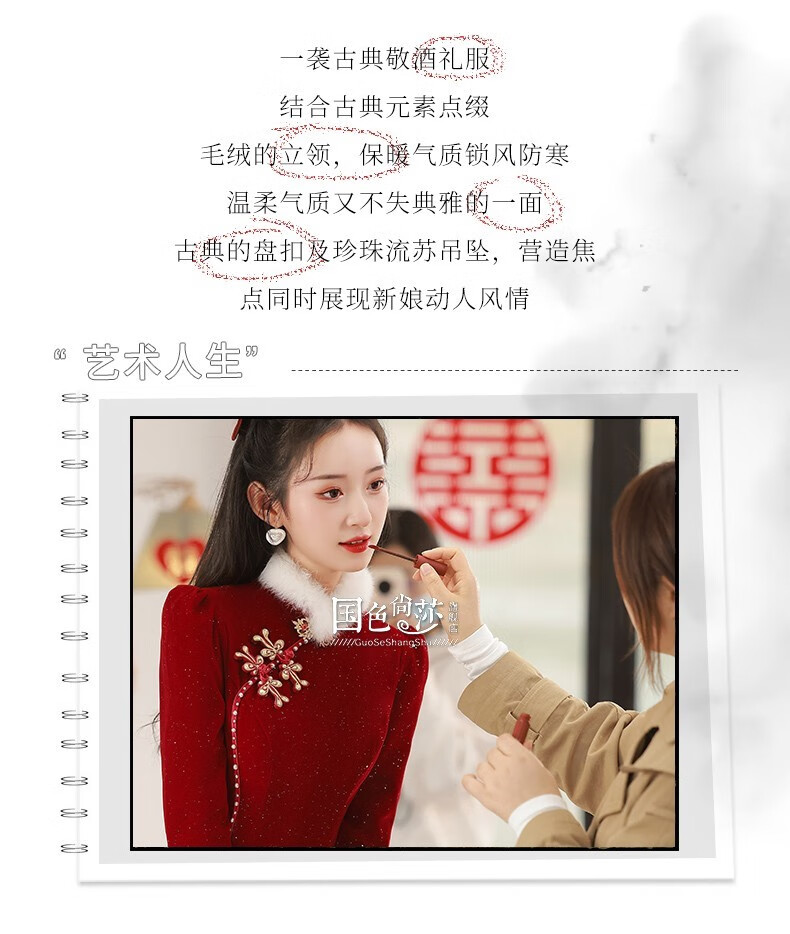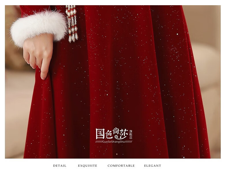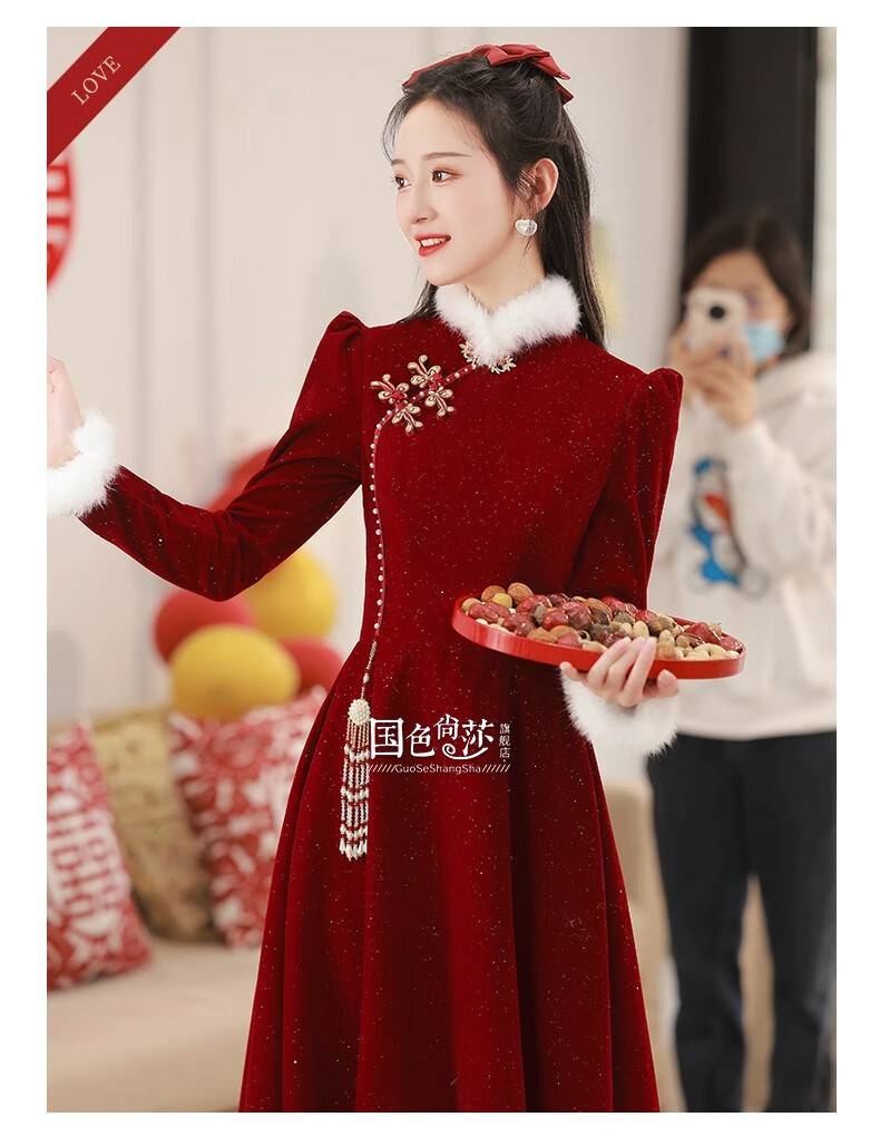 Lanka Roni Cheongsam Toast Wear Bride 2025 New Burgundy Winter Wedding Dress Women's Chinese Style Thick Style Engagement gs768 Burgundy Long Style M