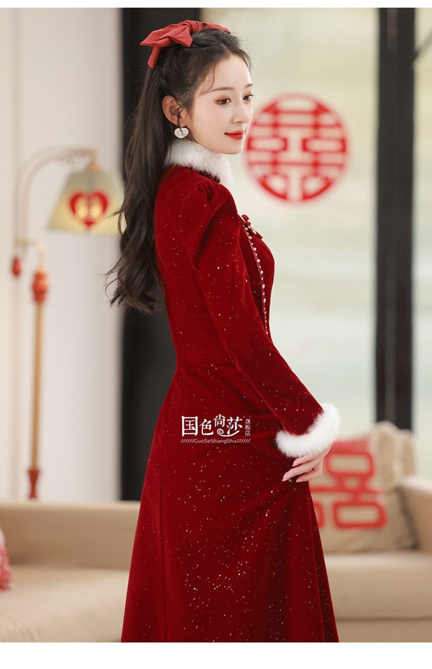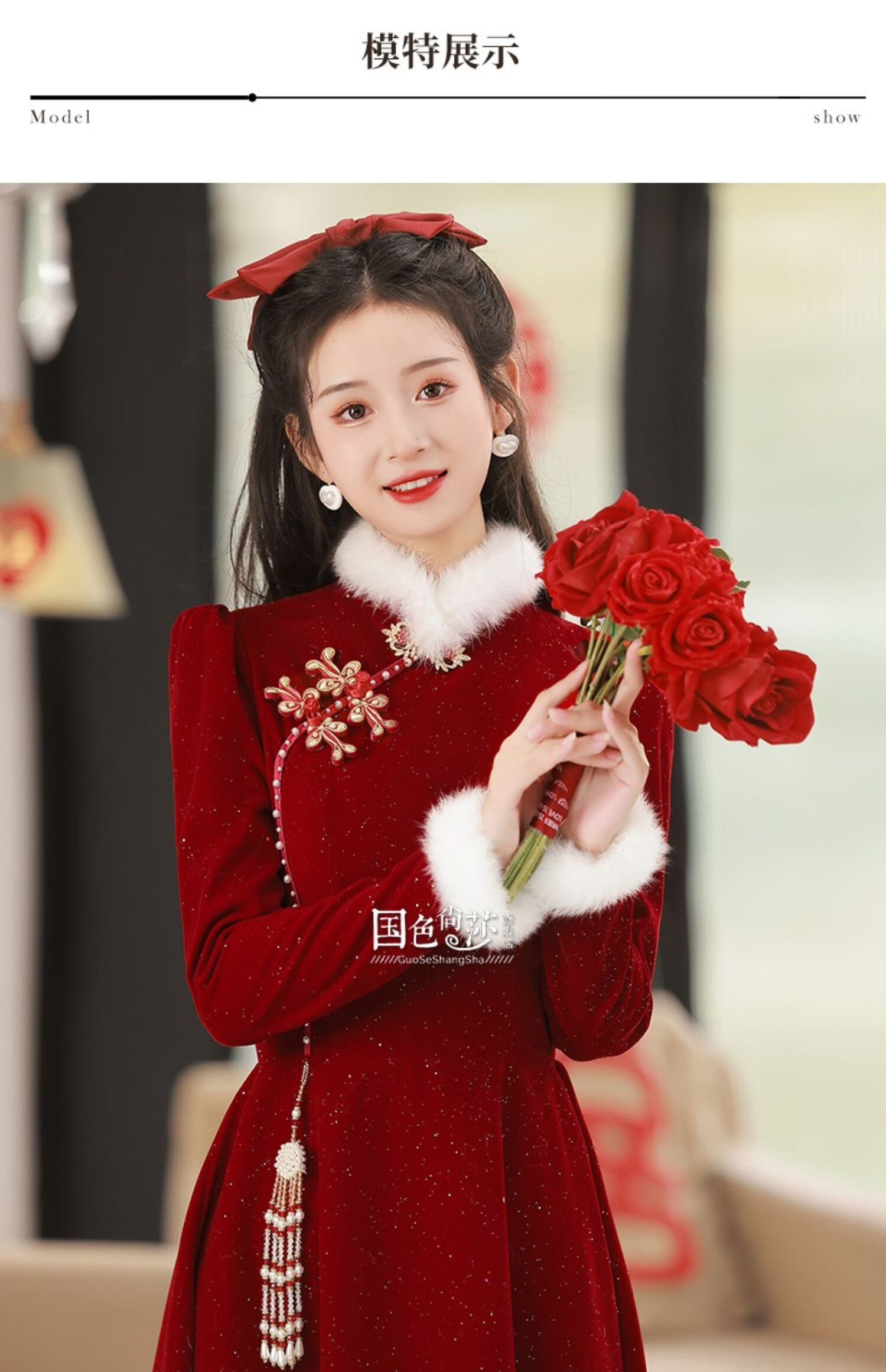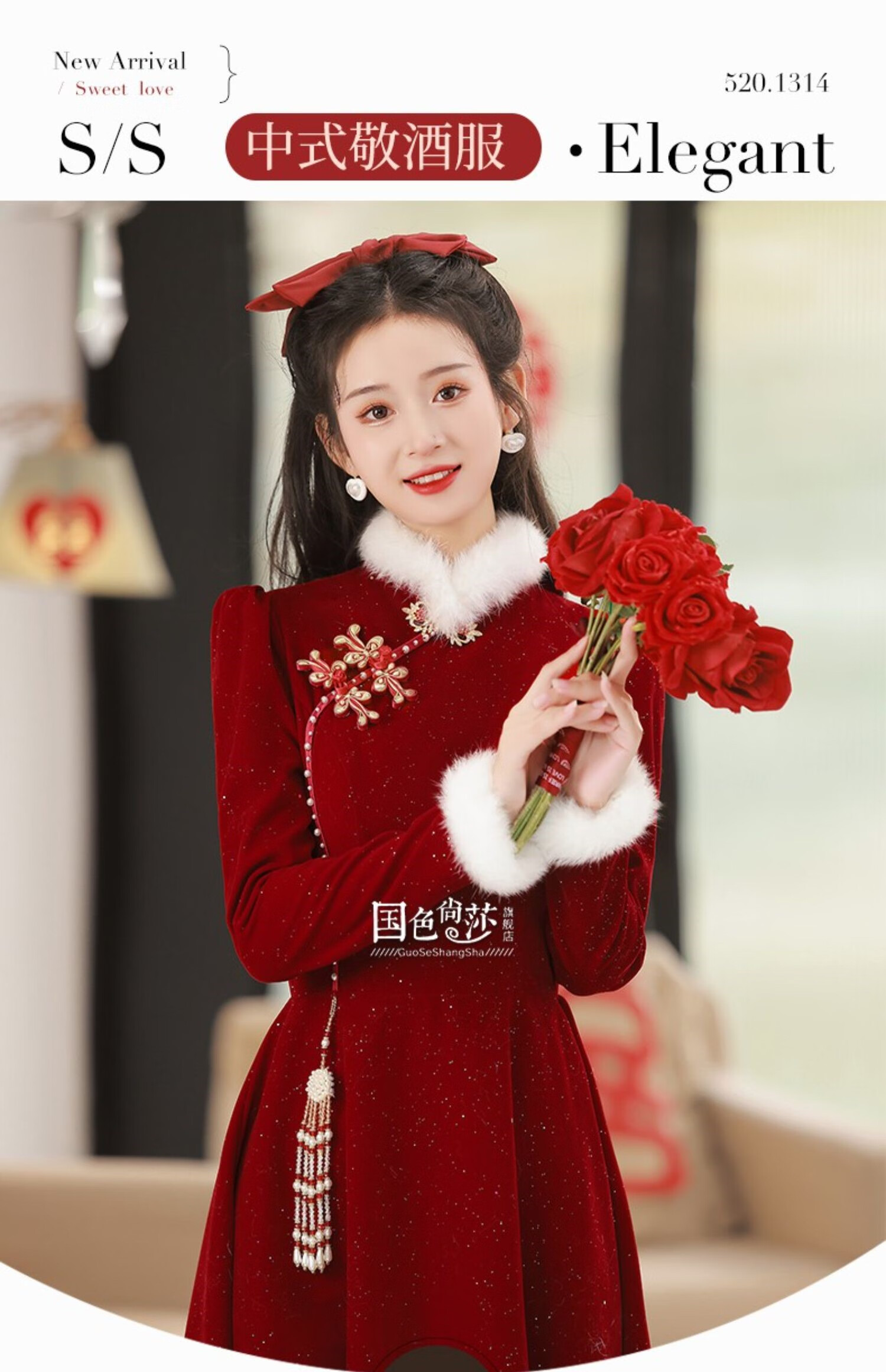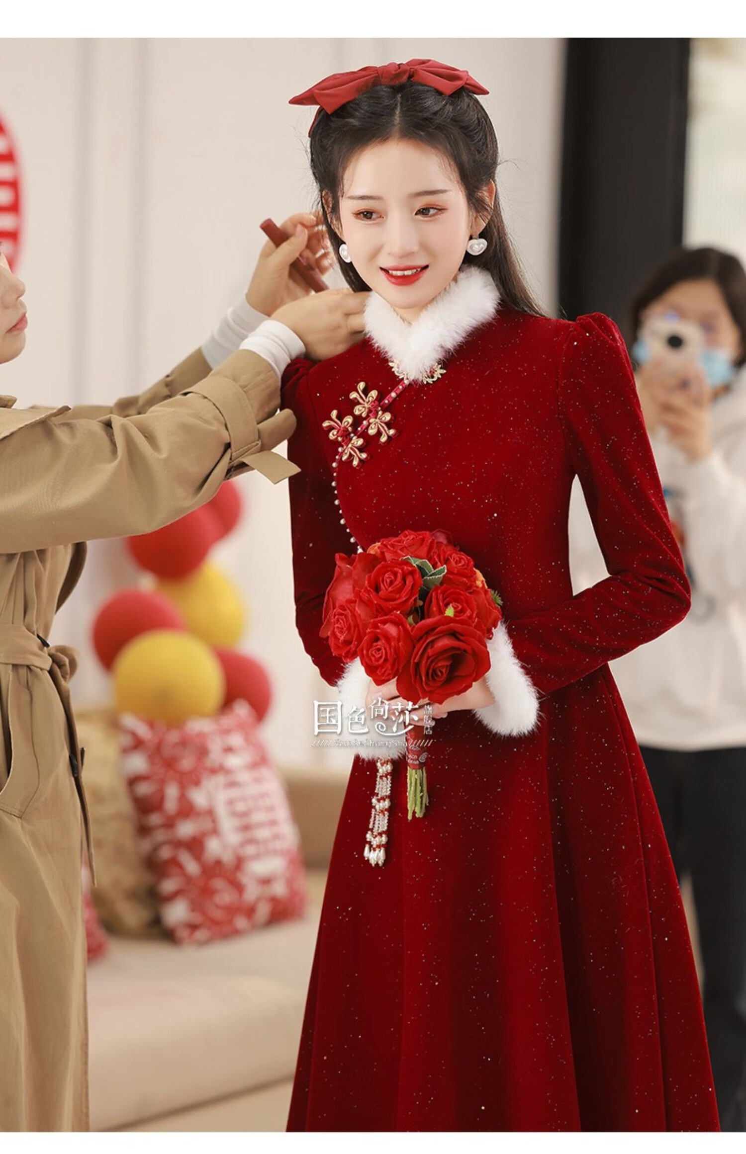 Lanka Roni Cheongsam Toast Wear Bride 2025 New Burgundy Winter Wedding Dress Women's Chinese Style Thick Style Engagement gs768 Burgundy Long Style M