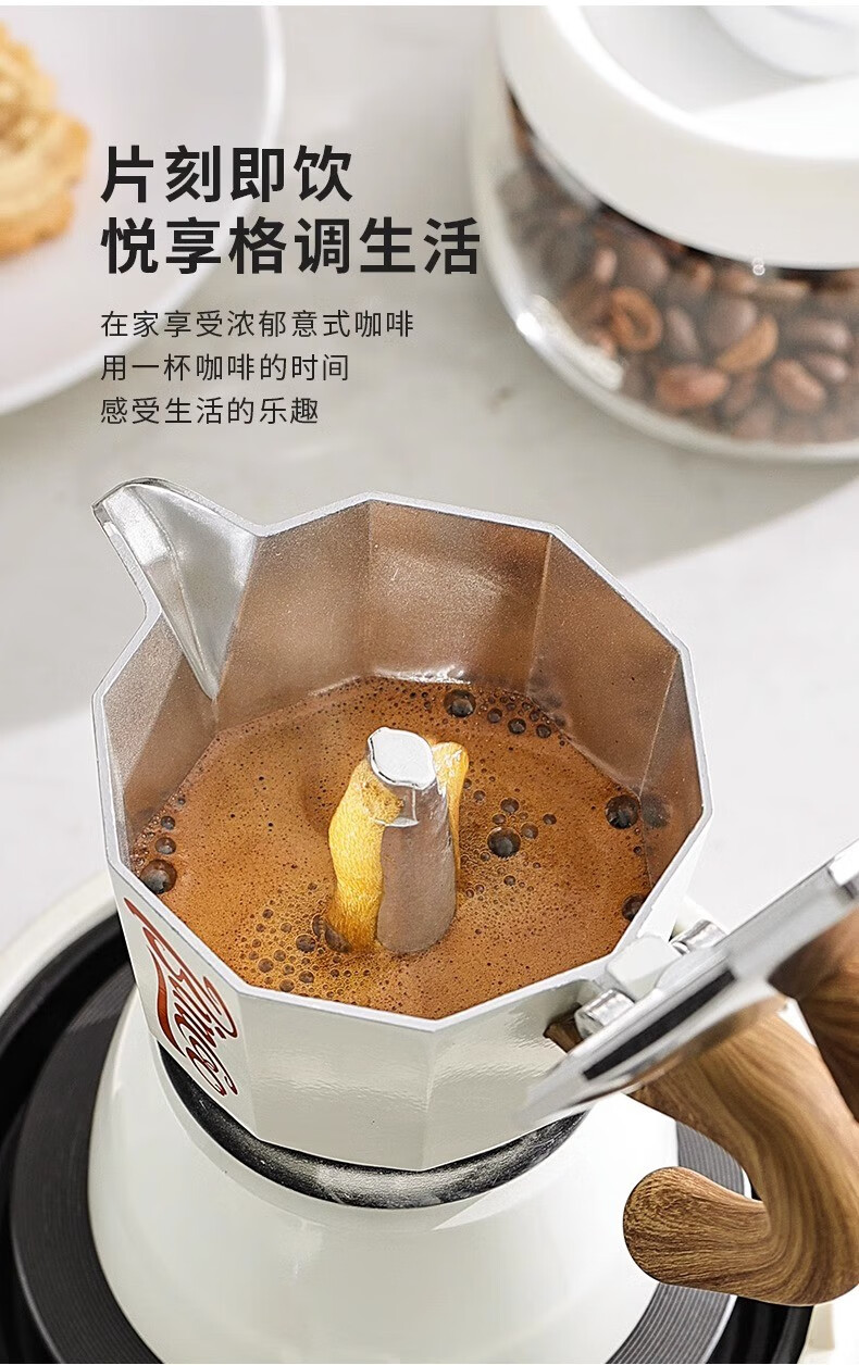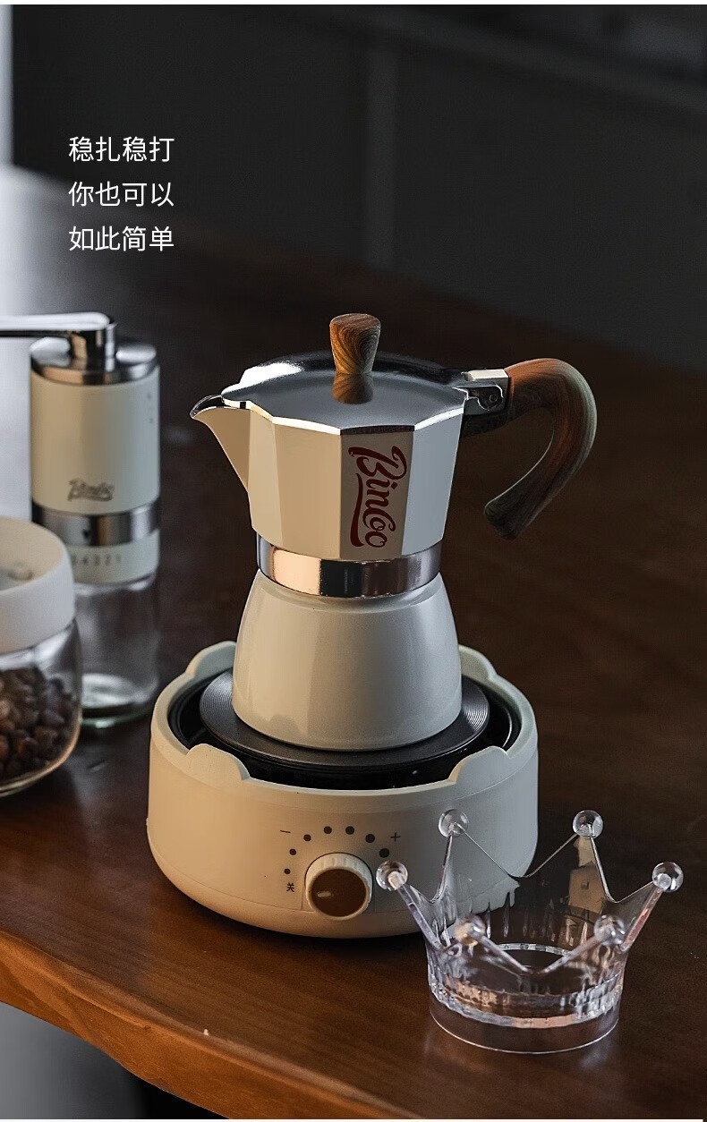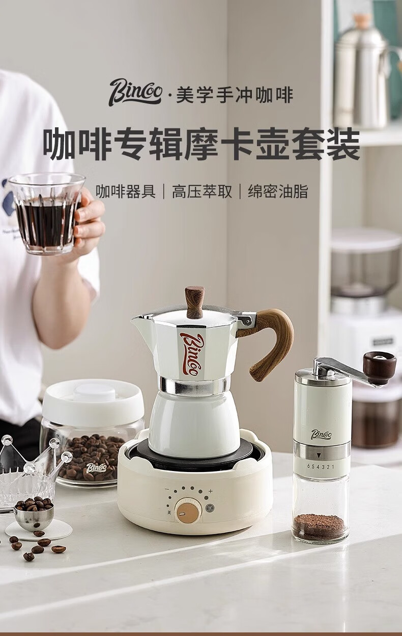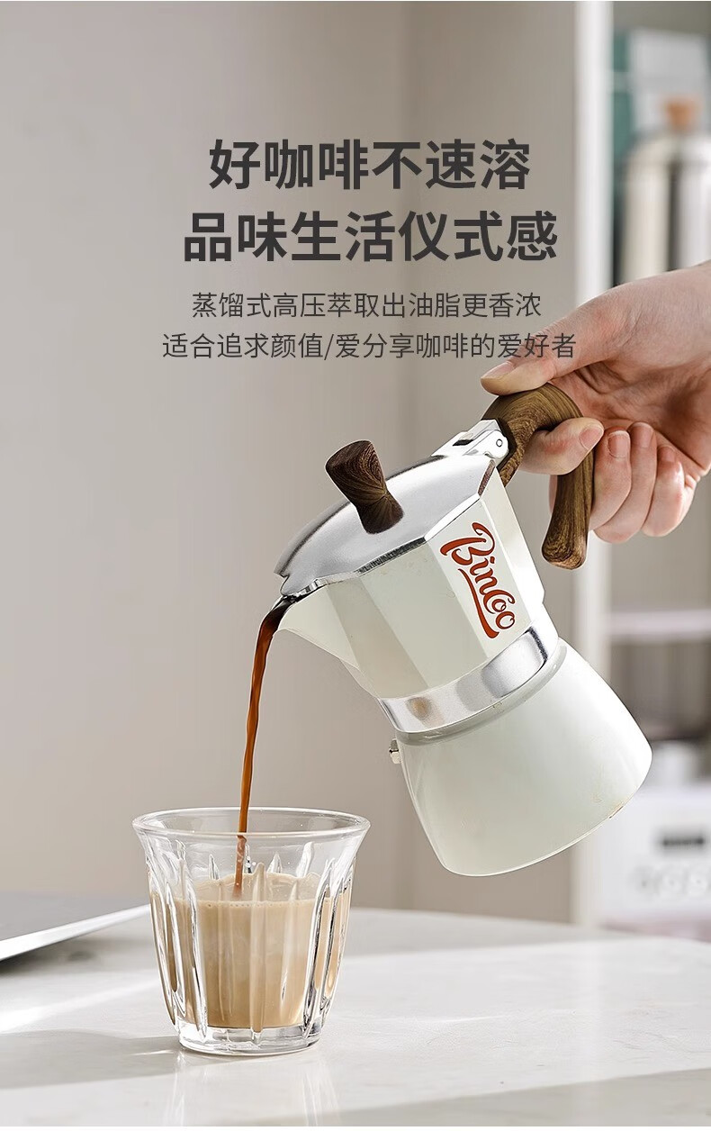 Bincoo coffee Moka pot household small espresso hand brewed coffee pot hand grinding coffee machine coffee utensils 6 servings red and white moka pot 3-piece set - 300ml