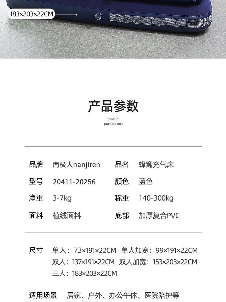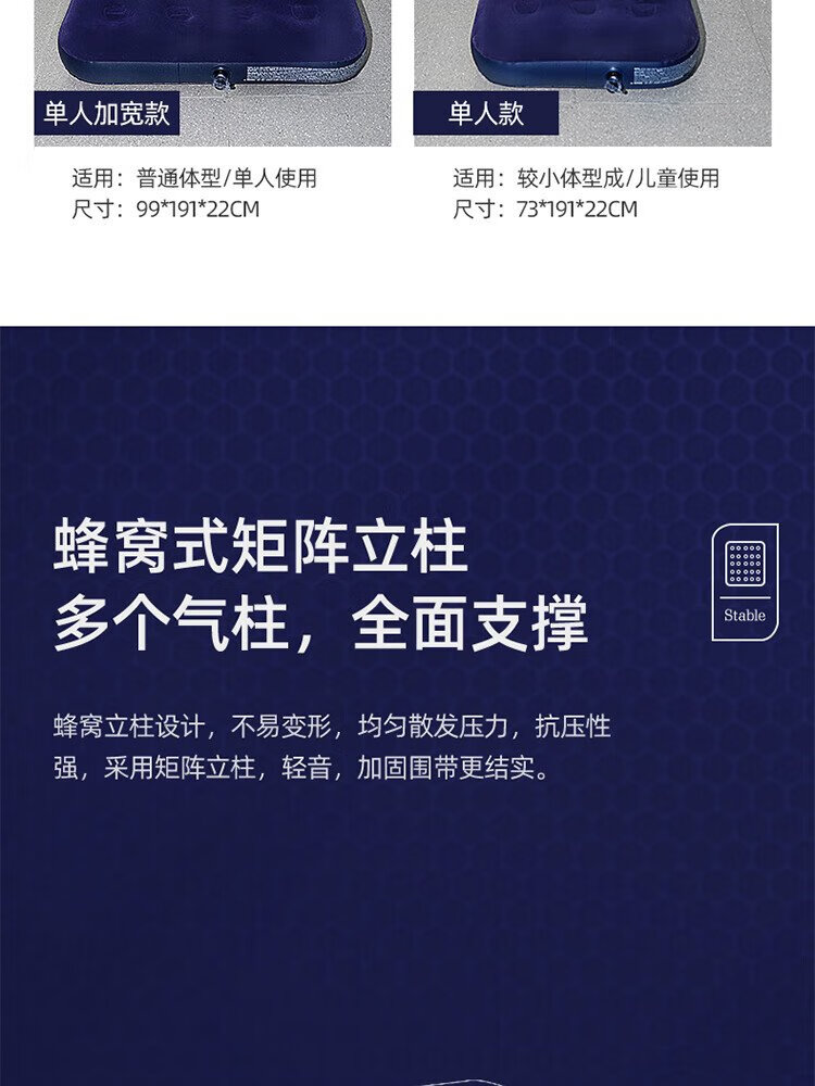 Antarctic Air Mattress Single Inflatable Mattress Double Home Thickened Lazy Outdoor Camping Tent Folding Portable Inflatable Bed 73*191*22cm Single Bed + Foot Pump (Slow Inflation)