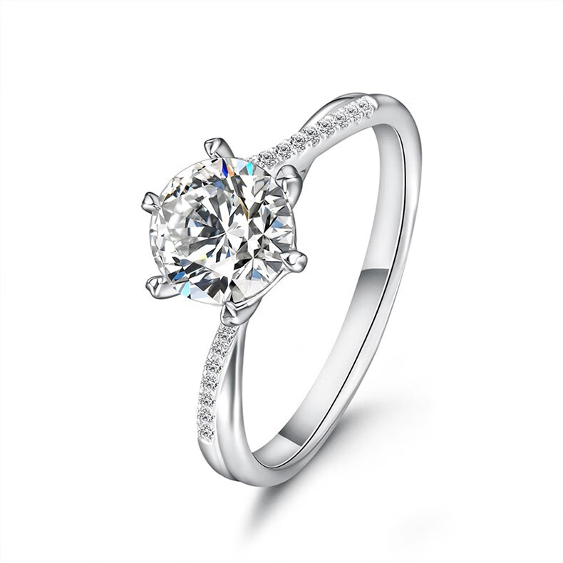 AVHE white 18K gold platinum twisted arm six-claw round diamond cultivated diamond ring for women IGI artificial diamond ring as a wedding gift. Platinum twisted arm snowflake diamond ring-30 points D color/VVS