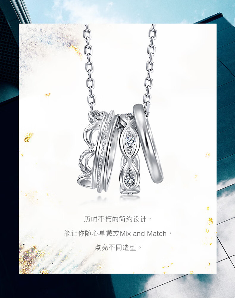 Chow Sang Sang (CHOW SANG SANG) diamond necklace DailyLuxe crown ring Pt950 platinum set chain 92325U 47 cm