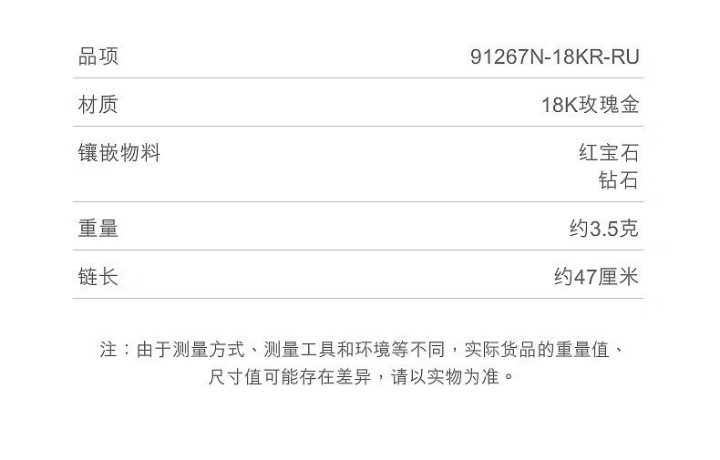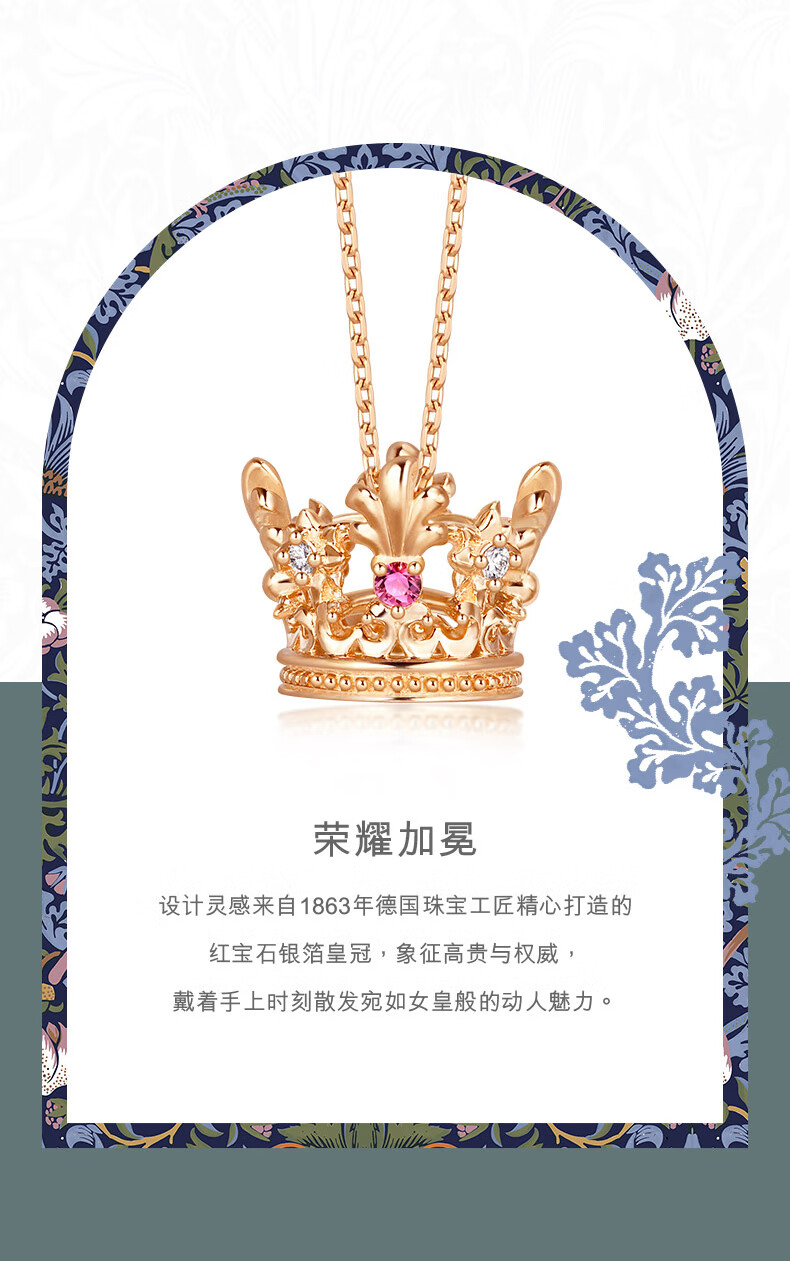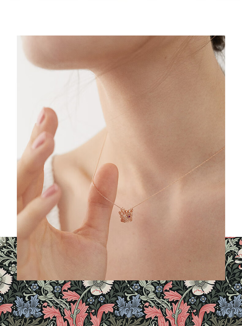 Chow Sang Sang (CHOW SANG SANG) k gold necklace V&A crown ruby rose gold color gold diamond necklace women's model 91267N 47 cm
