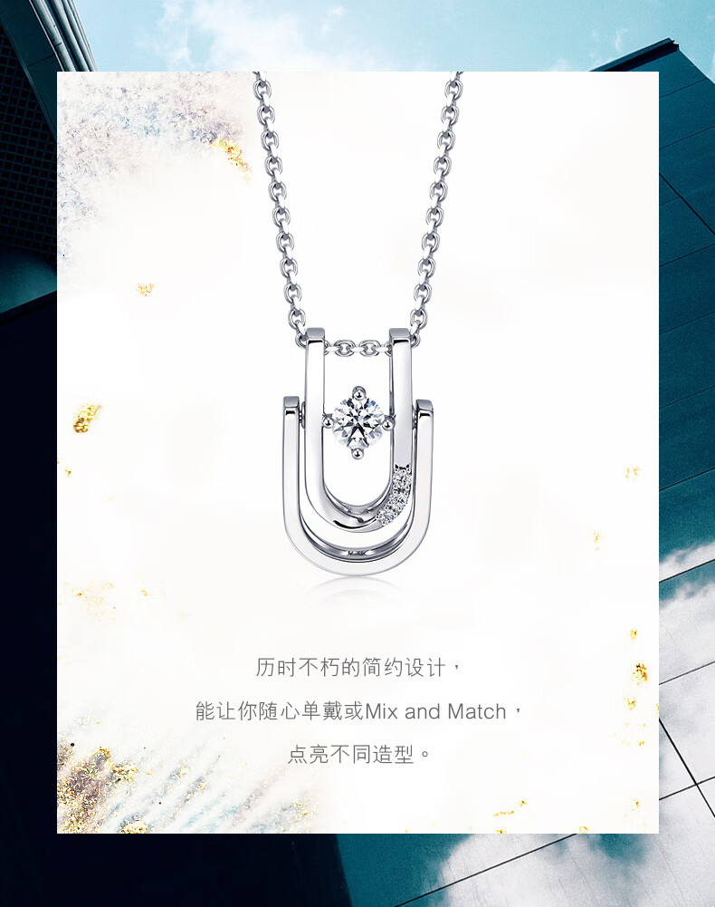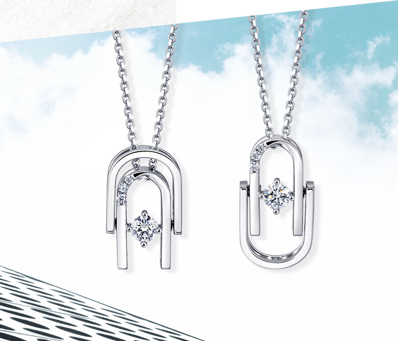 CHOW SANG SANG Diamond Pendant Geometric Double Ring Pt900 Platinum Pendant (Necklace Not Included) 92239P