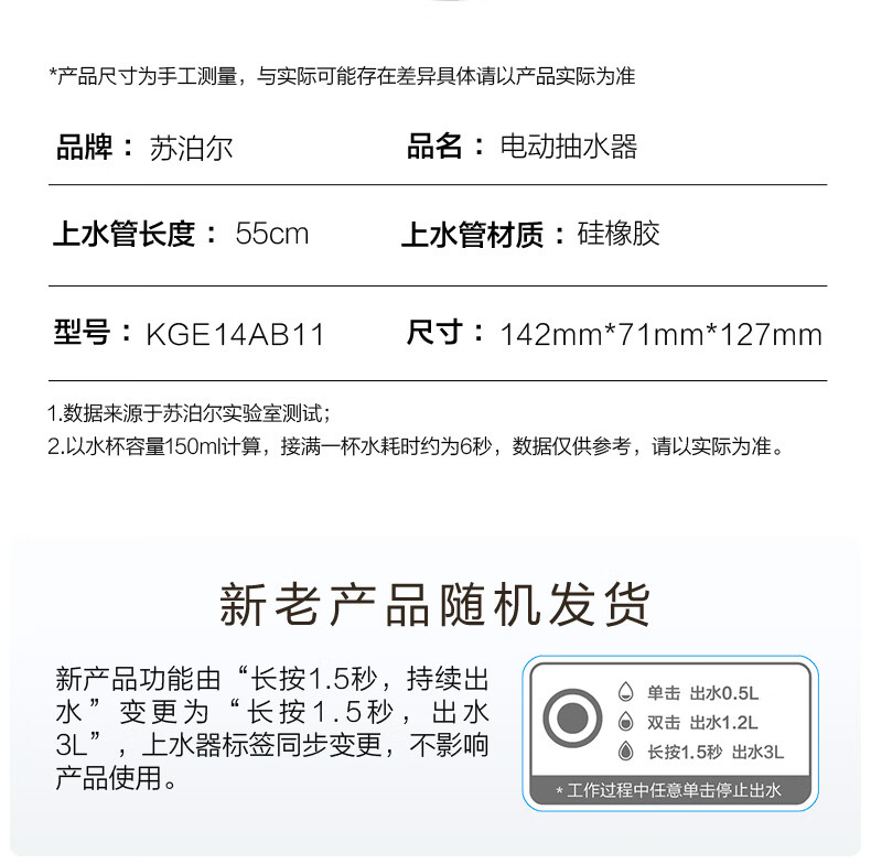 SUPOR bottled water pump, electric water dispenser, automatic pressure water suction pump, home office water dispenser pump, plug-in-free limited edition KGE14AB10