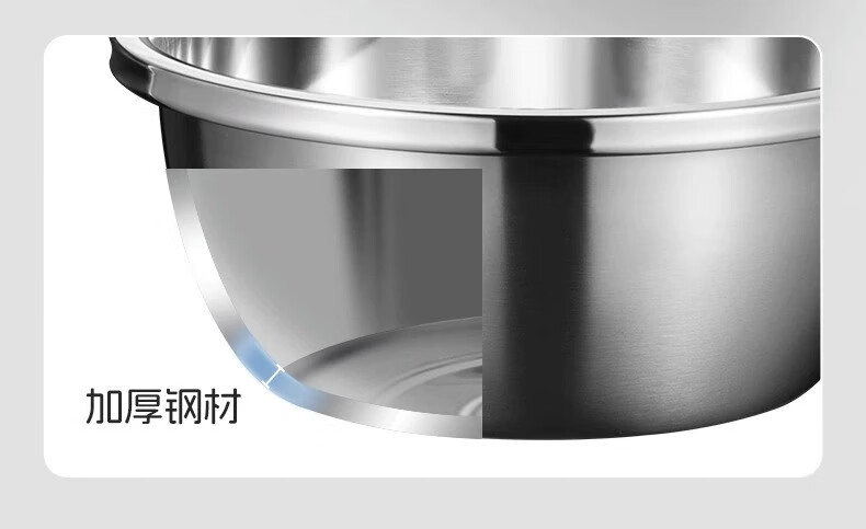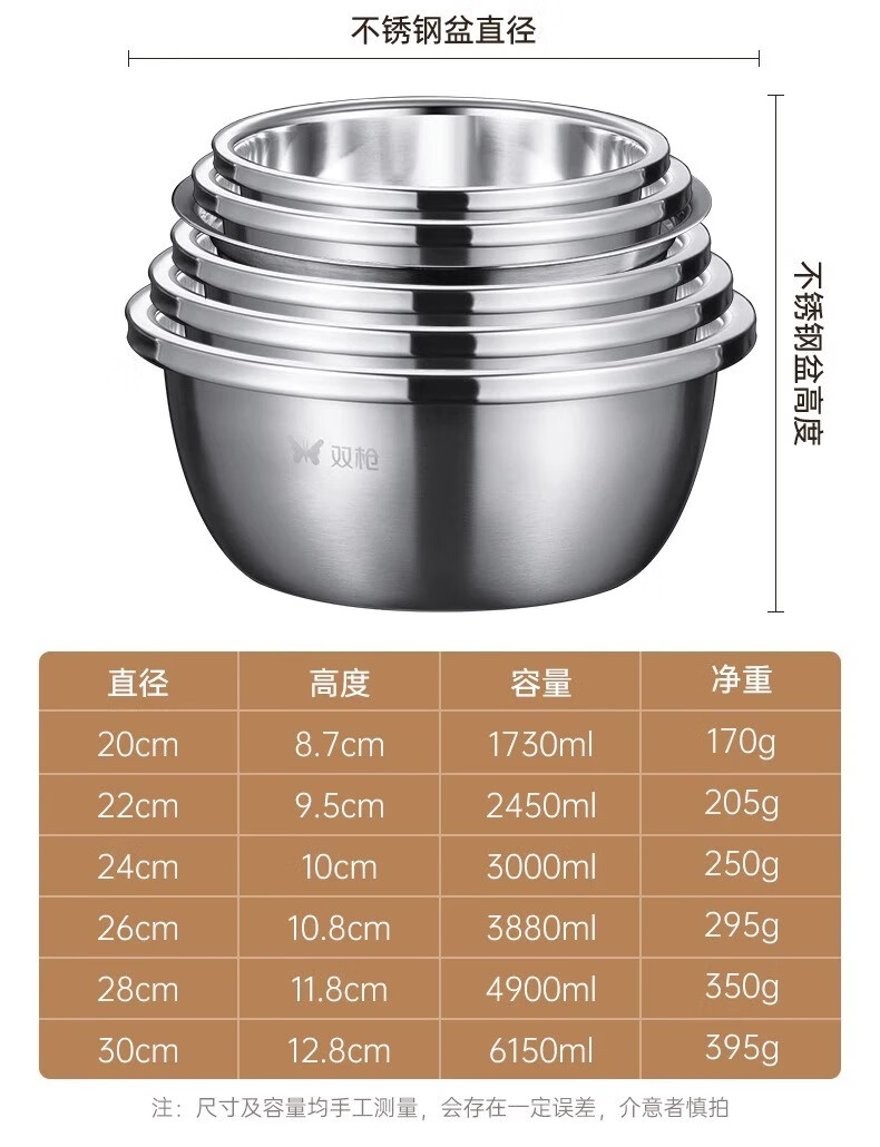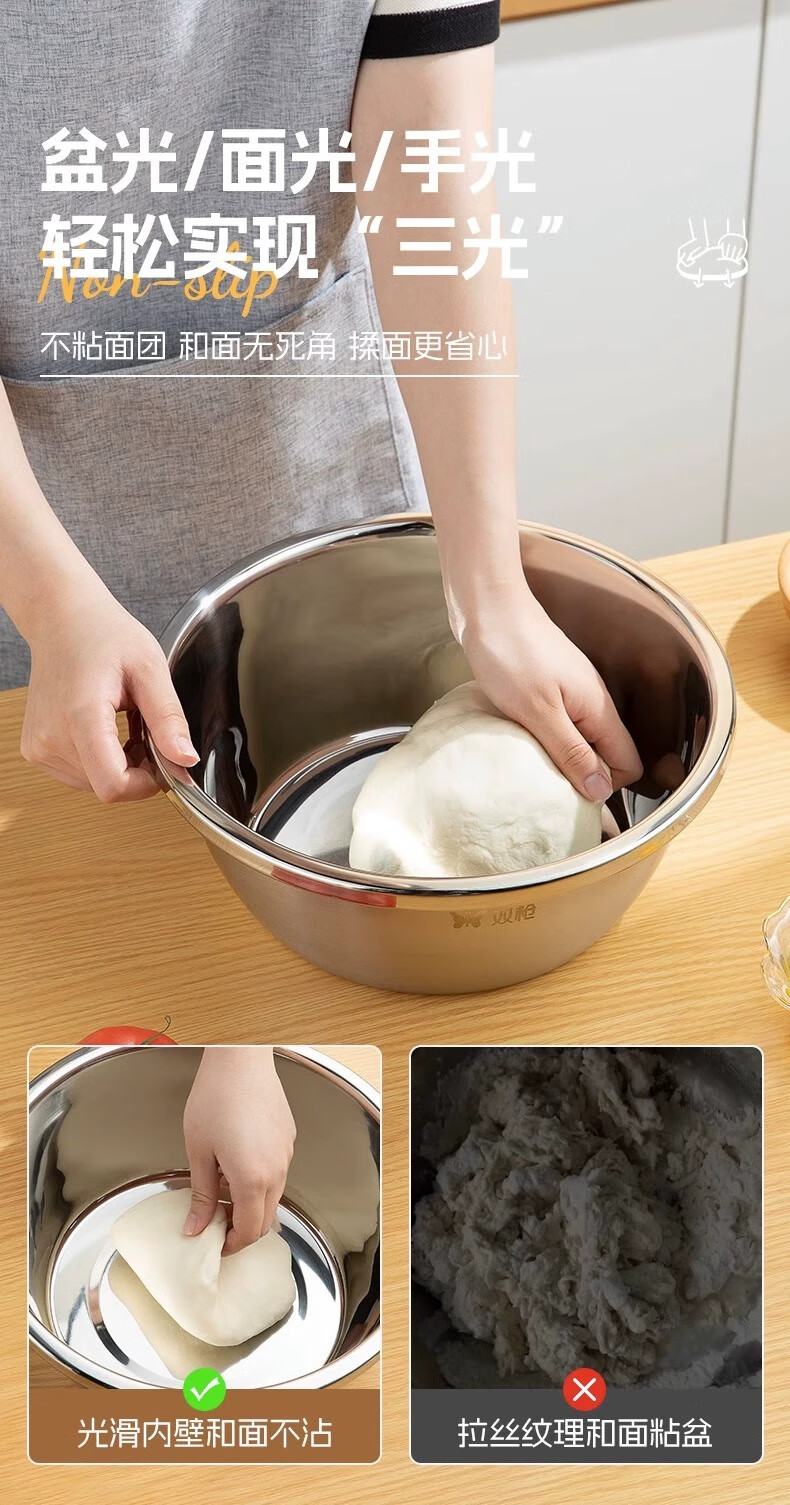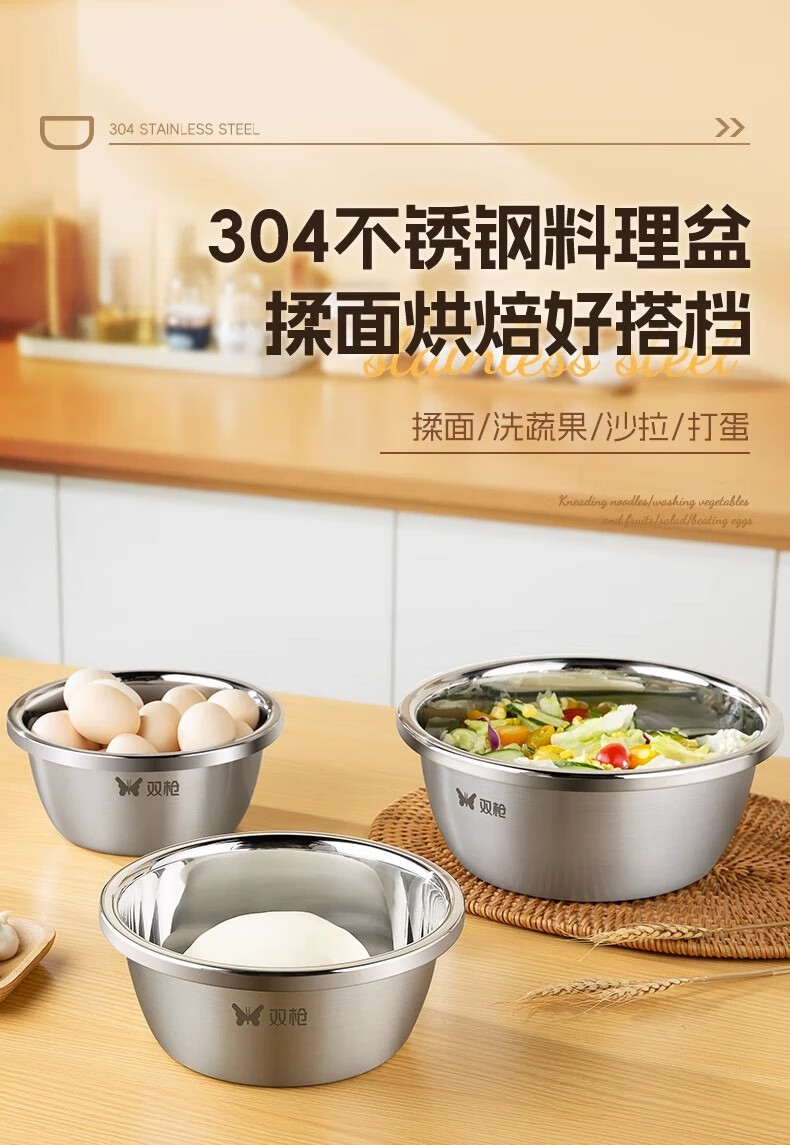Double-gun 304 stainless steel basin and basin for home kitchen thickened egg-washing drain basket leaky basin soup basin iron basin 24cm single basin for serving vegetables and washing vegetables