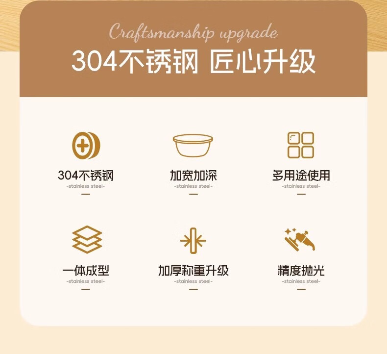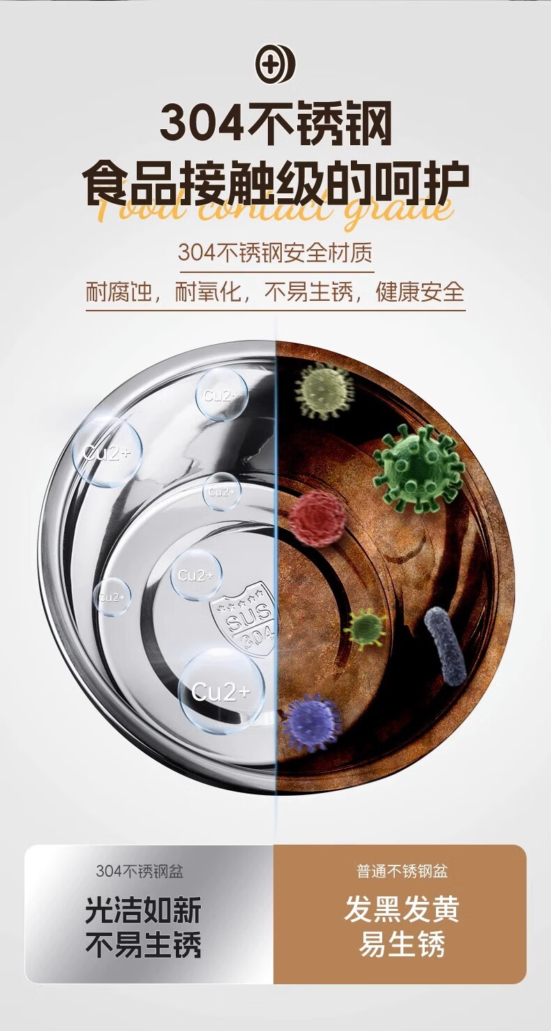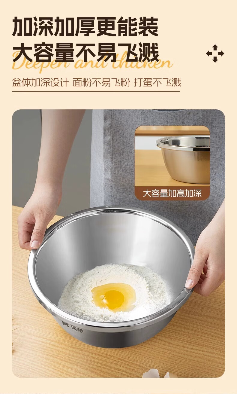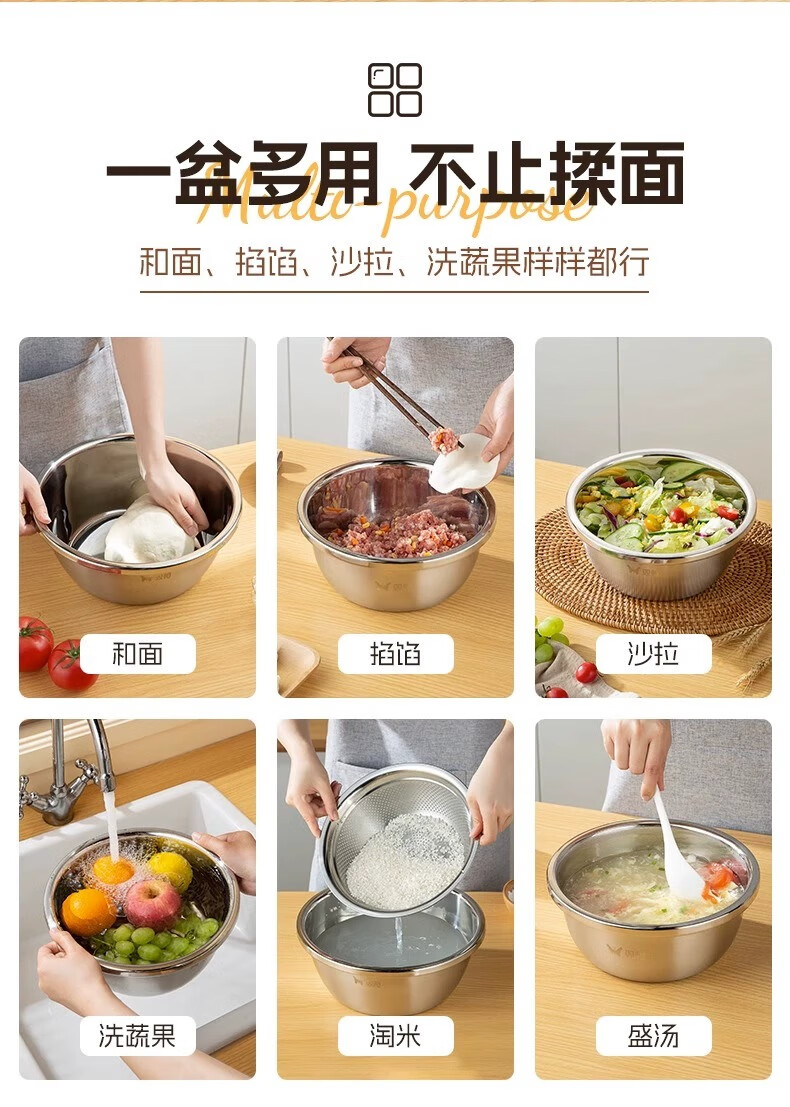 Double-gun 304 stainless steel basin and basin for home kitchen thickened egg-washing drain basket leaky basin soup basin iron basin 24cm single basin for serving vegetables and washing vegetables