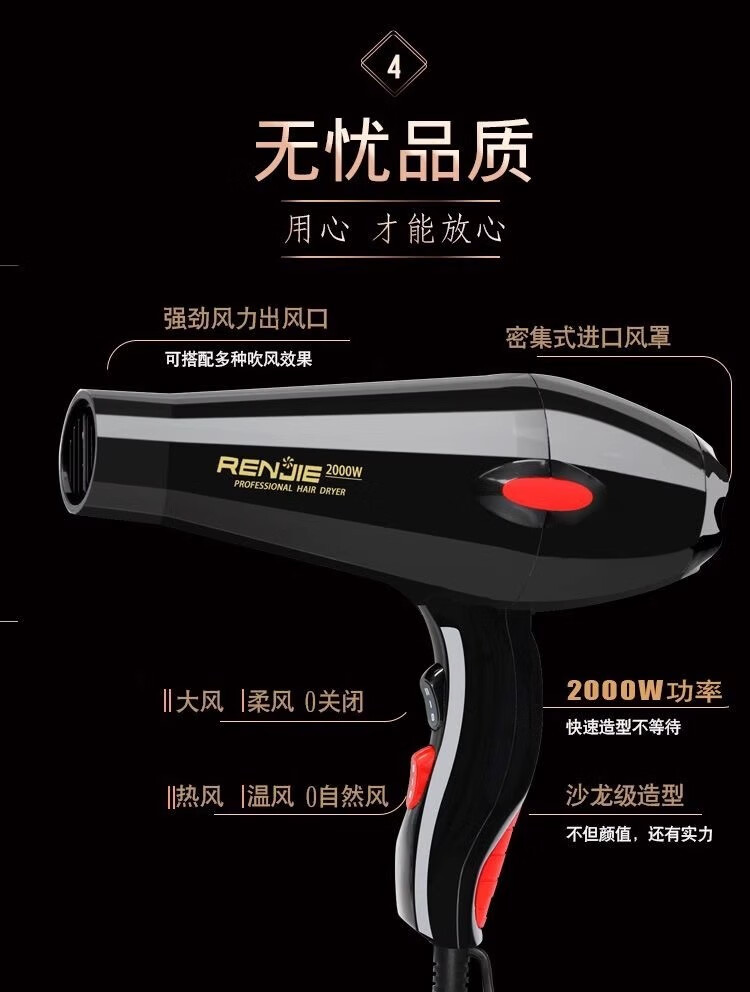 Renjie Renjie hair dryer 816 high power hot and cold air hair dryer hair salon home professional hair dryer 2000W hot and cold air
