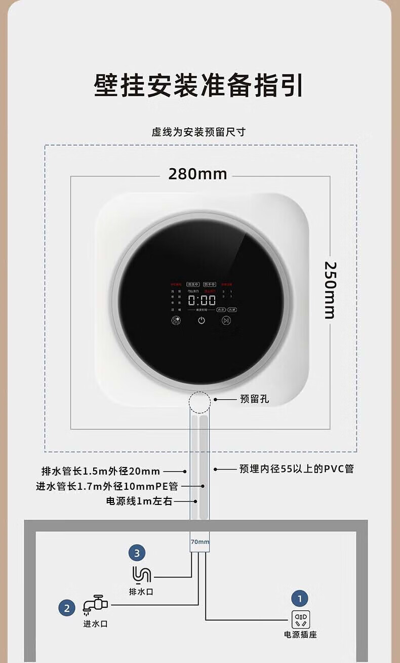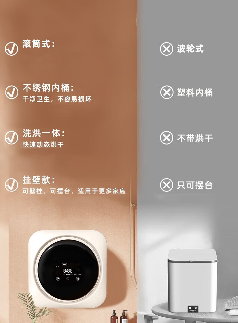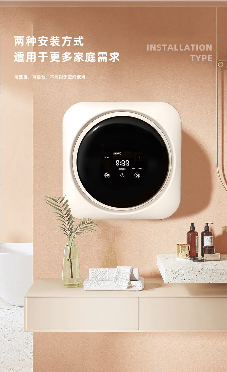 LOYK Mini lavadora alemana totalmente automática, lavadora de ropa interior con tambor, lavadora de calcetines pequeños de doble propósito montada en la pared, lavado y secado de ropa interior, tambor todo en uno para bebé, madre y bebé, modelo montado en la pared