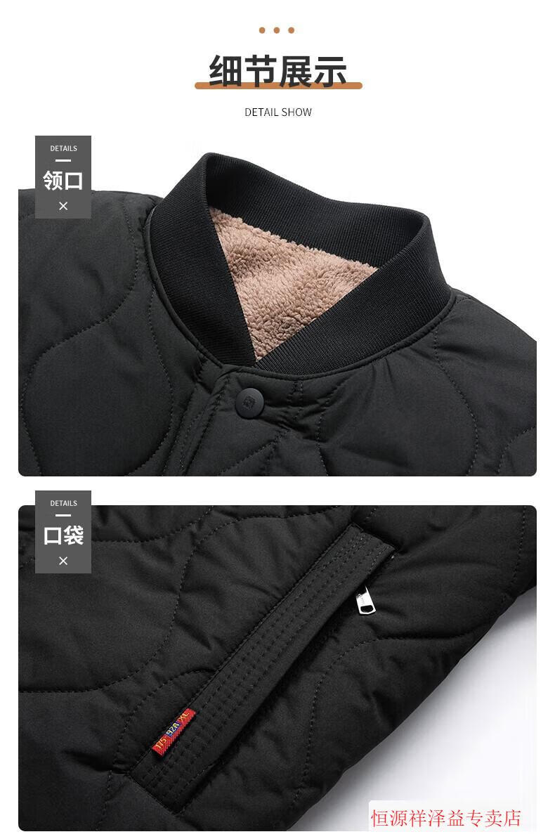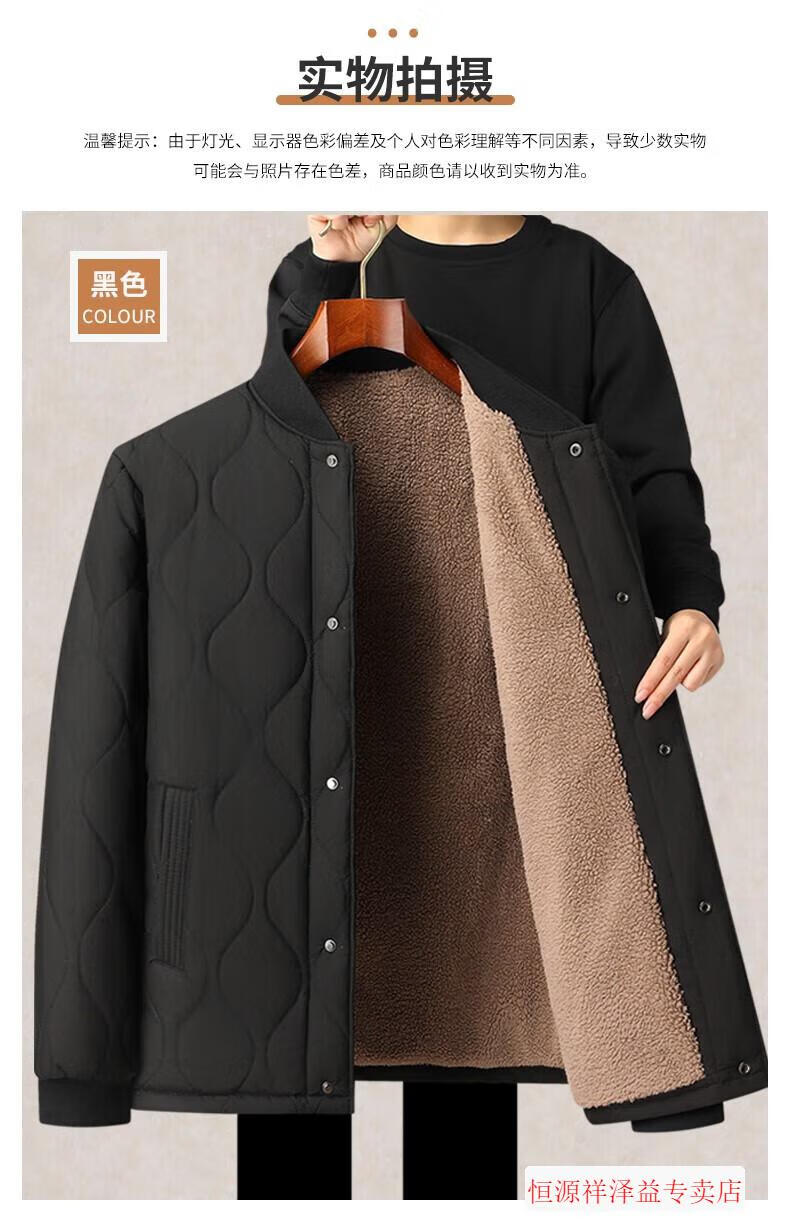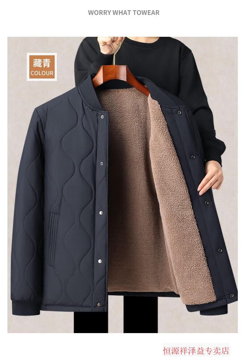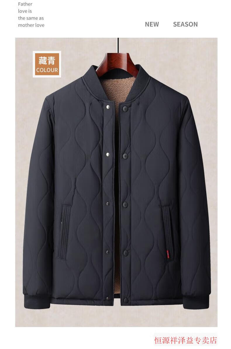 Hengyuanxiang middle-aged and elderly men's liner cotton jacket for grandpa, small cotton padded jacket for inner wear, winter thickened father's cotton padded jacket, lambswool jacket, navy blue 4XL 195 recommended weight 175-210Jin Jin is equal to 0.5 kg