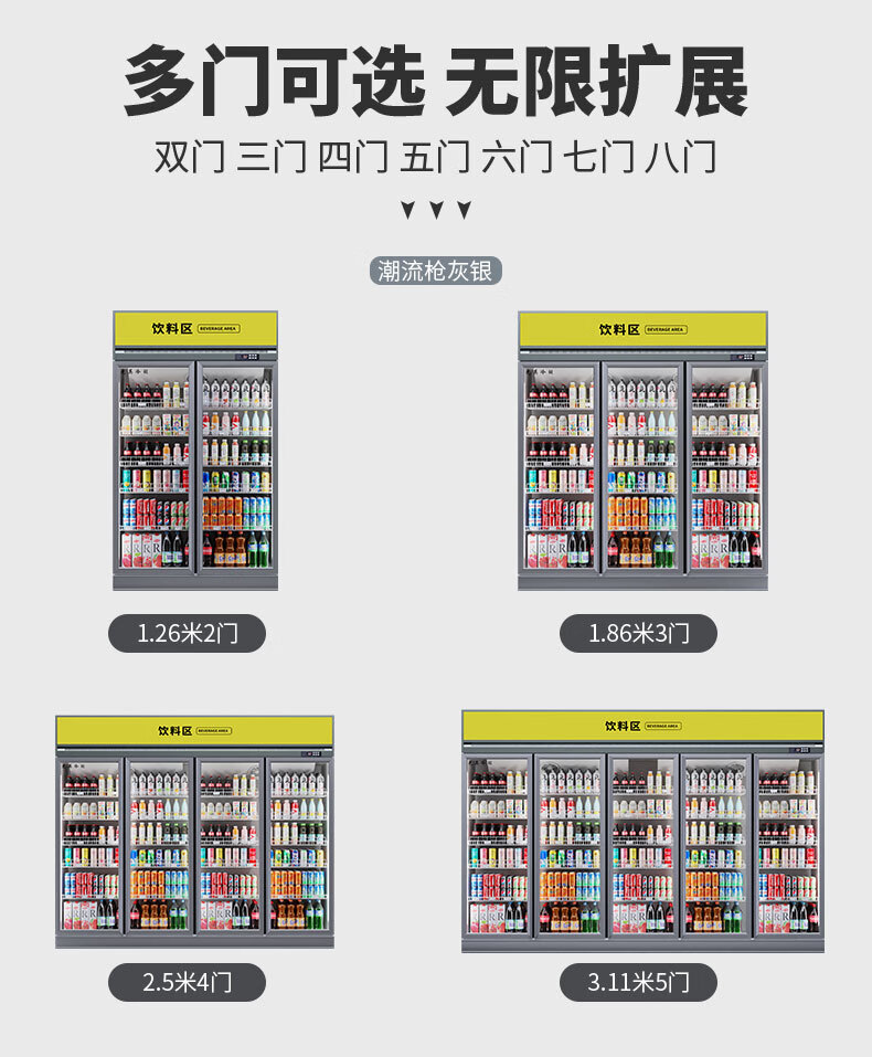 Guangying Guangdong high-end freezer all-in-one machine 2345 door air-cooled vertical beverage cabinet commercial refrigerated display cabinet fruit preservation cabinet supermarket freezer convenience store refrigerator beer domestic compressor three doors 1.85 meters