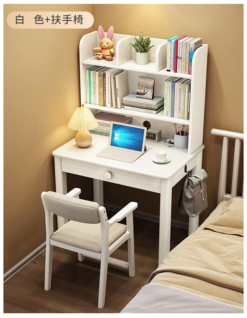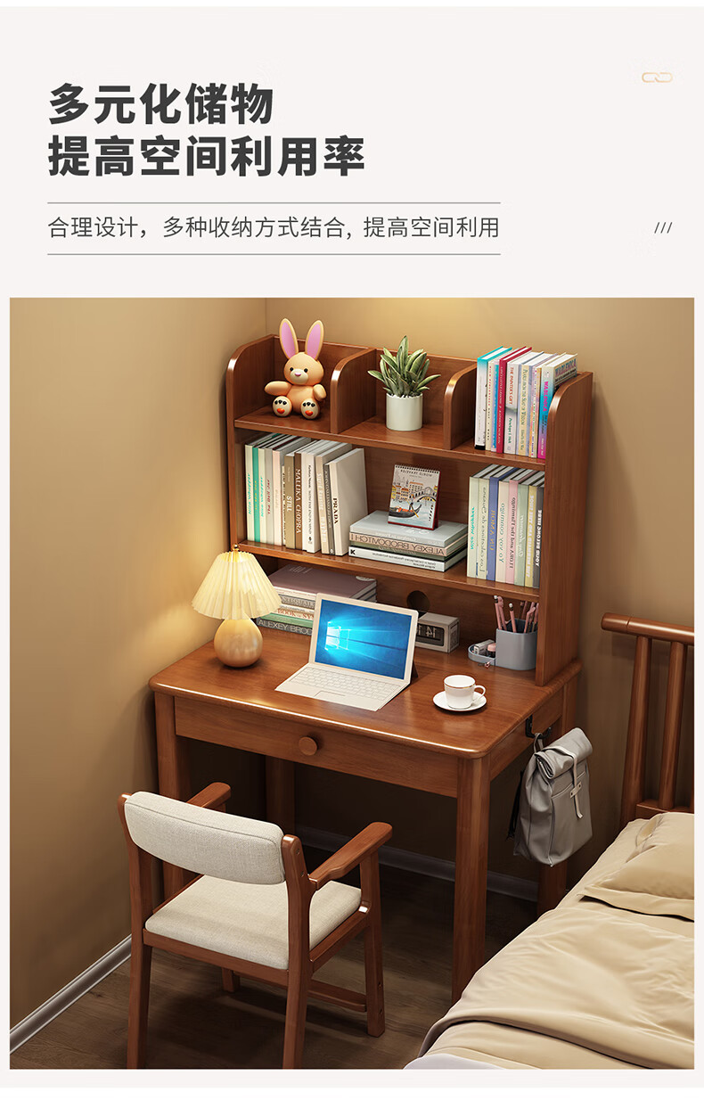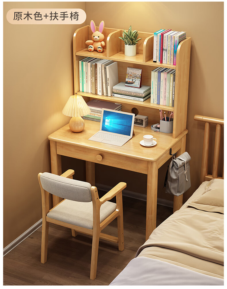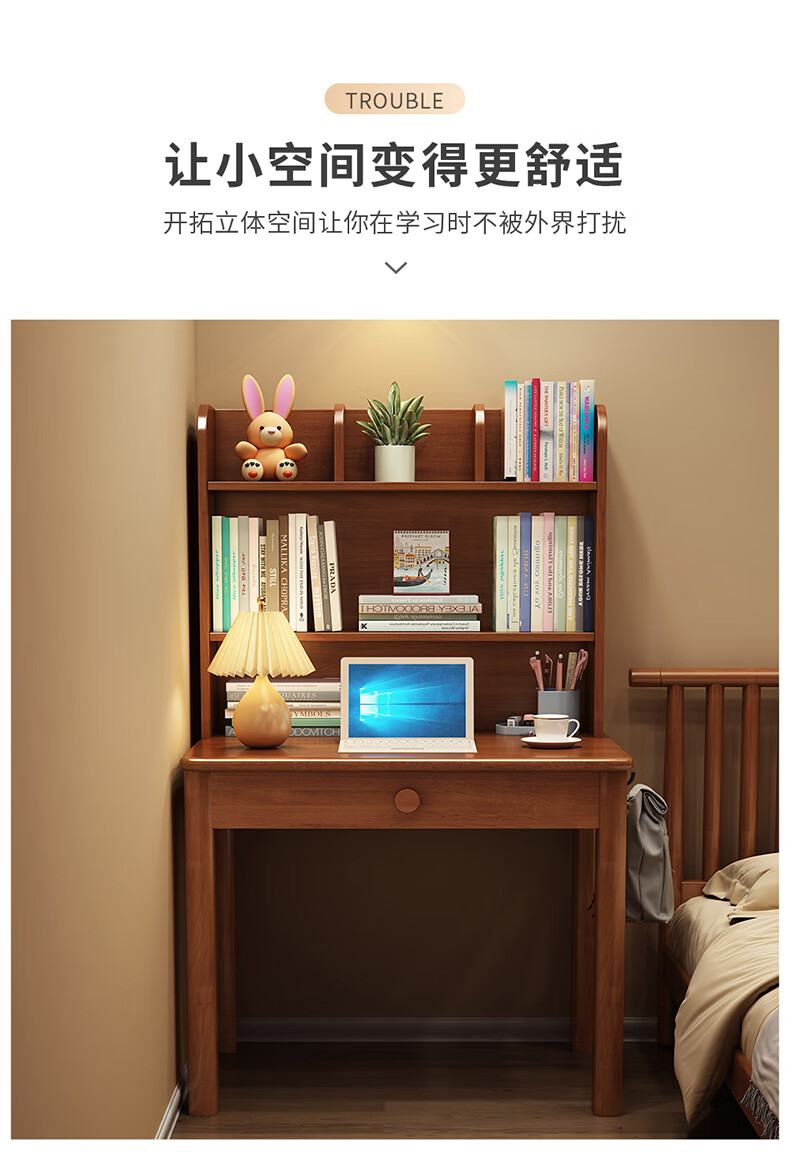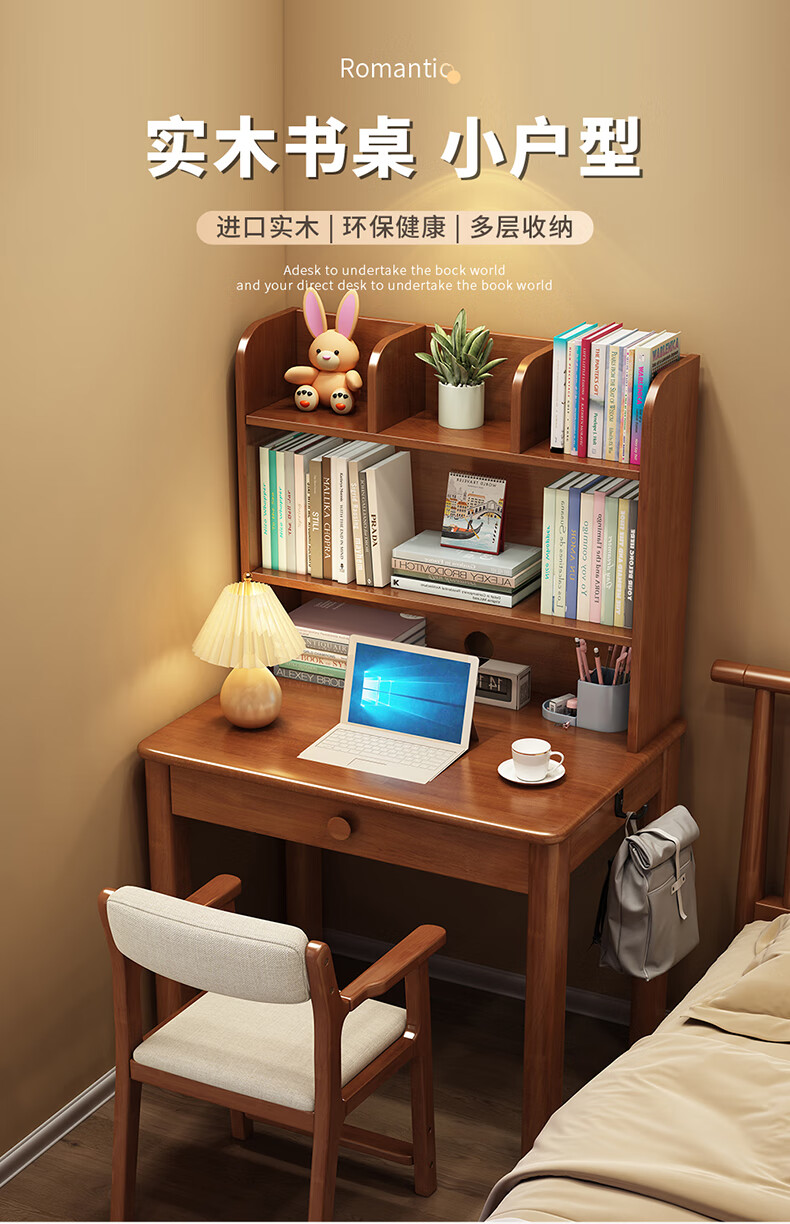 Clothmaker Clothmaker furniture solid wood small desk bookshelf integrated single computer desktop table small apartment student bedside study table 90cm long walnut color desk 90*60*75cm bookshelf version