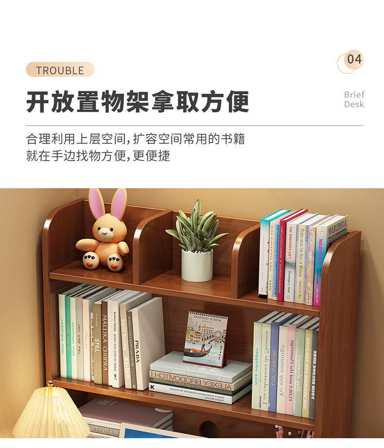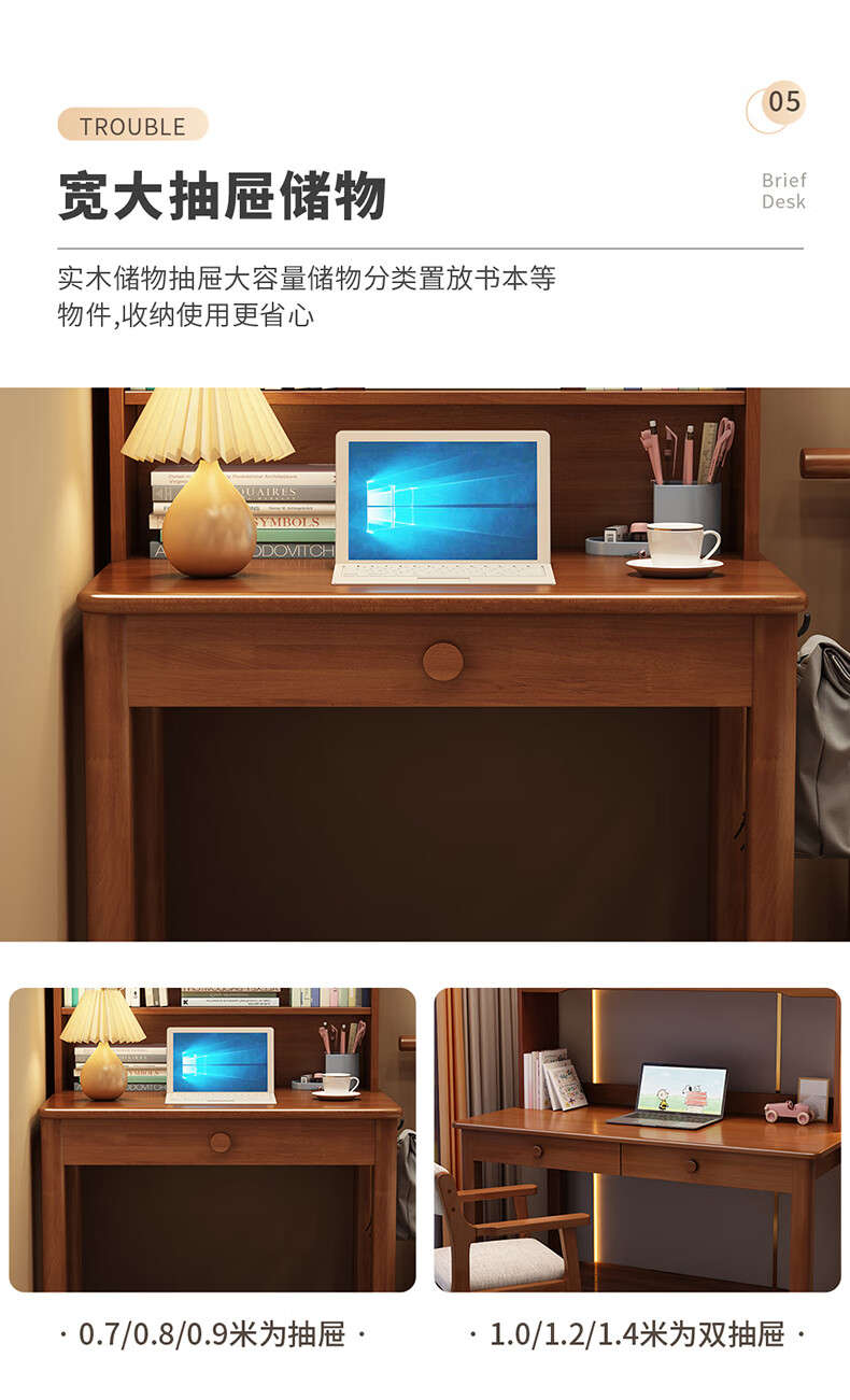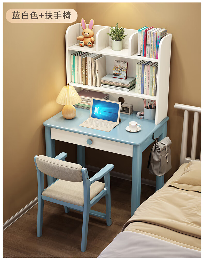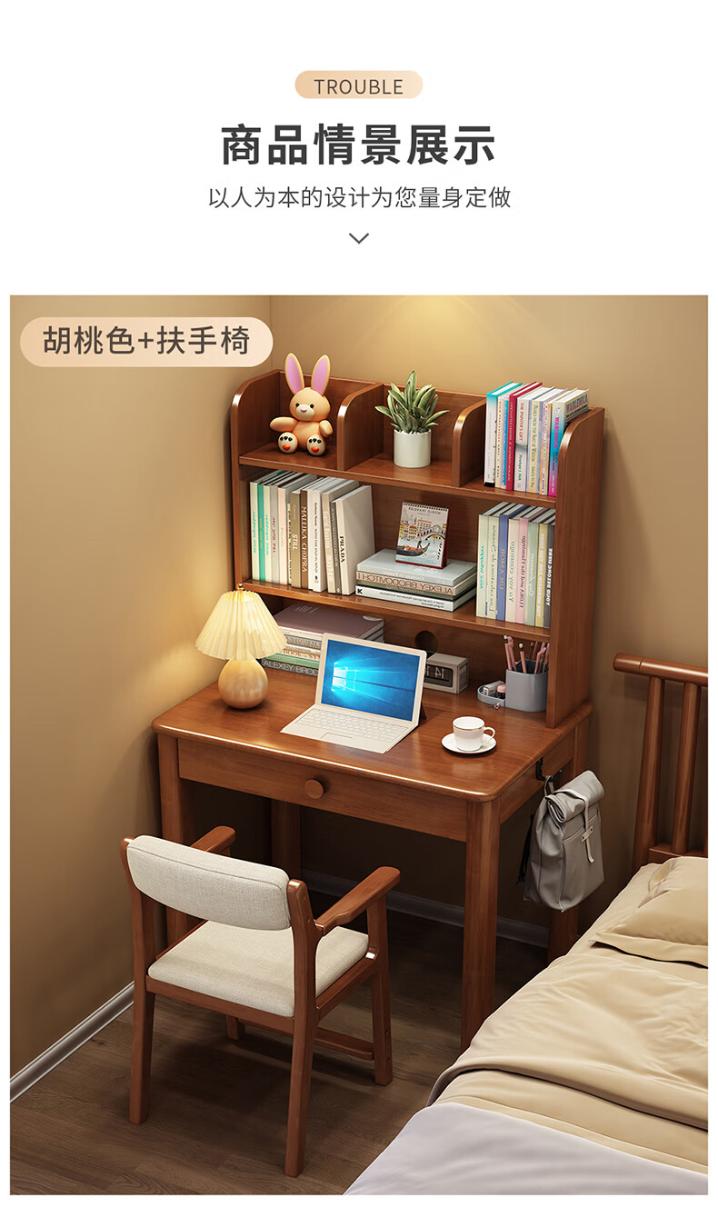 Clothmaker Clothmaker furniture solid wood small desk bookshelf integrated single computer desktop table small apartment student bedside study table 90cm long walnut color desk 90*60*75cm bookshelf version