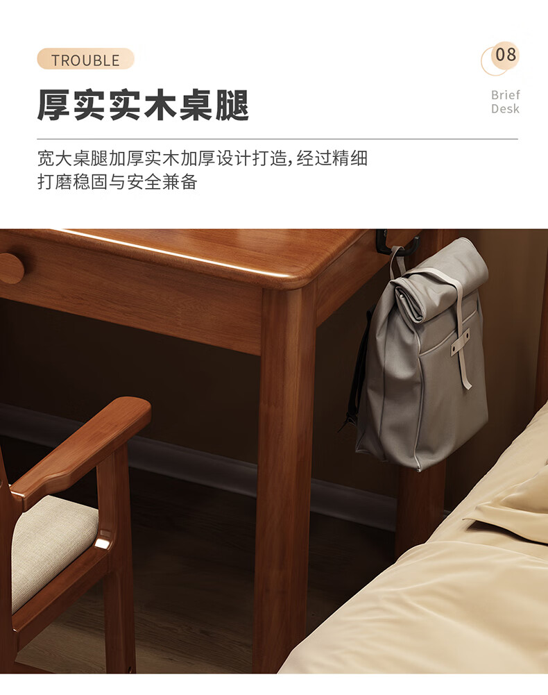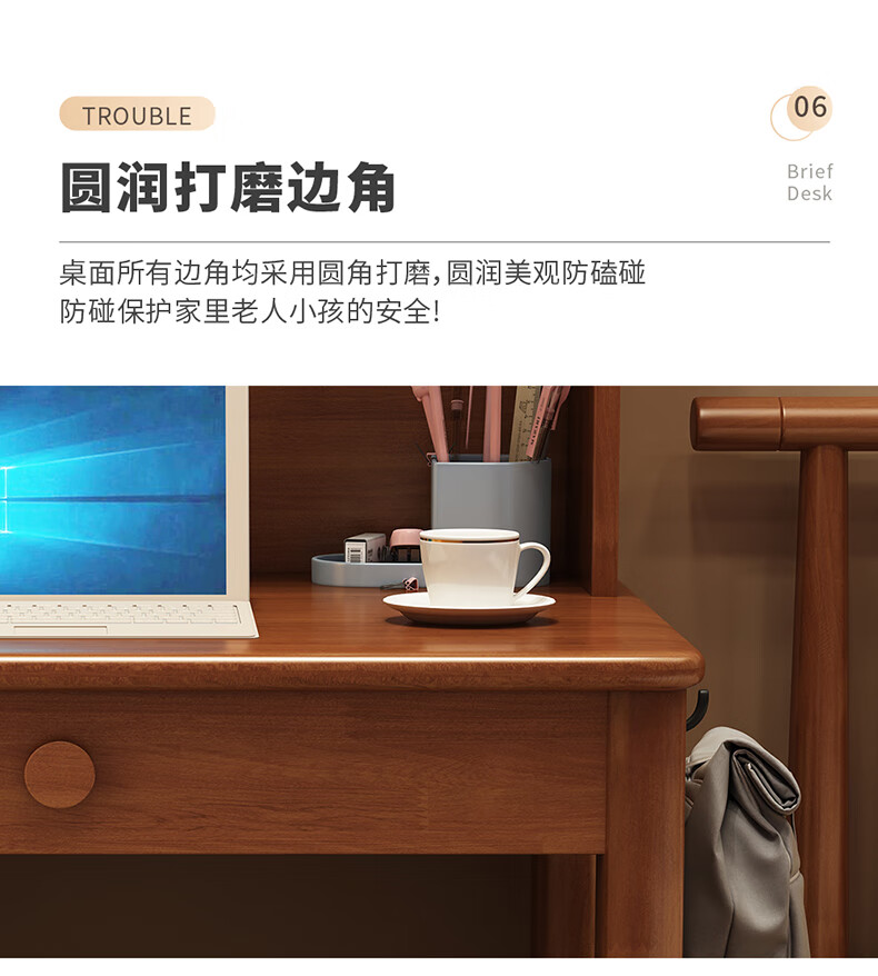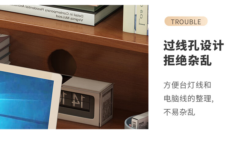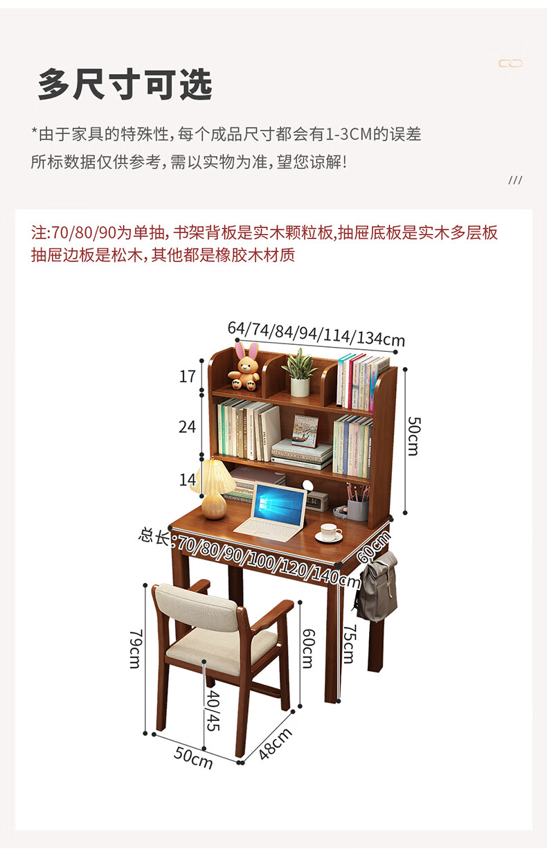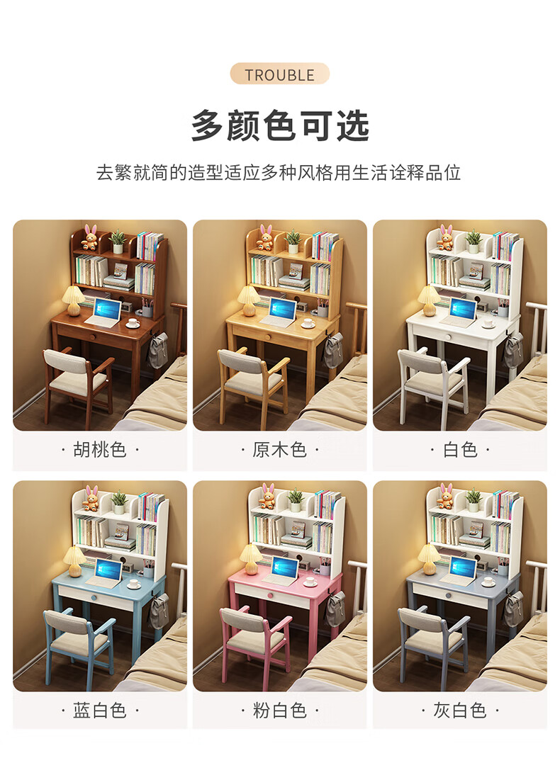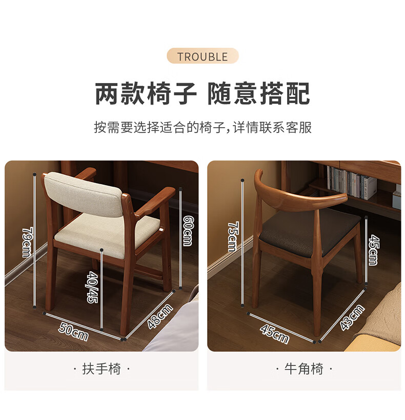 Clothmaker Clothmaker furniture solid wood small desk bookshelf integrated single computer desktop table small apartment student bedside study table 90cm long walnut color desk 90*60*75cm bookshelf version