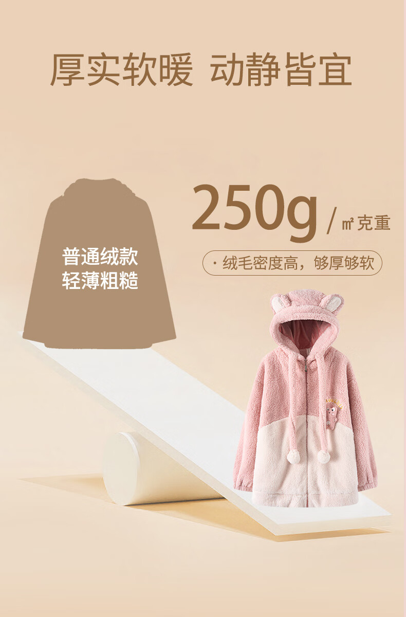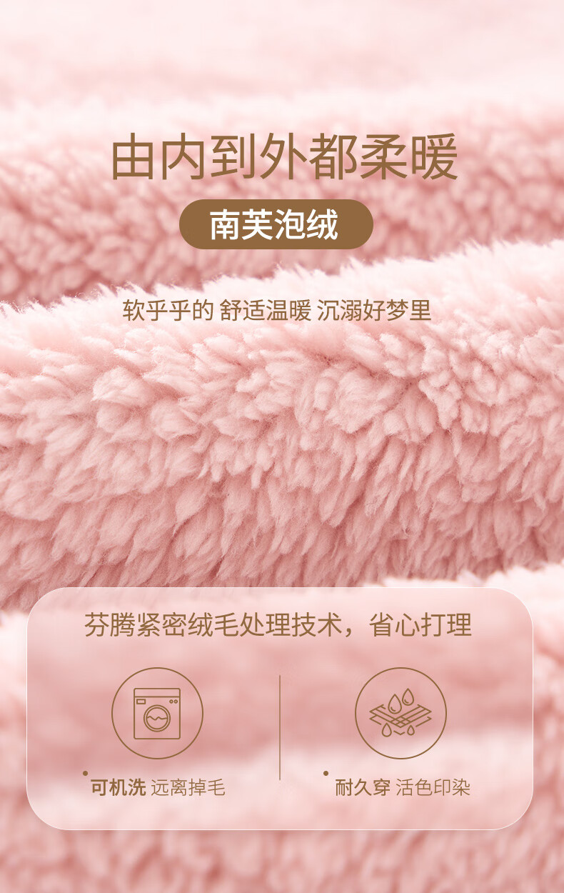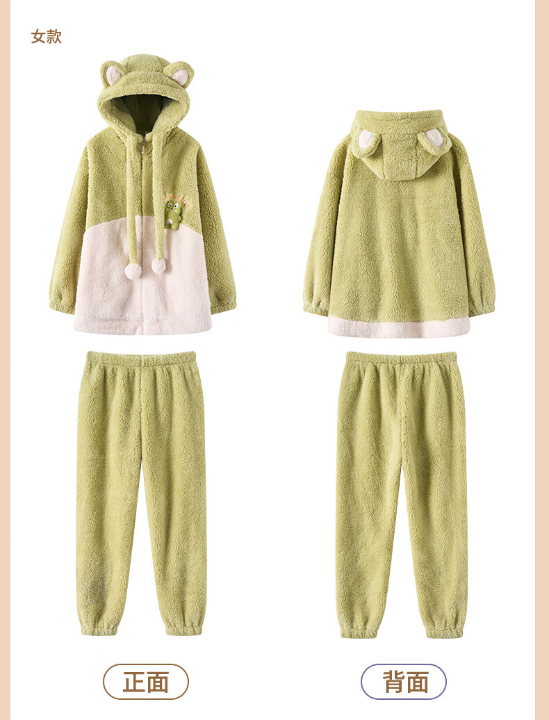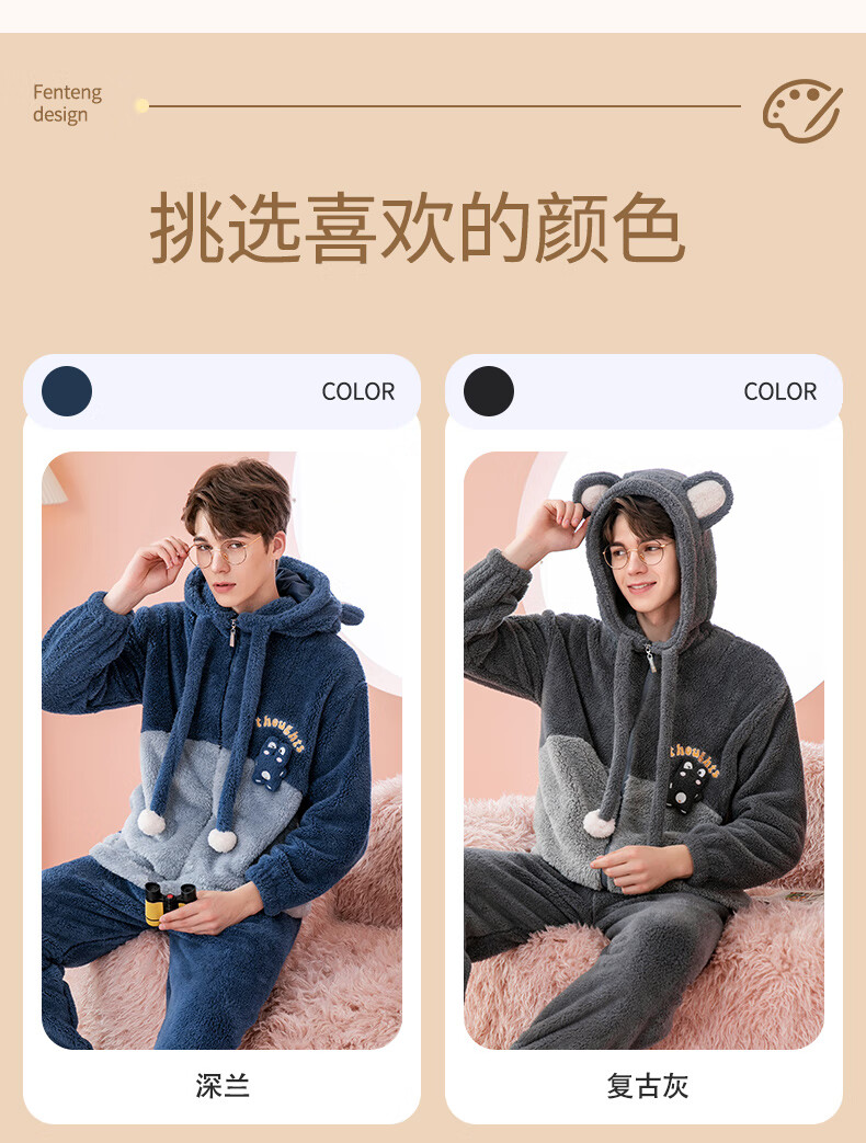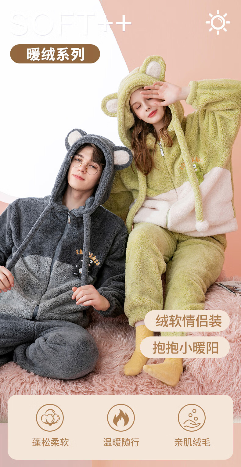 Fenten couple's pajamas autumn and winter thickened hooded coral velvet warm drawstring cartoon fashion home wear pajamas set cherry blossom pink (women's style) XL