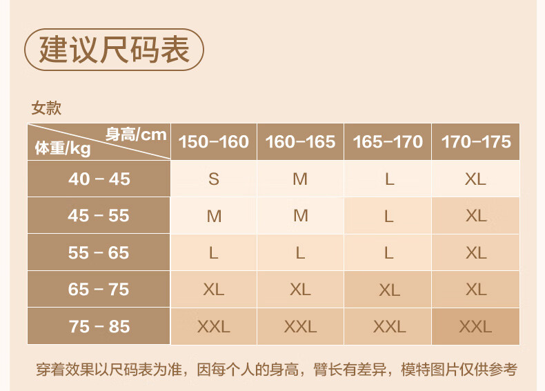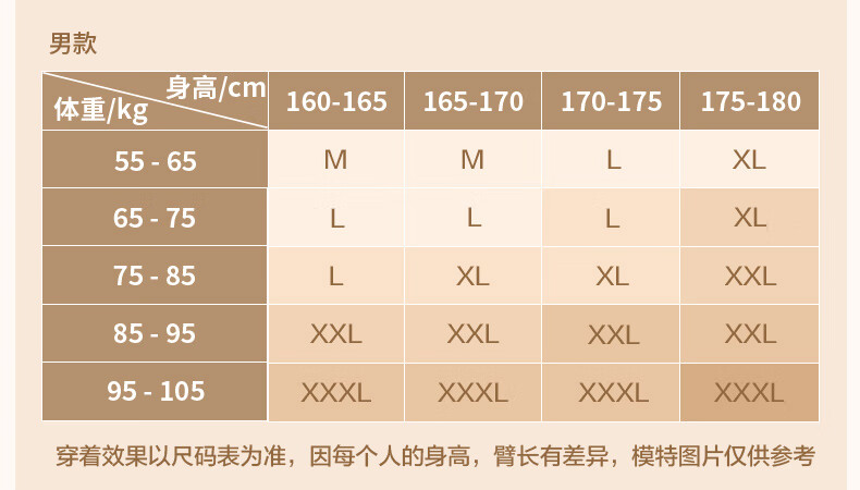 China (cm) 160-165/84-86 165-170 / 88-90 167-172 / 92-96 168-173 / 98-102 170-176 / 106-110