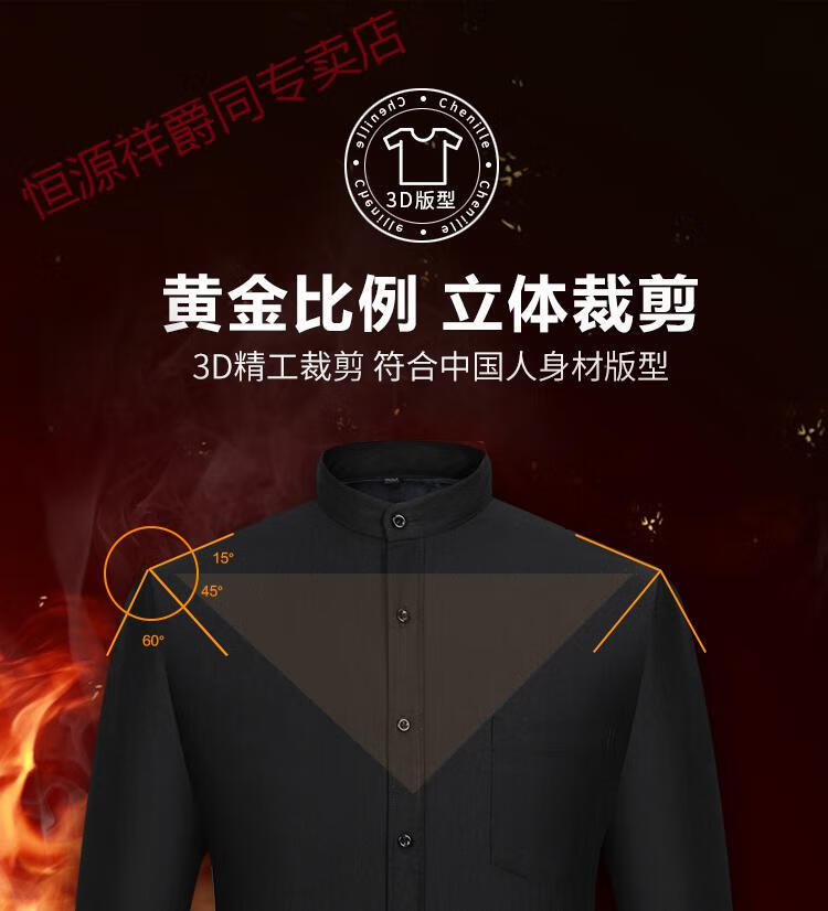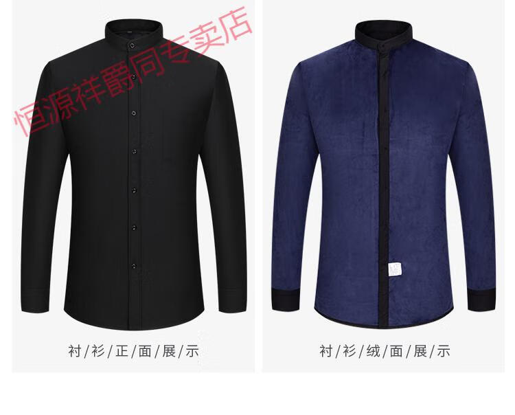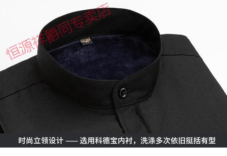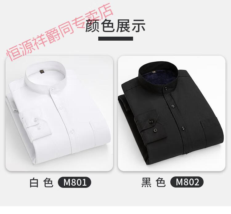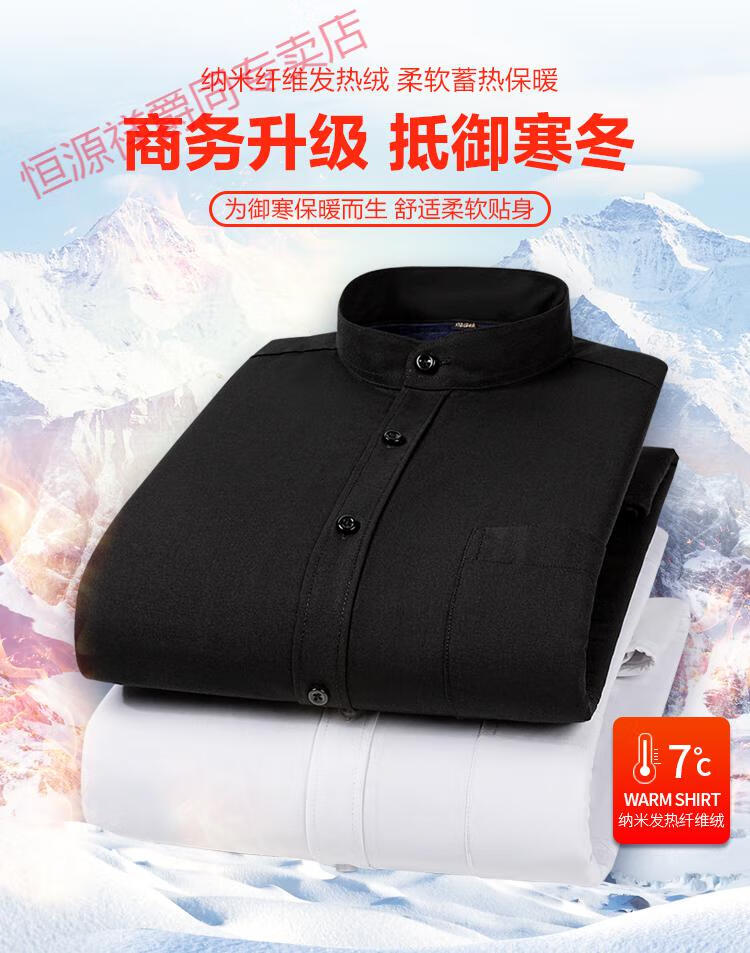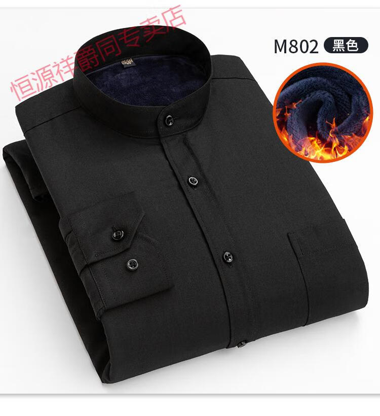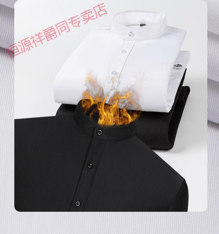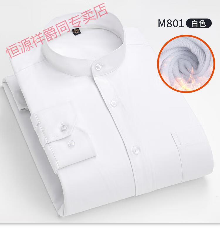 Hengyuanxiang Chinese tunic Chinese stand collar warm shirt men's velvet thickened white non-iron Chinese style round neck long-sleeved shirt men 8-3 42160-175Jin Jin equals 0.5 kg