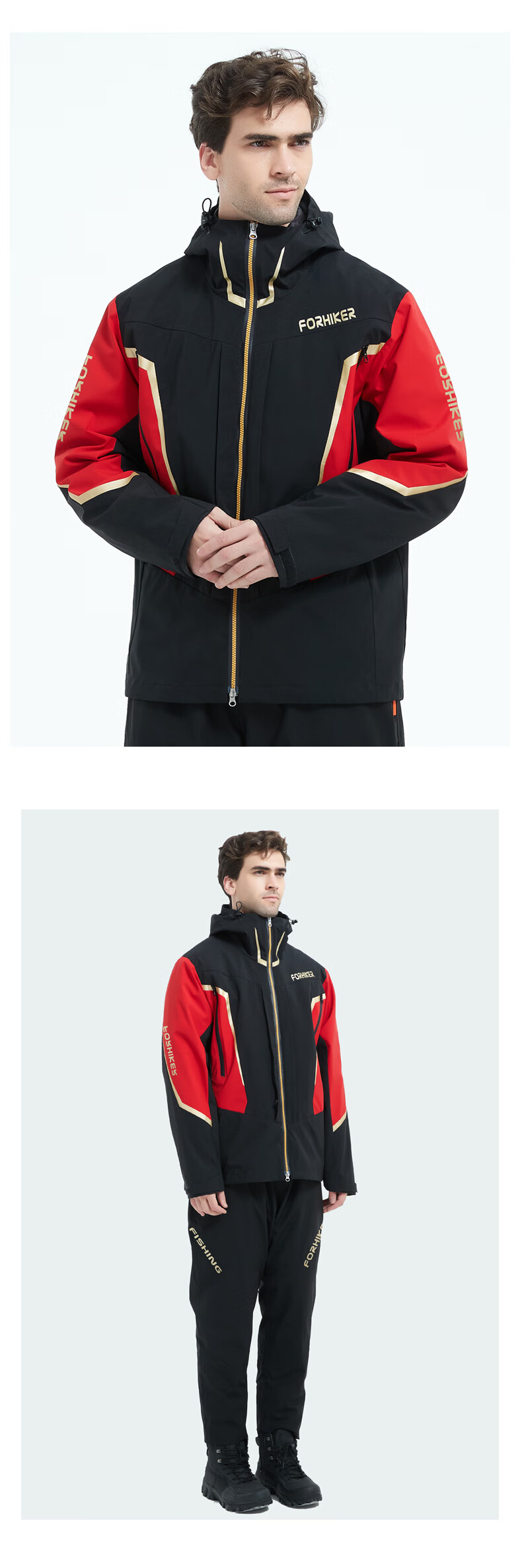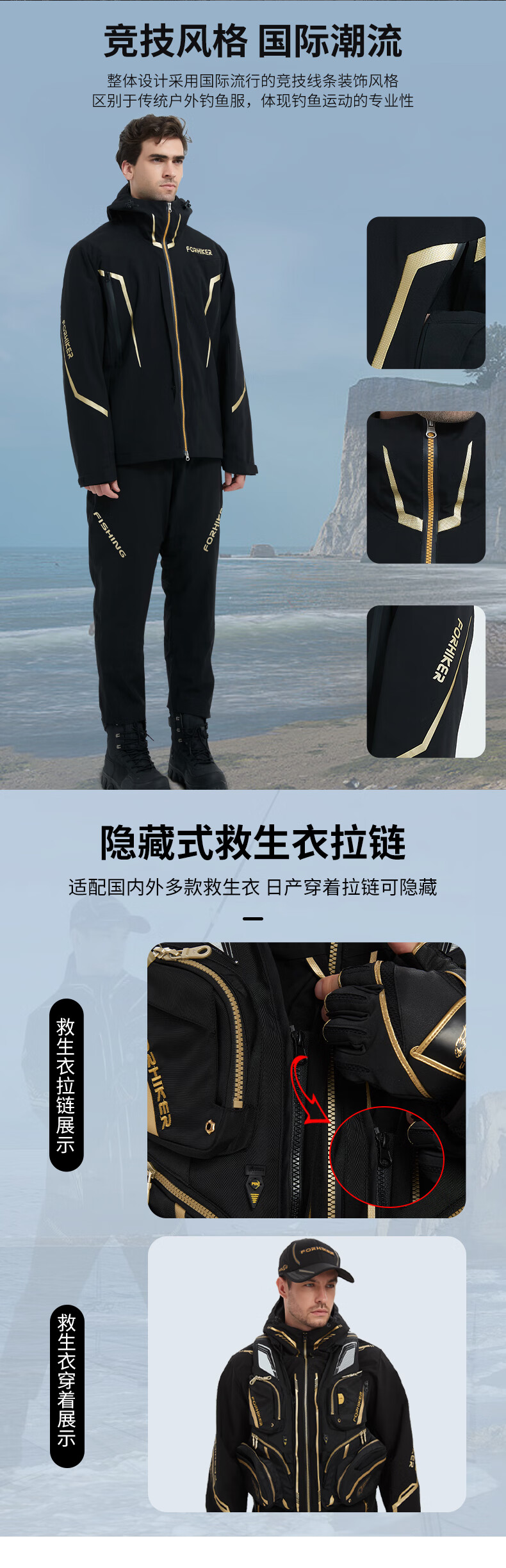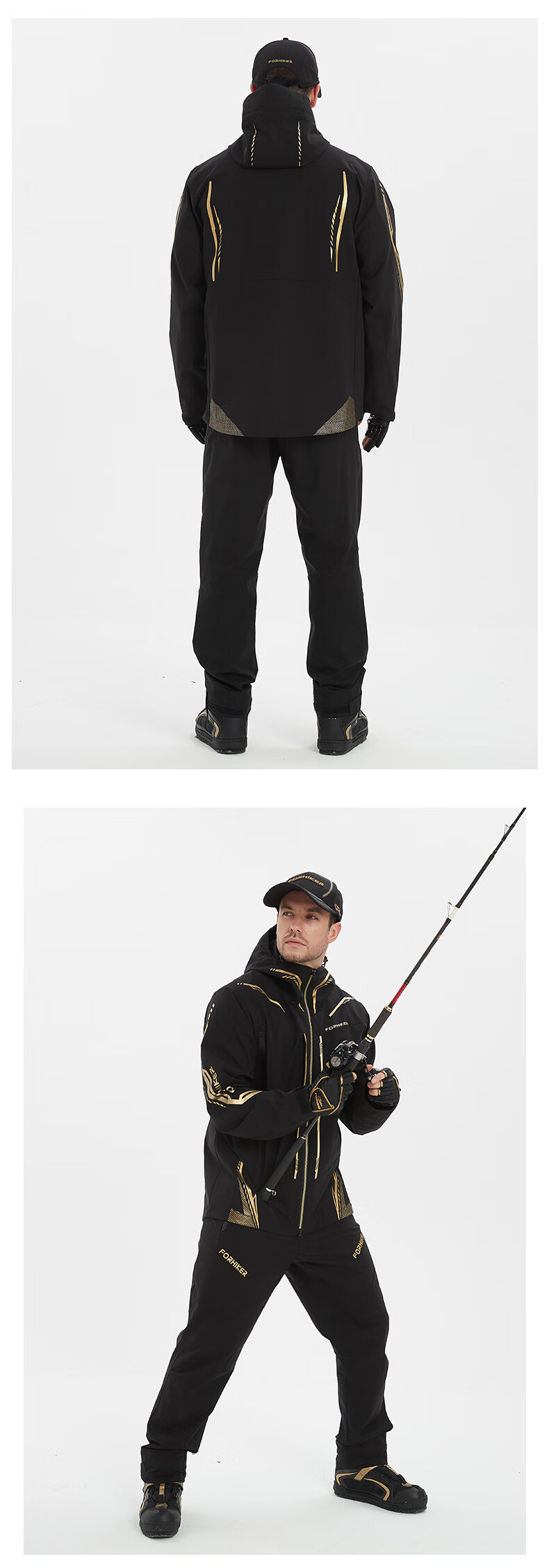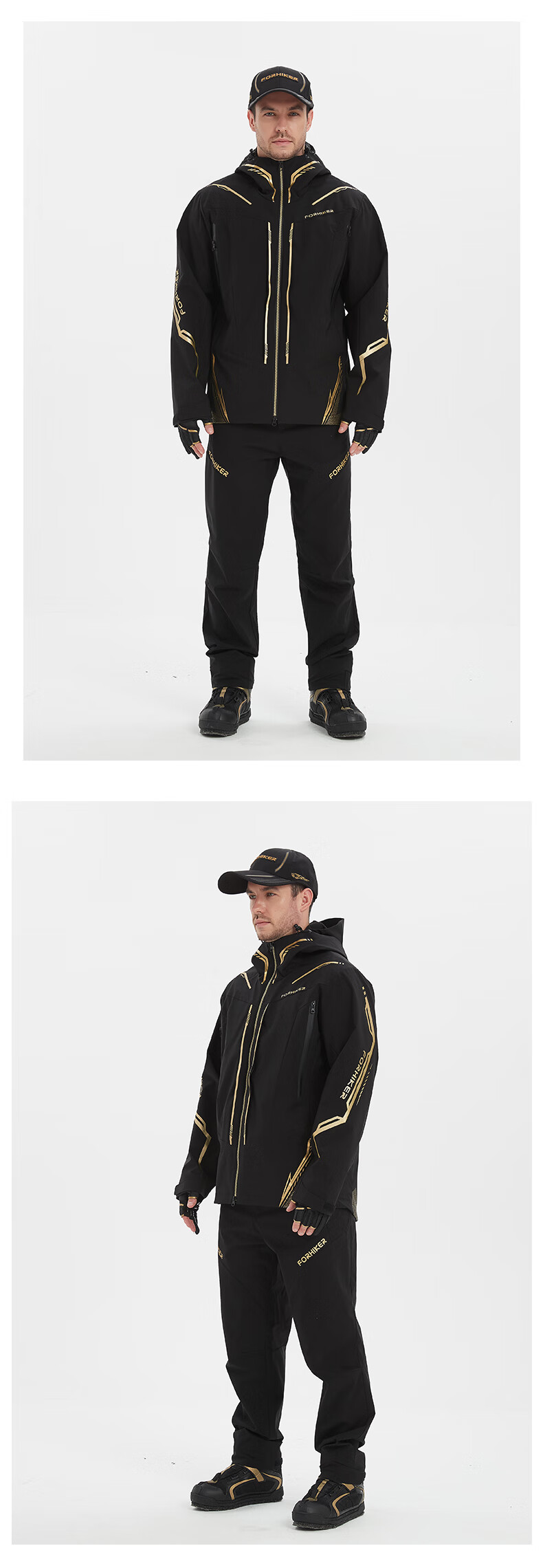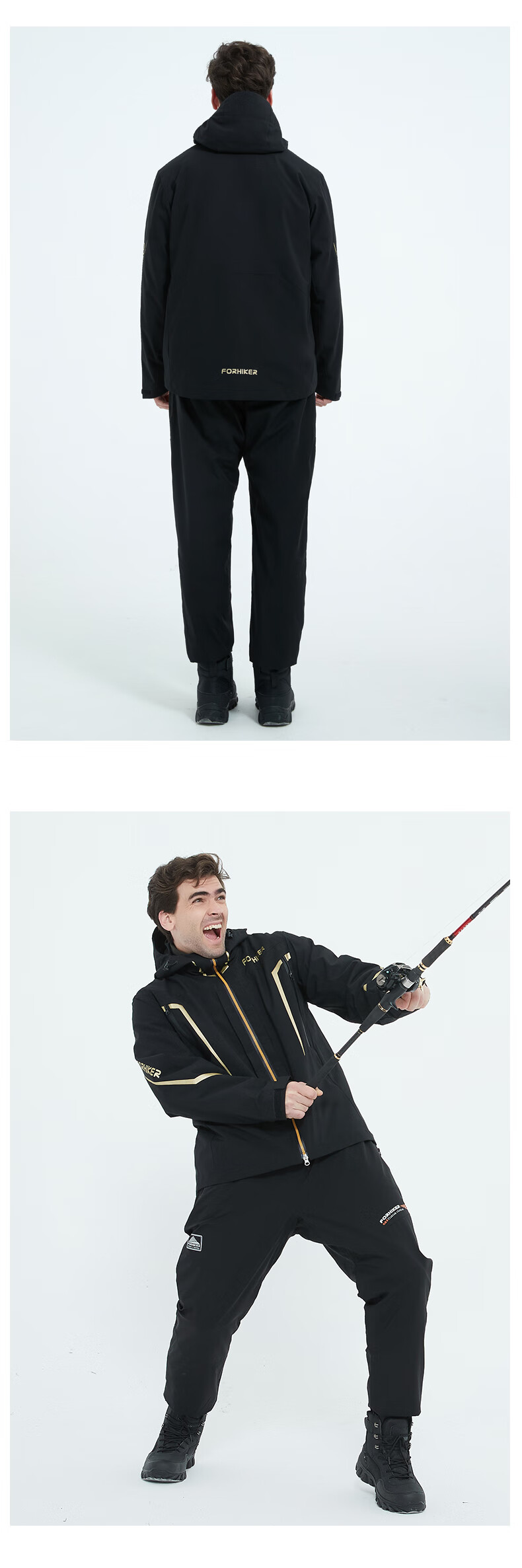 Wind Hunter fishing suit waterproof autumn and winter men's three-in-one assault lure suit professional outdoor rainproof high-end rock fishing suit black wave chasing full body 4-piece suit (down pants) 4XL