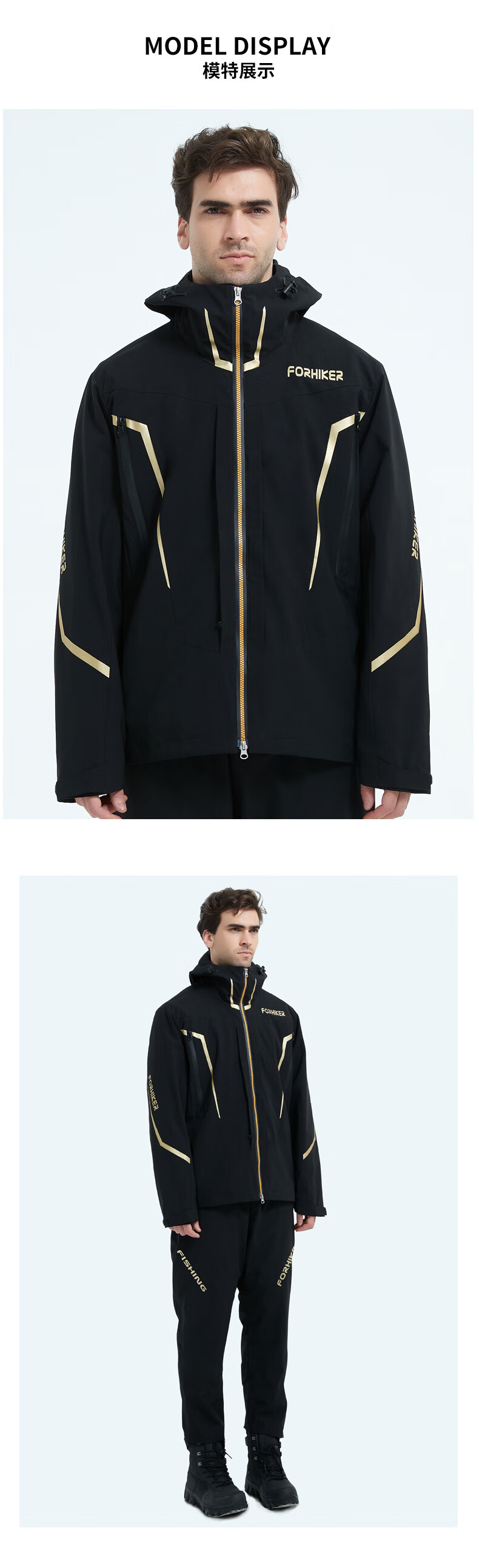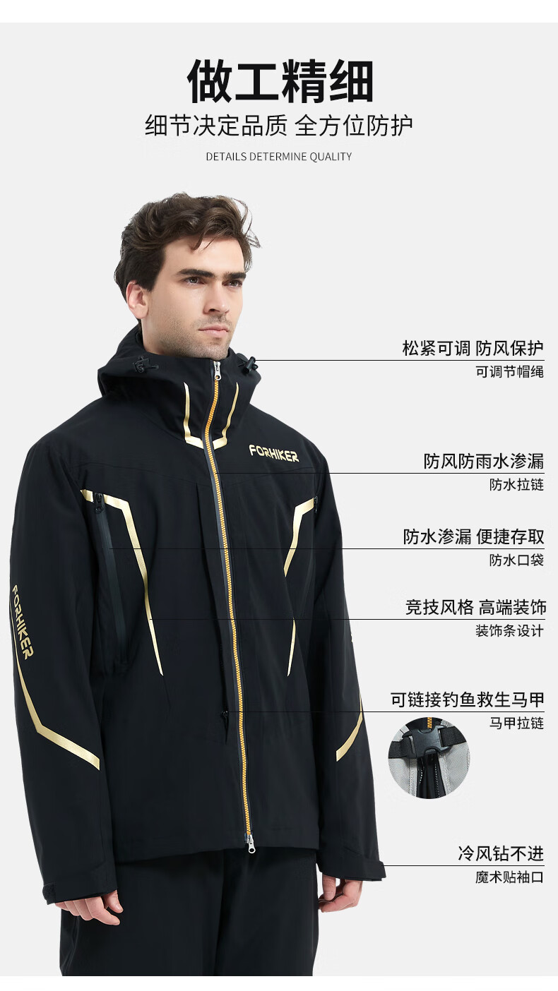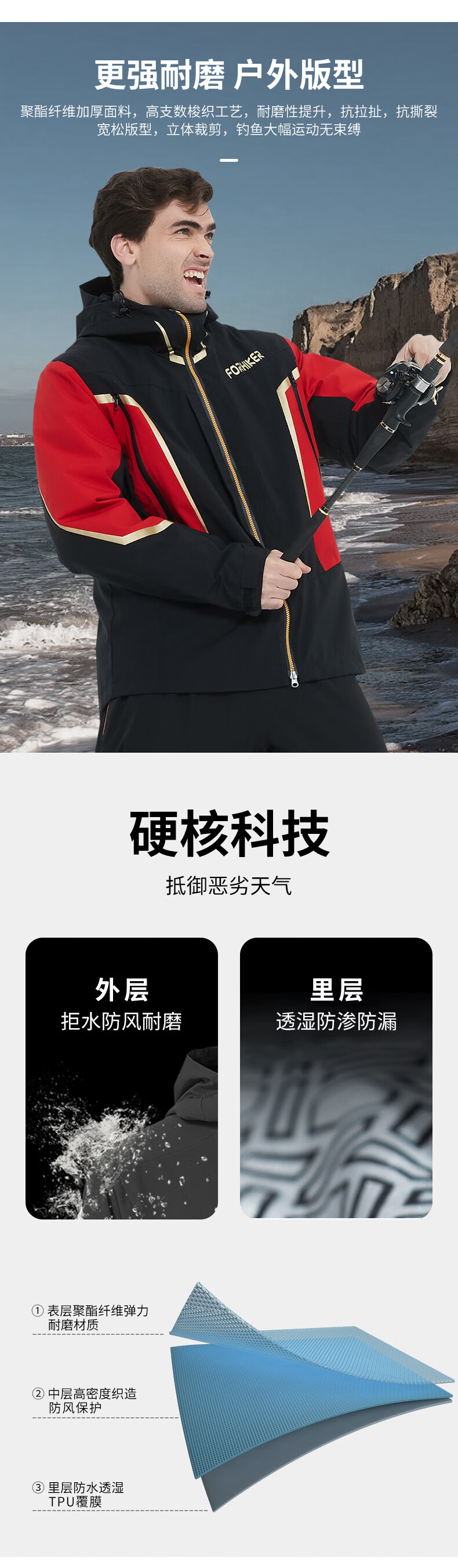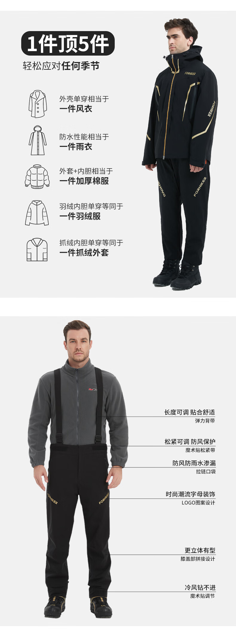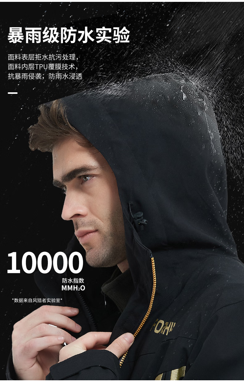 Wind Hunter fishing suit waterproof autumn and winter men's three-in-one assault lure suit professional outdoor rainproof high-end rock fishing suit black wave chasing full body 4-piece suit (down pants) 4XL