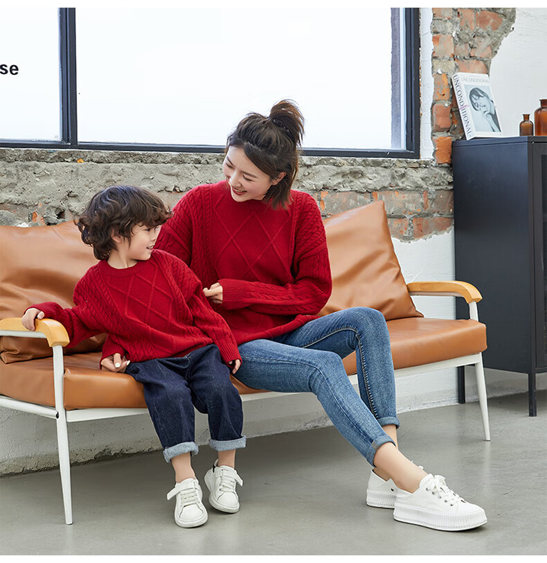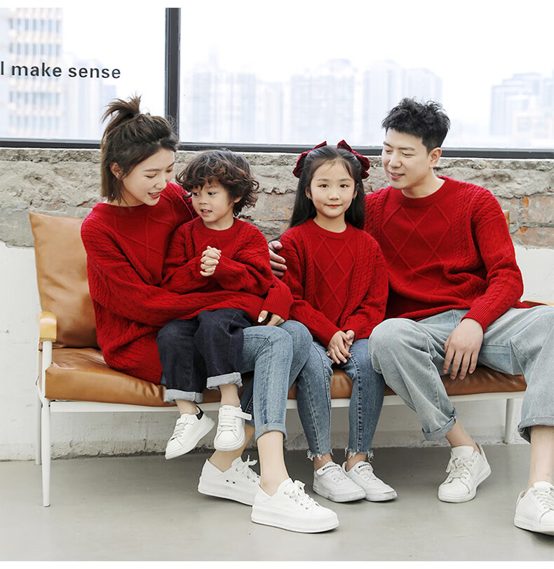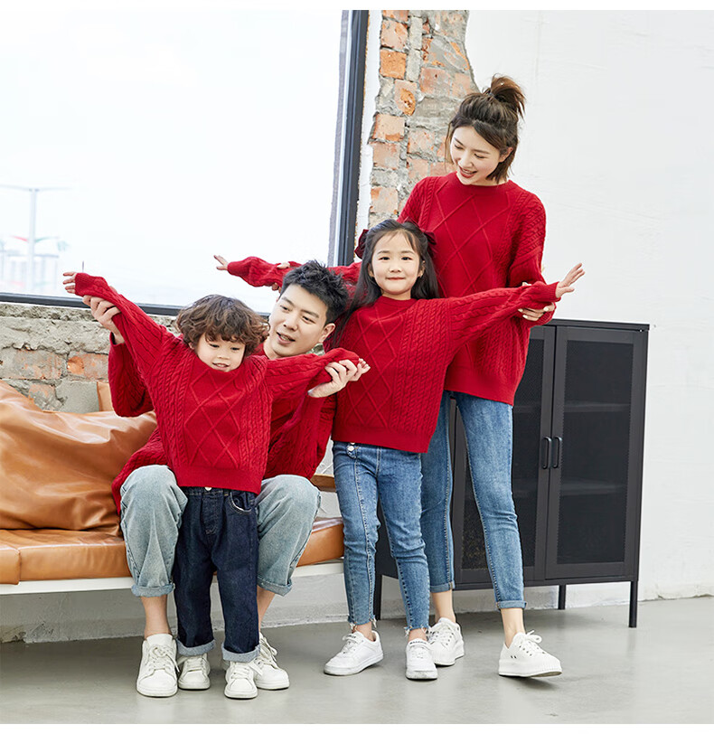 BUBBLE ORANGE parent-child autumn and winter sweater red festive New Year and Spring Festival sweater for a family of three and four to take photos as a family outfit burgundy family outfit L size for parents (recommended height 165-175cm)