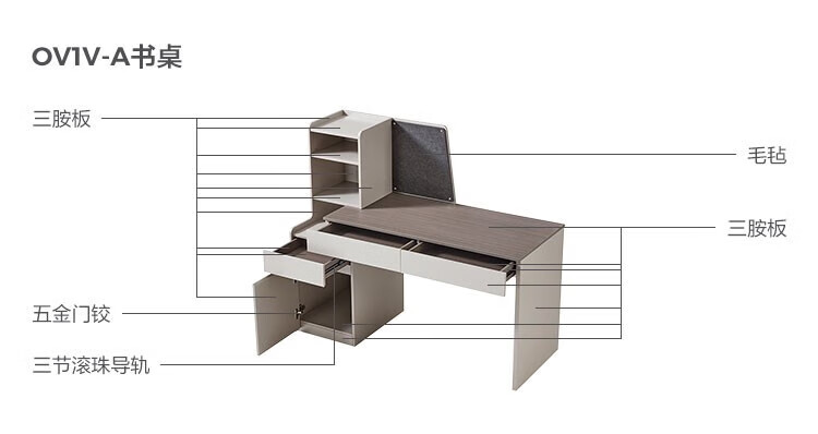 LINSY KIDS modern simple retractable desk and chair combination study small apartment desk Lin's OV1V Muyun Gray | OV1V-C desk