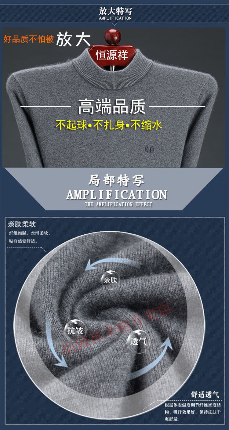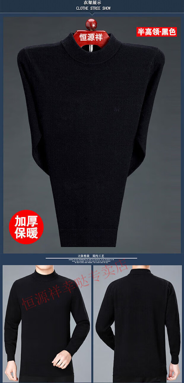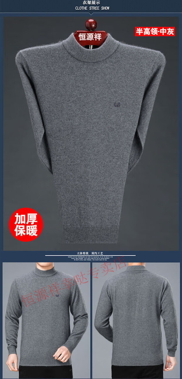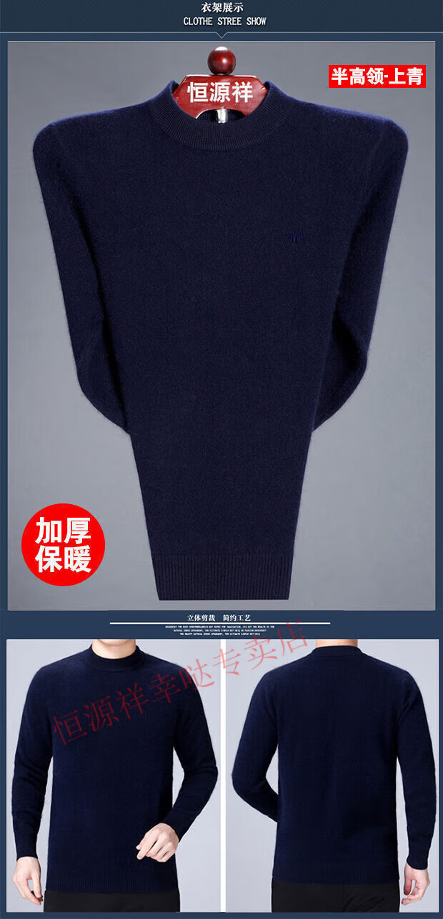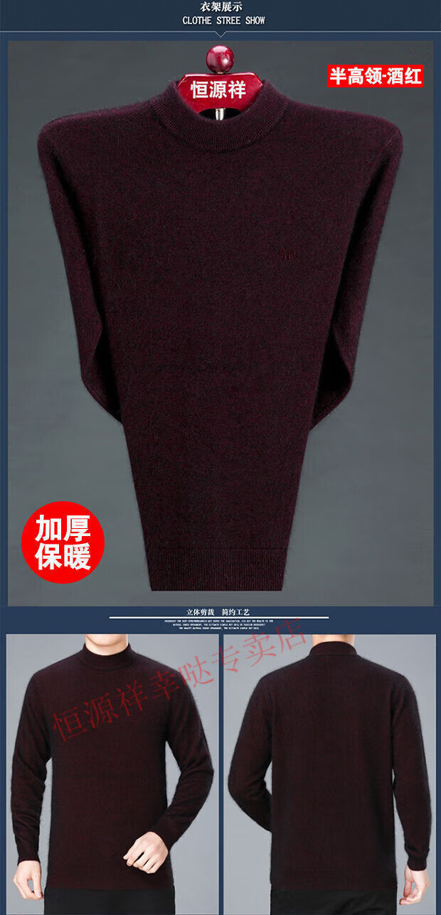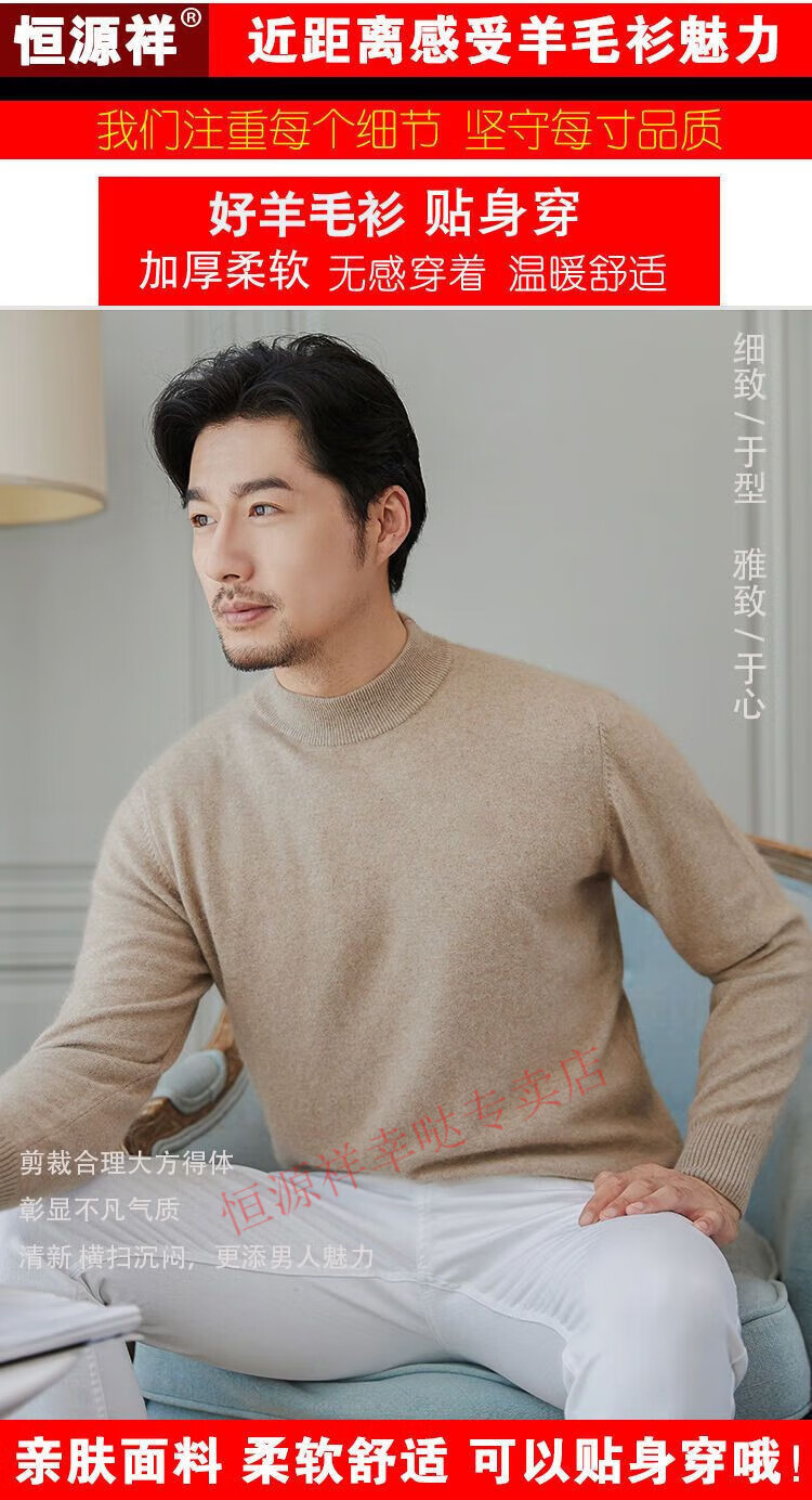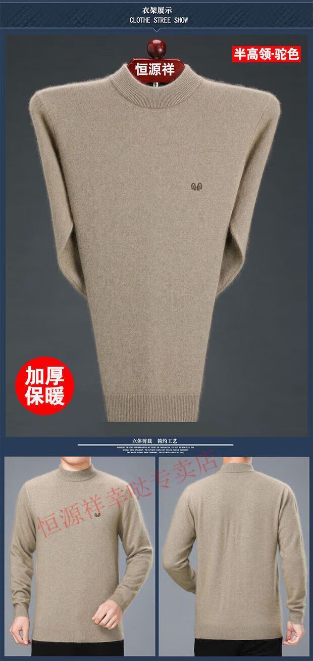 Hengyuanxiang woolen sweater men's winter thickened half turtleneck middle-aged sweater large size sheep. cashmere bottoming sweater dad wear men's half turtleneck - camel (wool) - pure new 100 170/88A 120-140Jin Jin equals 0.5 kg