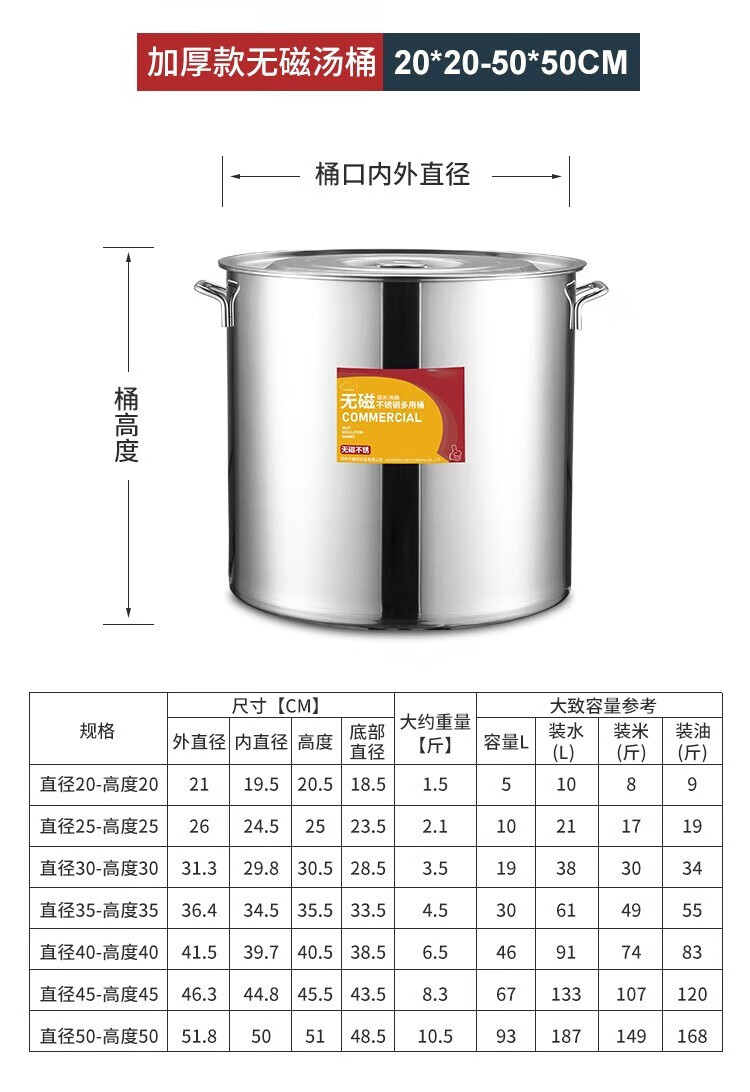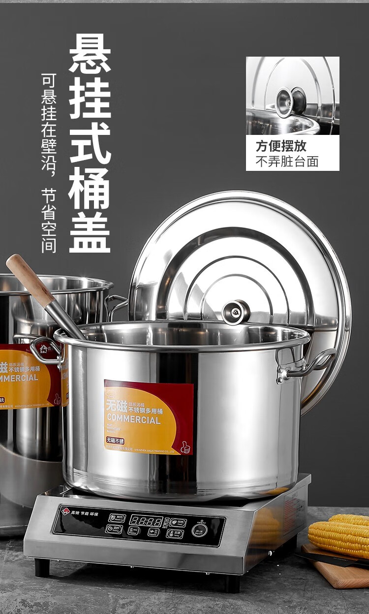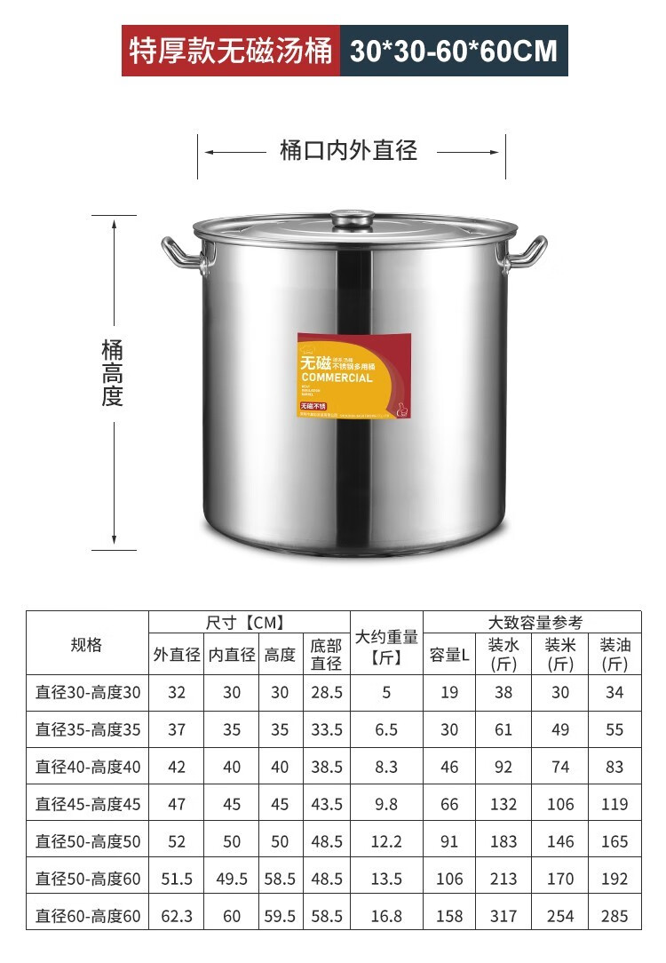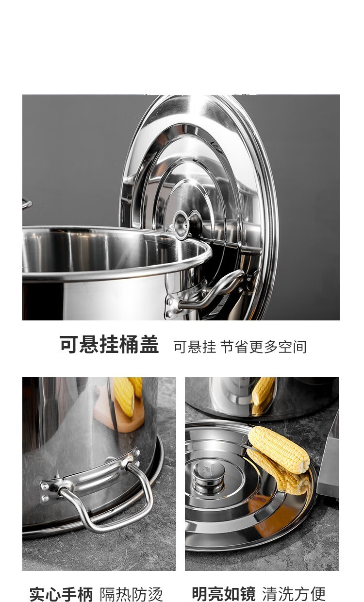 Chuangweiyue stainless steel drum with lid commercial soup bucket electric stove large soup pot cooking pot large capacity braised meat bucket household water bucket diameter 35 height 35 capacity about 35L