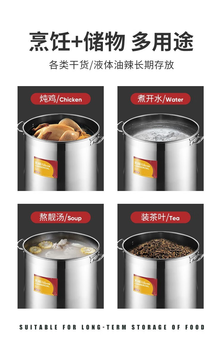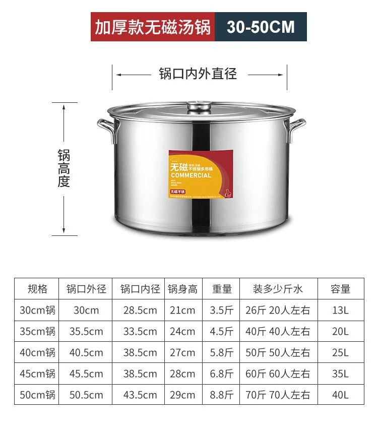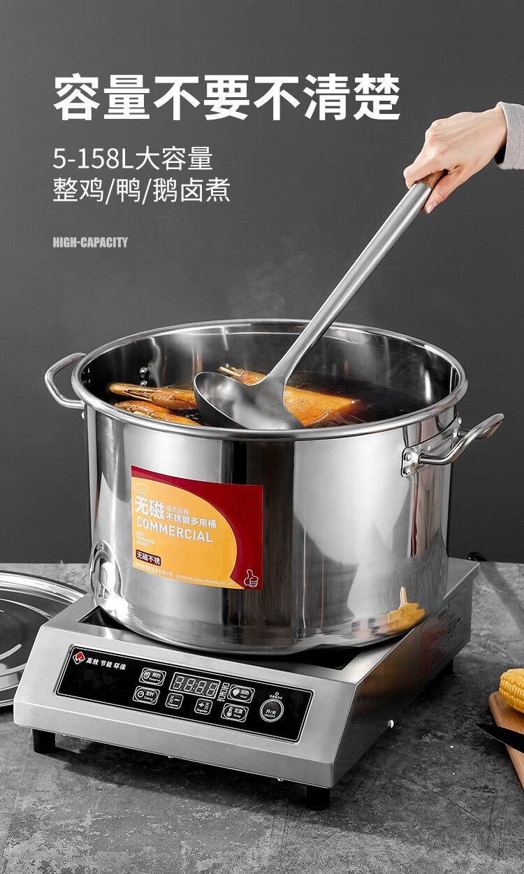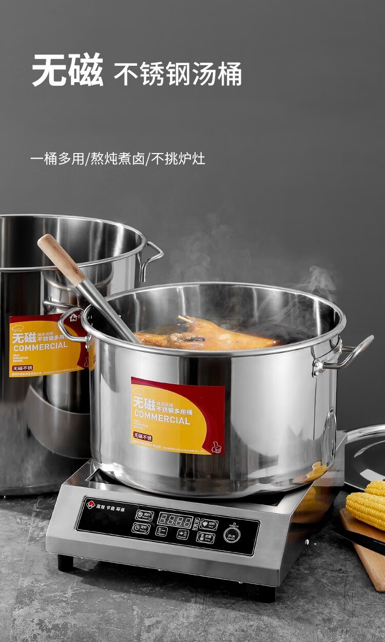 Chuangweiyue stainless steel drum with lid commercial soup bucket electric stove large soup pot cooking pot large capacity braised meat bucket household water bucket diameter 35 height 35 capacity about 35L