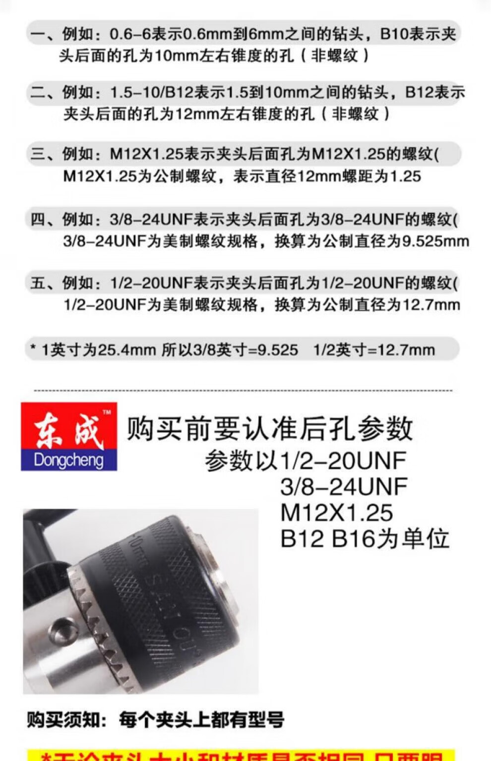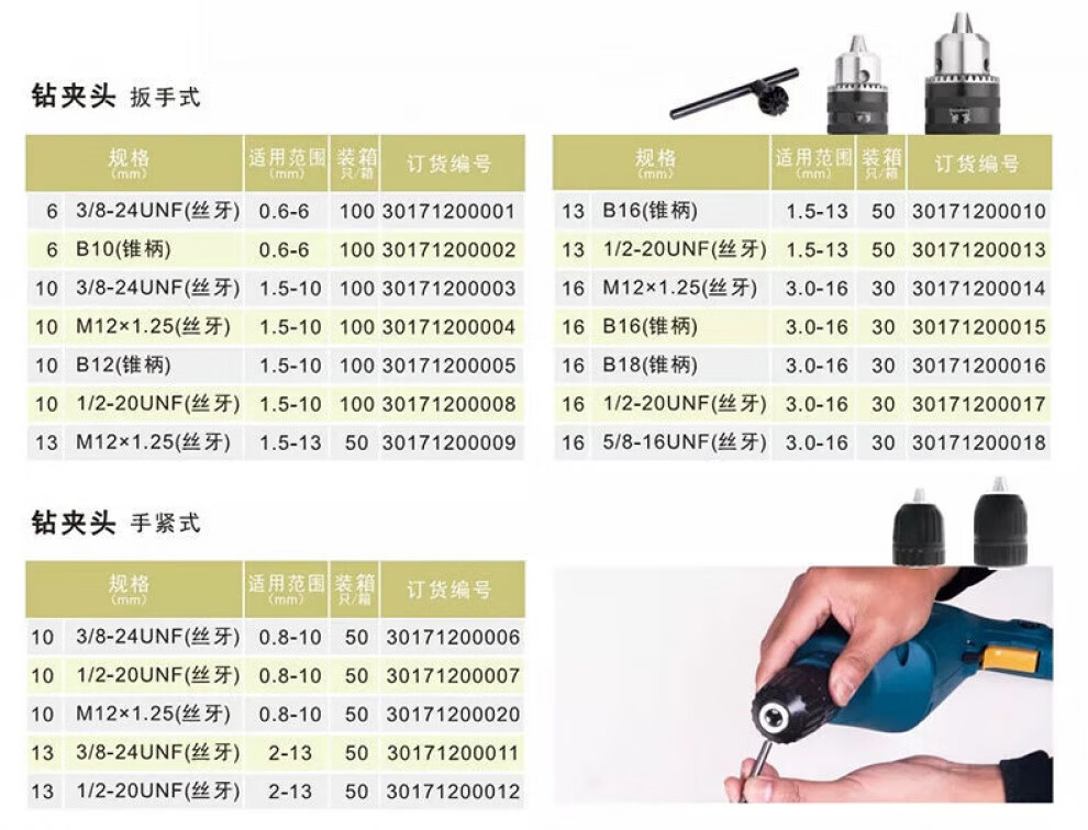 Dongcheng drill chuck hand tight self-locking key iron chuck 6/10/13/16mm electric drill bit universal chuck fast drill chuck-1.5-10 3/8X24UNF