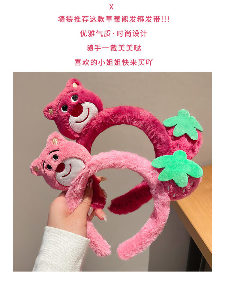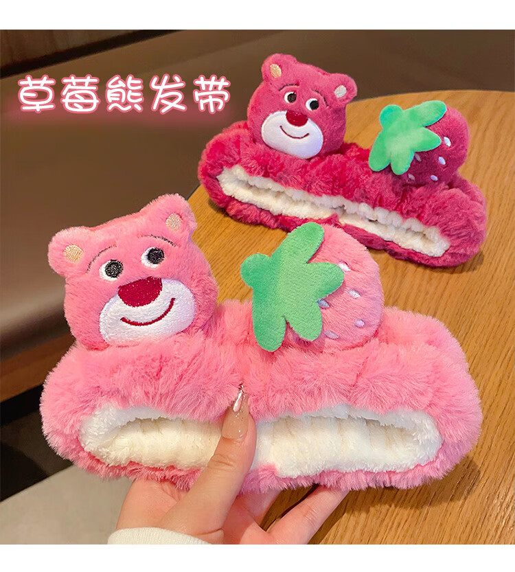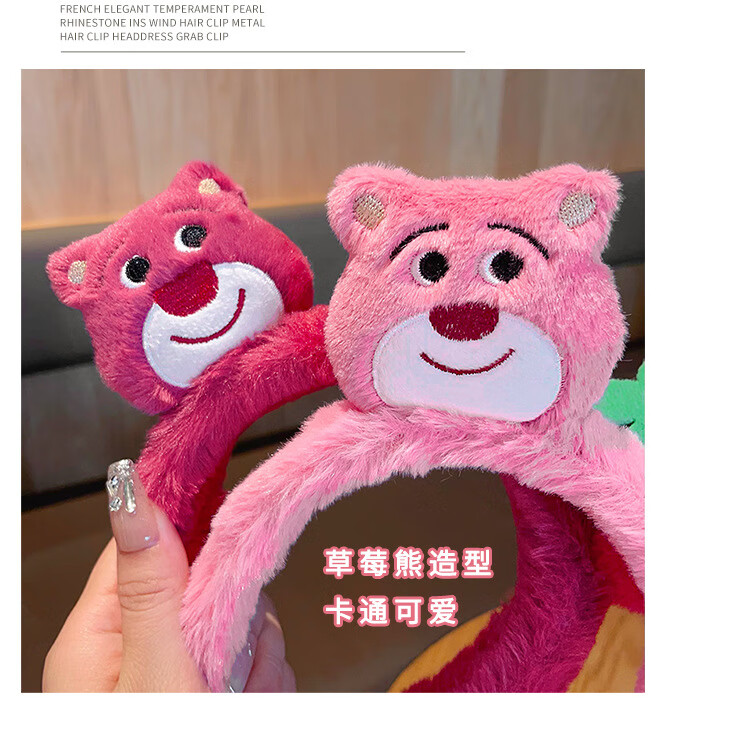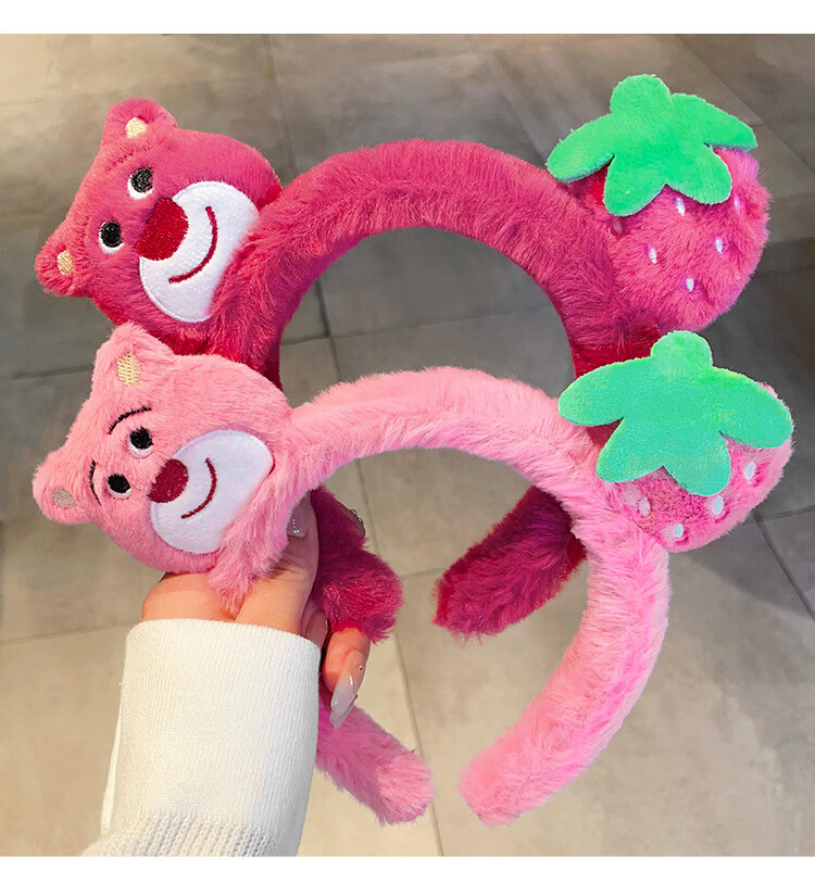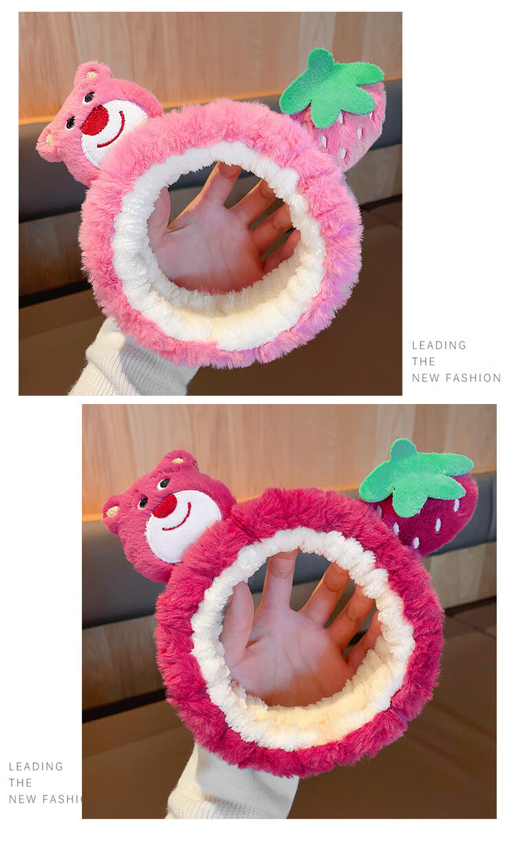MOYAN Cartoon Strawberry Bear Headband for Women 2025 New Face Wash and Makeup Special Hairband Cute Plush Hairband Headband Pink Three-dimensional Strawberry Bear Headband