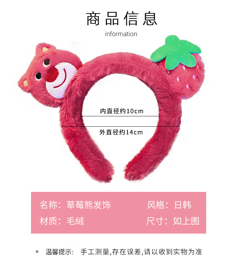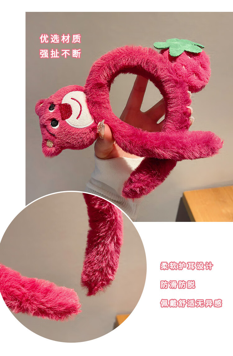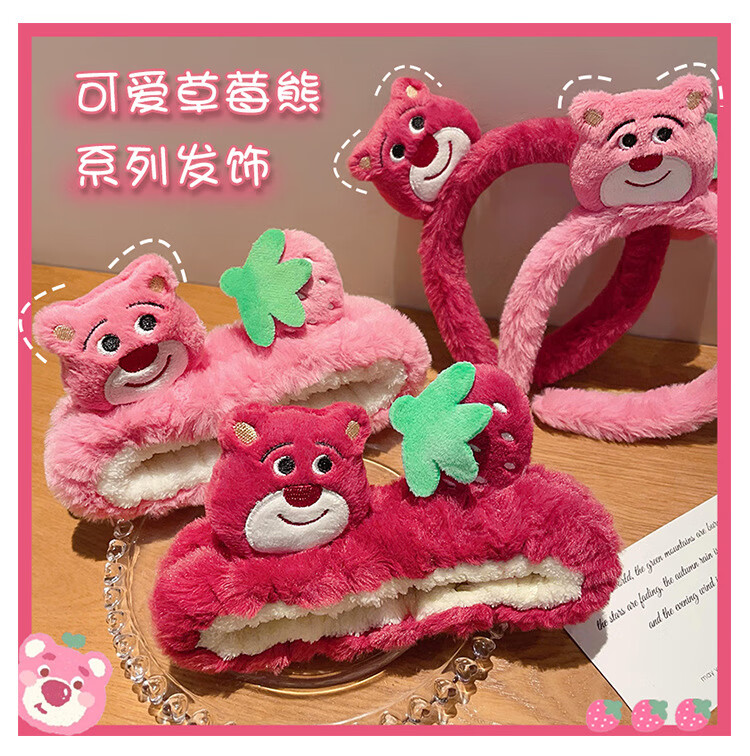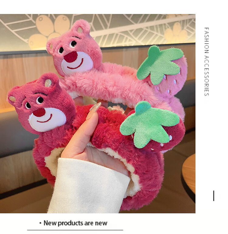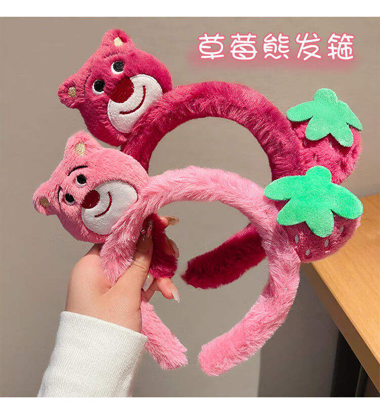 MOYAN Cartoon Strawberry Bear Headband for Women 2025 New Face Wash and Makeup Special Hairband Cute Plush Hairband Headband Pink Three-dimensional Strawberry Bear Headband