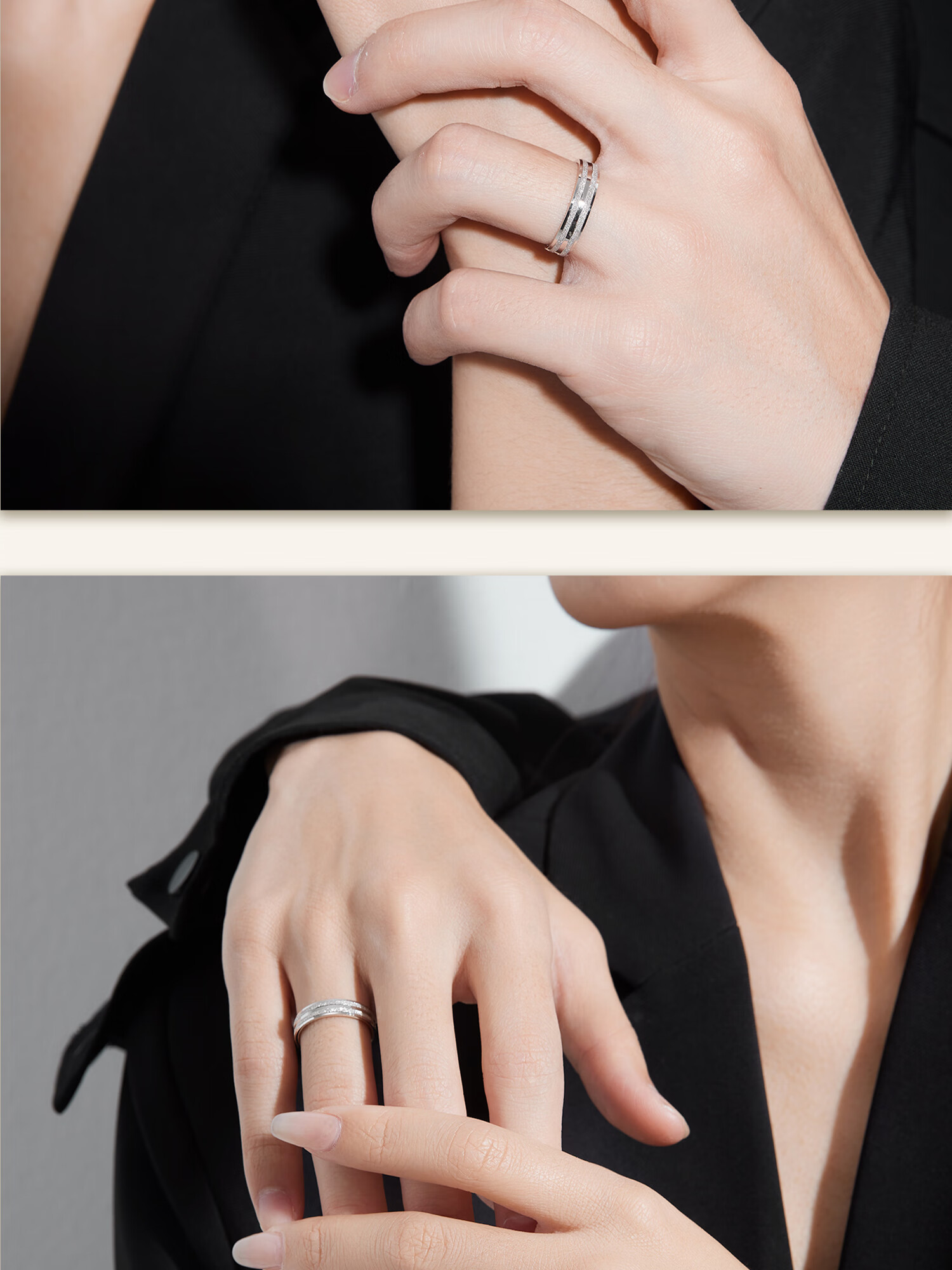 Century edge platinum ring for men and women, trajectory aperture, sand surface PT950 couple ring, birthday gift for girlfriend and boyfriend, 3.09g, ring number 10