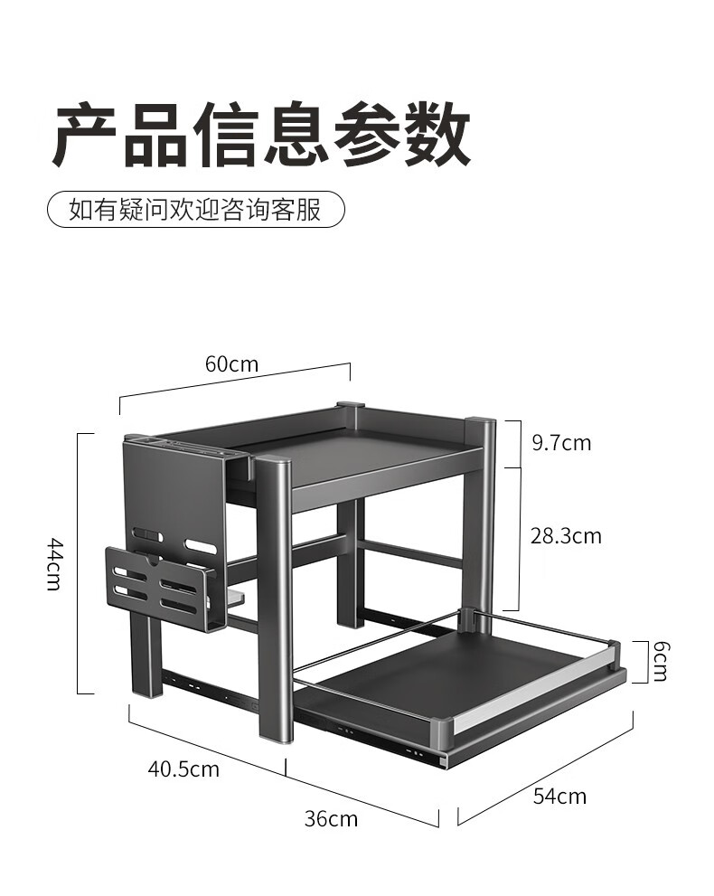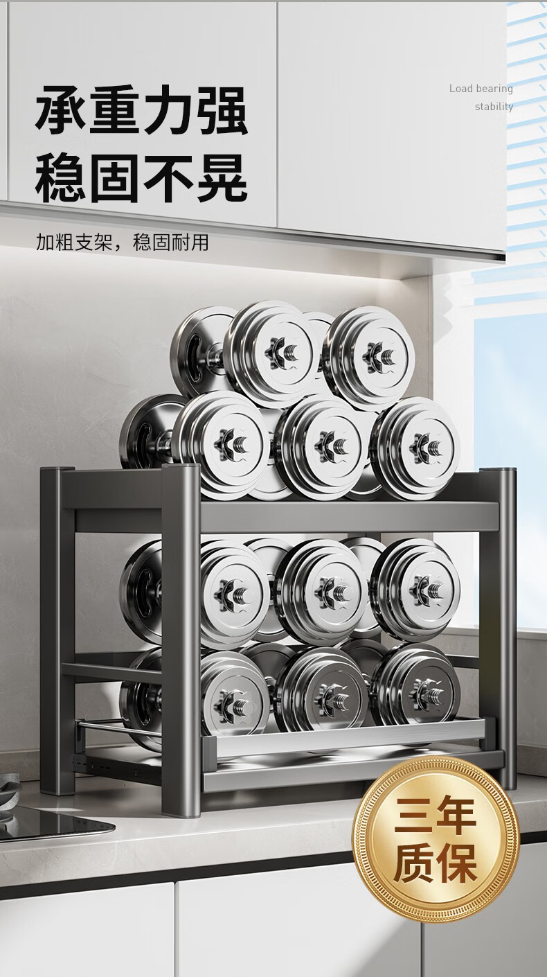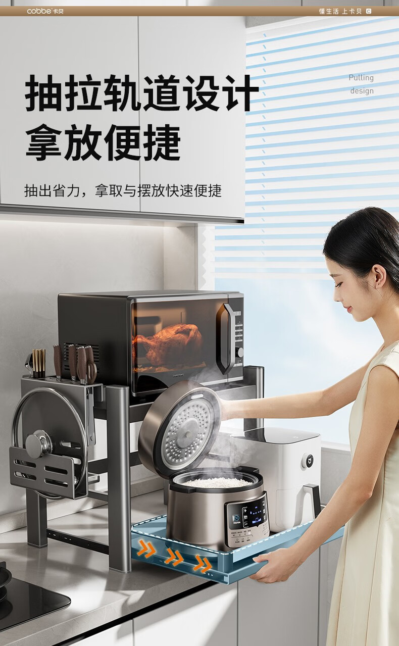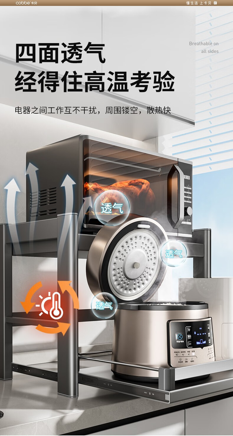 Cobbe kitchen storage rack telescopic microwave rack oven rice cooker stand countertop utensil storage multi-functional storage rack gun ash recommended model 60CM (fully equipped)