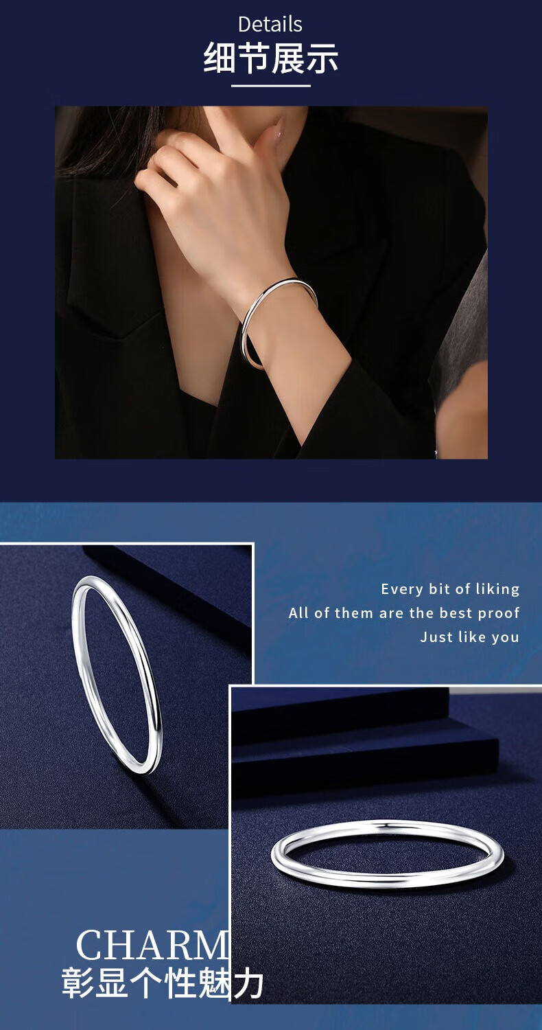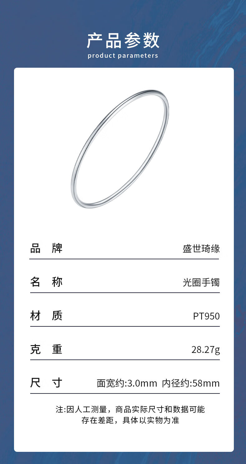 Shengshi Qiyuan platinum bracelet for women pt950 platinum bracelet solid bracelet smooth plain ring bracelet bracelet inner diameter 54mm weight 35-36g thick about 3.5mm