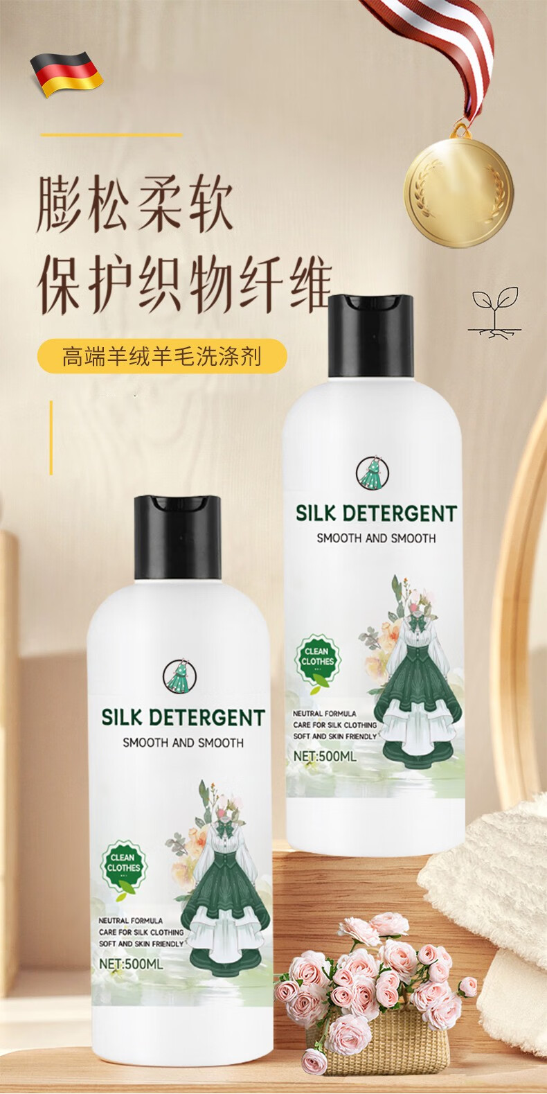 Moyi wool laundry detergent neutral fluffy anti-shrink sweater coat stain removal detergent cashmere sweater special detergent 500ml 1 bottle wool cashmere cleaning agent