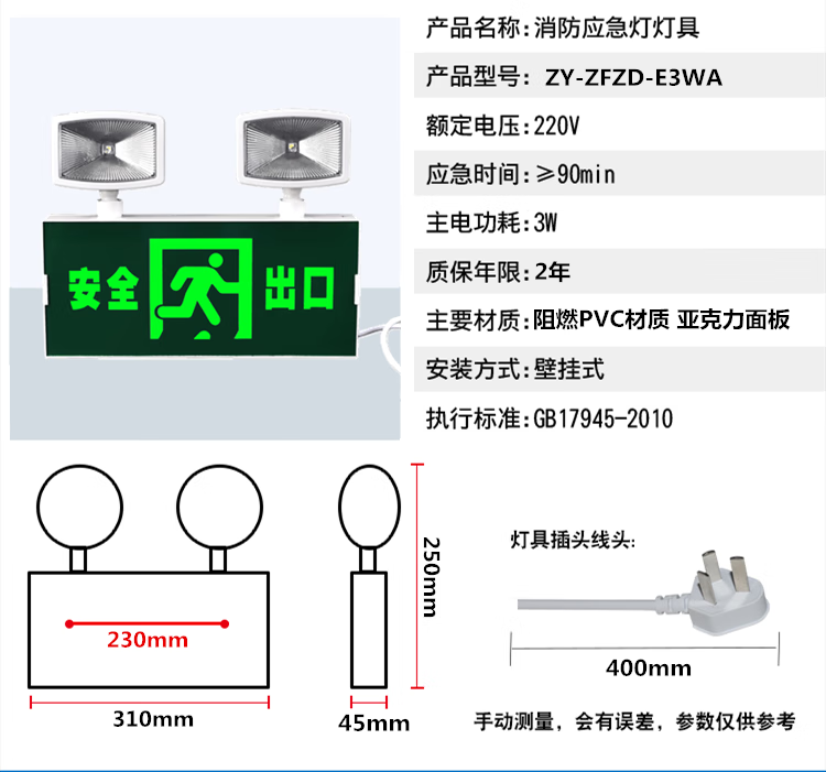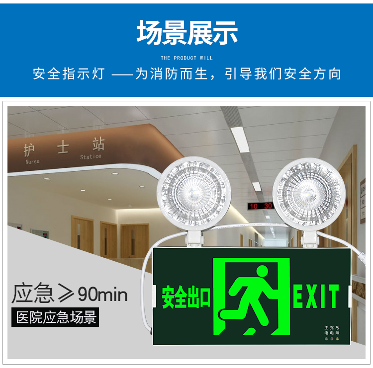 Yilin national standard fire emergency light LED safety exit sign evacuation light two-in-one rechargeable emergency lighting standard (safety exit) emergency 90 minutes