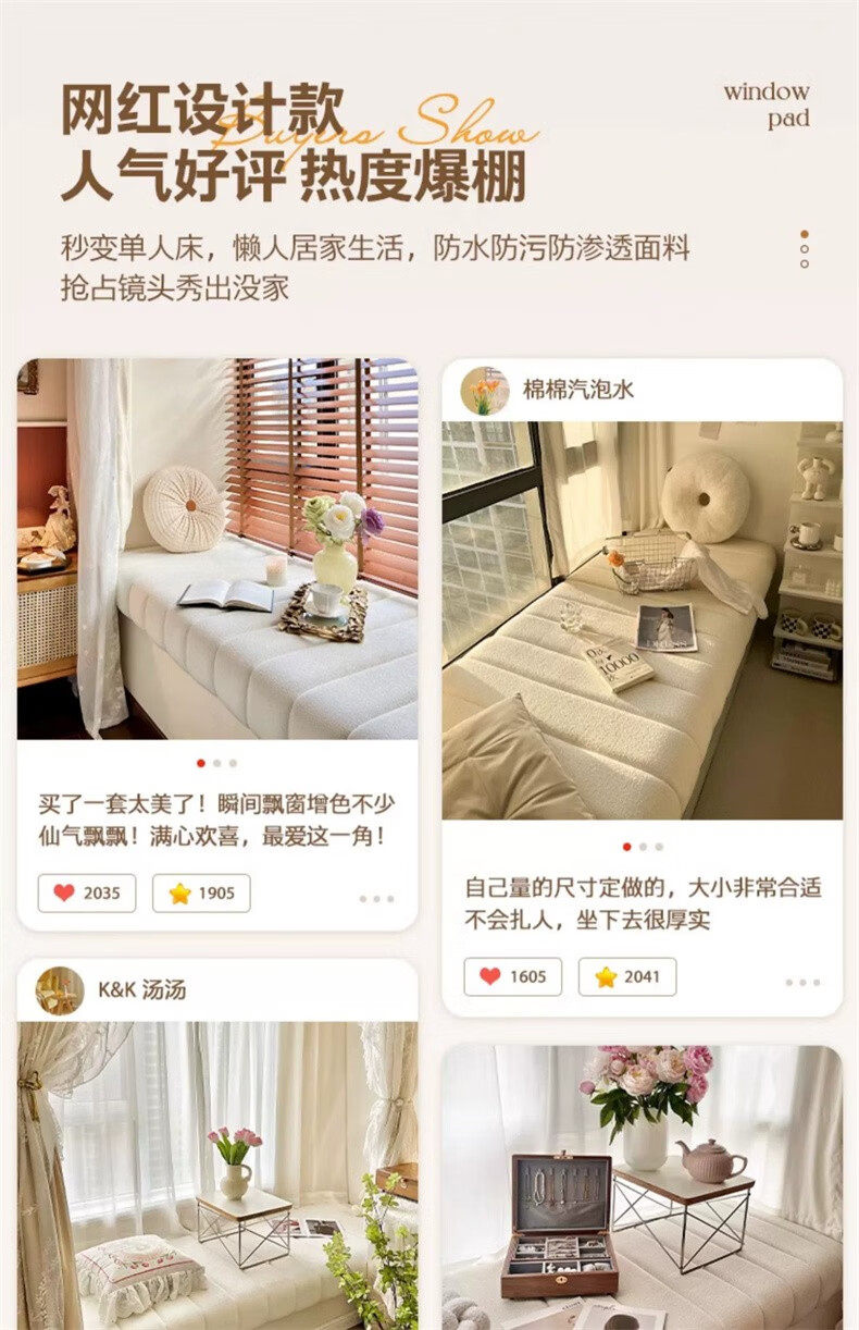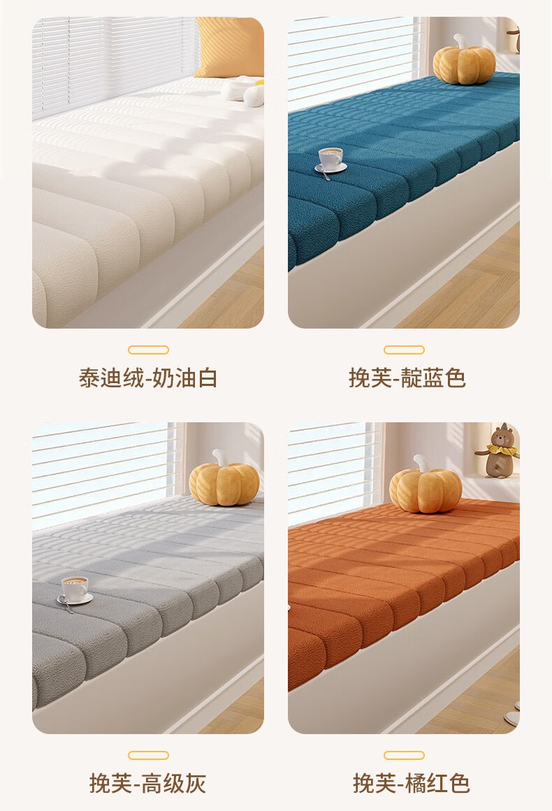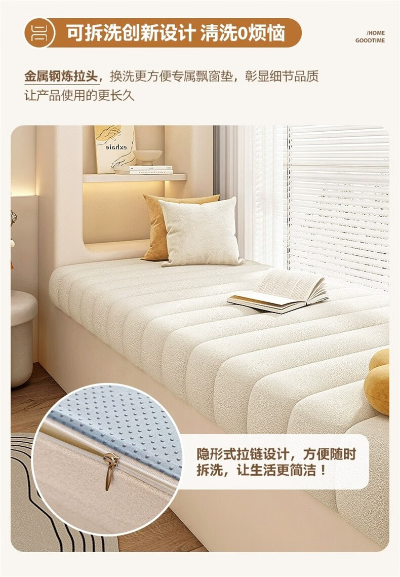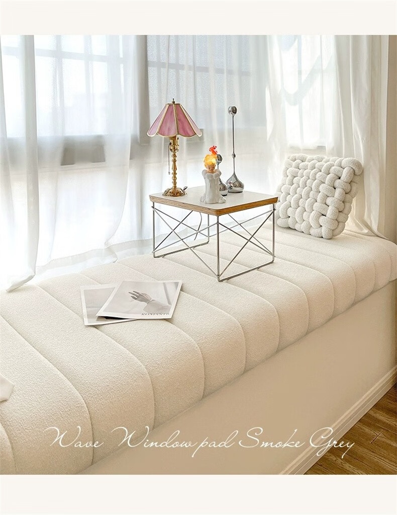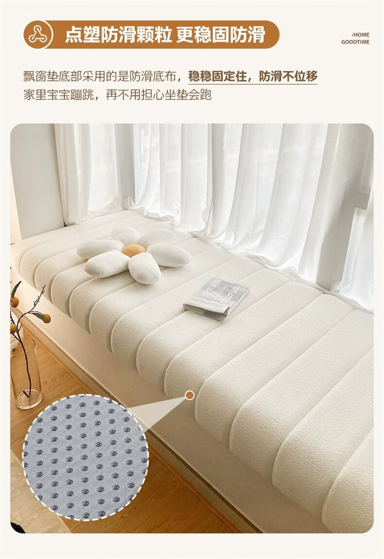 Golden Lemon 2026 New Removable Bay Window Mat Window Sill Mat Universal Internet Celebrity Teddy Velvet Master Bedroom Balcony Mat Customized Teddy Velvet-Cream White Drooping Style (Edge Anti-collision) 0cm*0cm For customization, please contact customer service