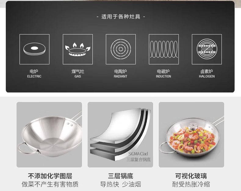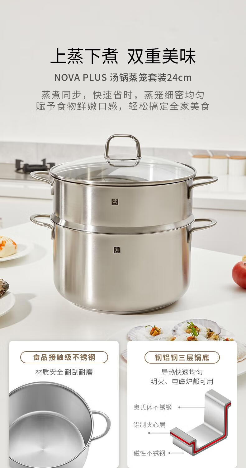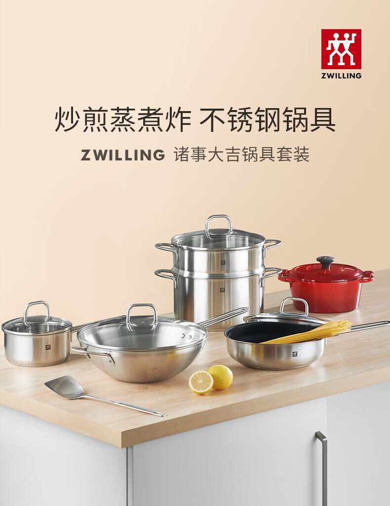 Zwilling pot set, stainless steel wok, milk pot, knife, non-stick frying pan, steamer, soup pot, housewarming 6-piece set