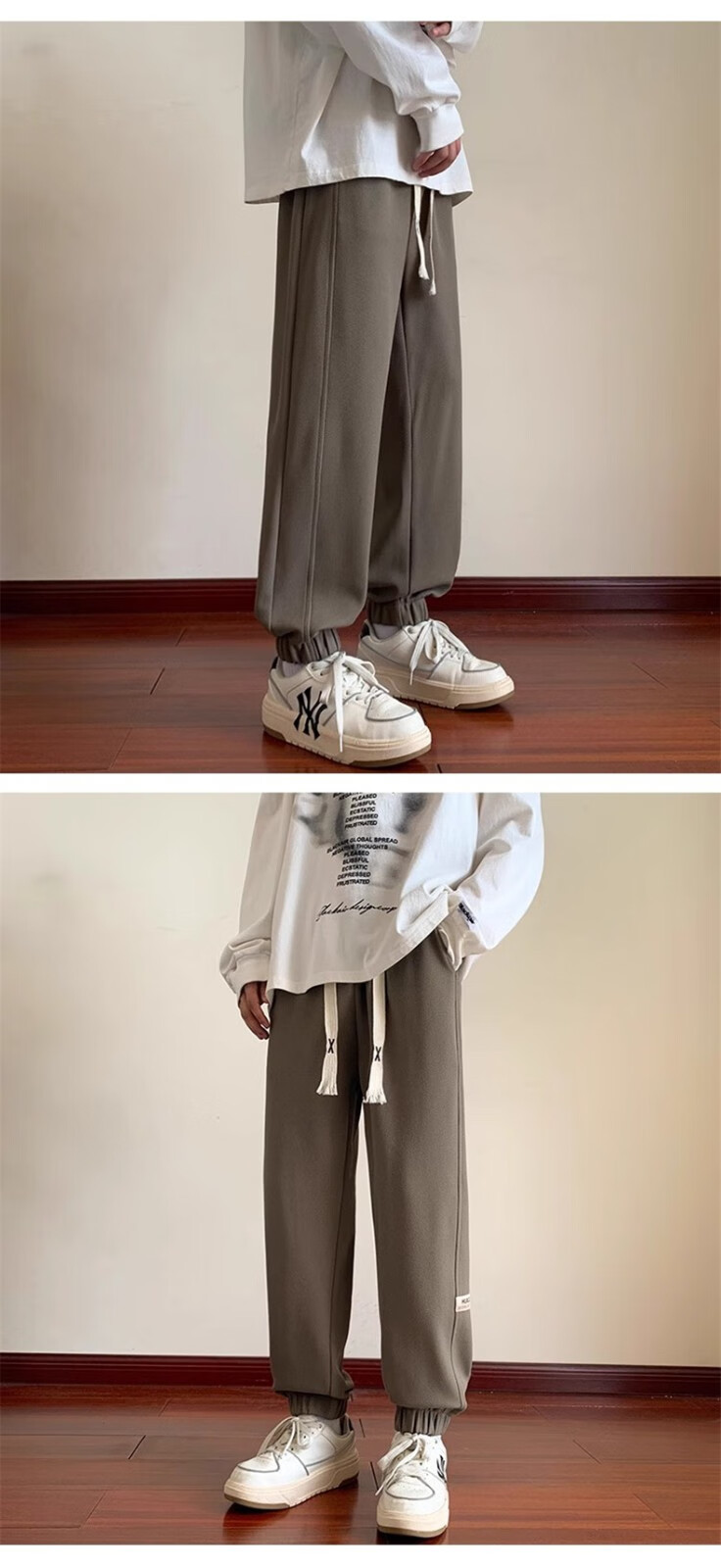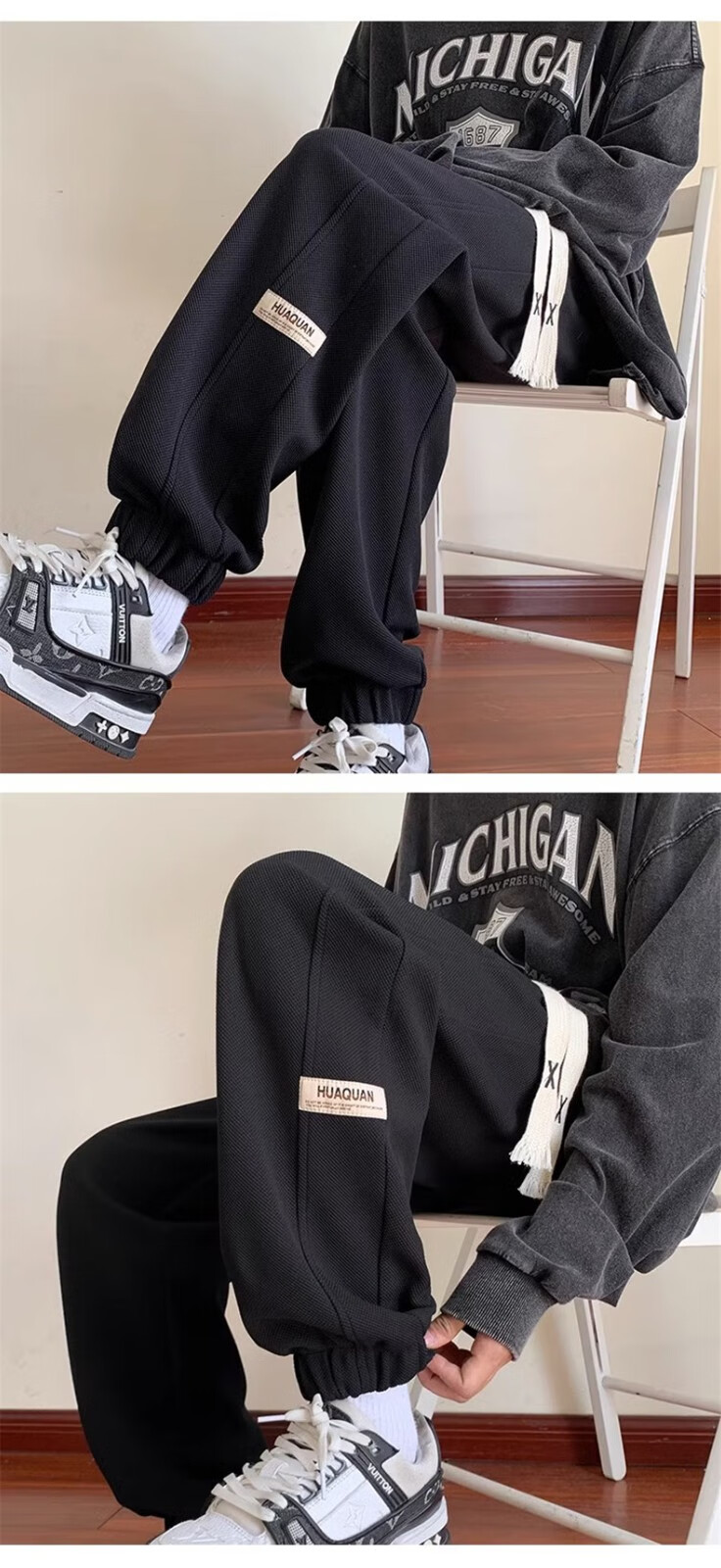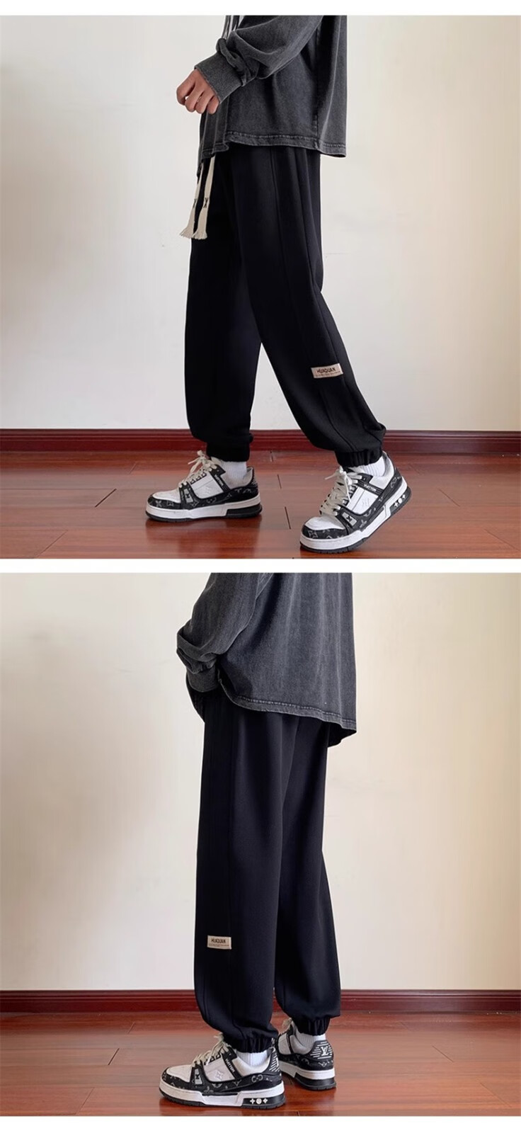 Cebrodz France casual pants men's autumn and winter new men's pants plus velvet sweatpants leggings long pants loose men's sweatpants black L