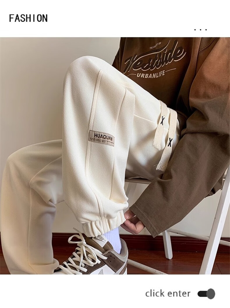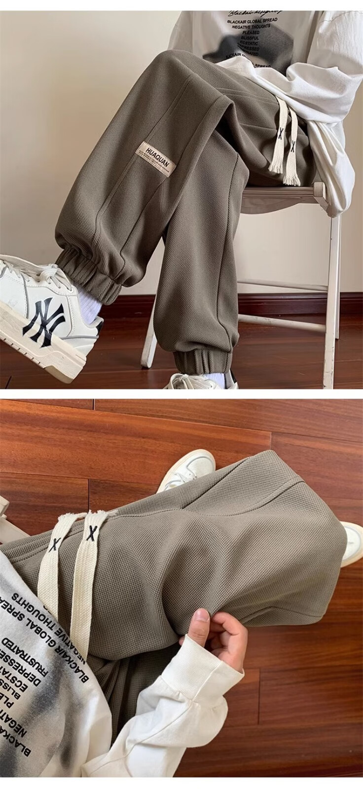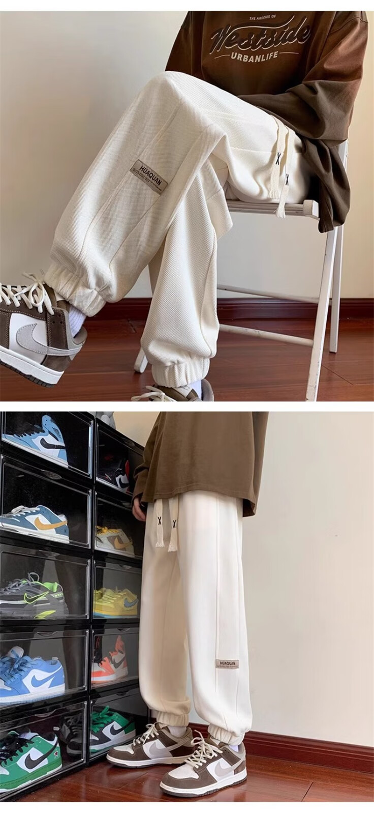 Cebrodz France casual pants men's autumn and winter new men's pants plus velvet sweatpants leggings long pants loose men's sweatpants black L