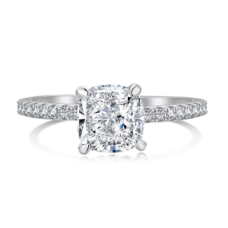 AVHE white platinum fat square ice flower cut women's ring four-prong 1 carat cultivated diamond ring new wedding gift for wife platinum diamond ring-30 points D color VVS main diamond