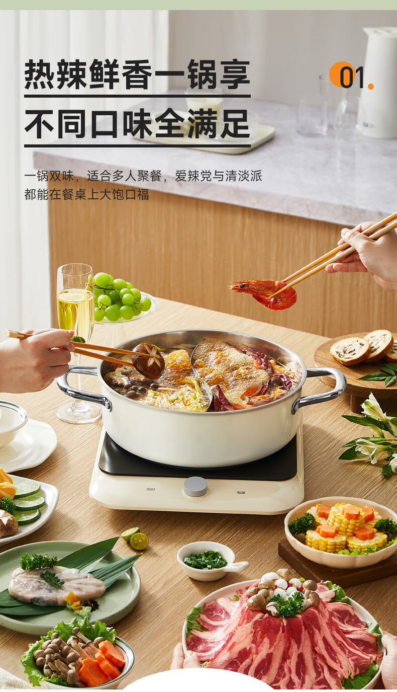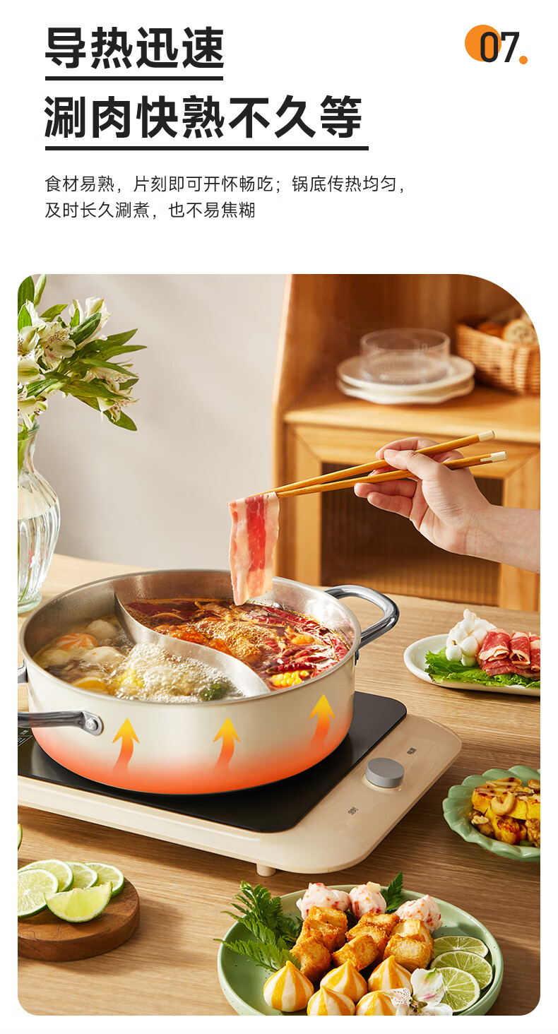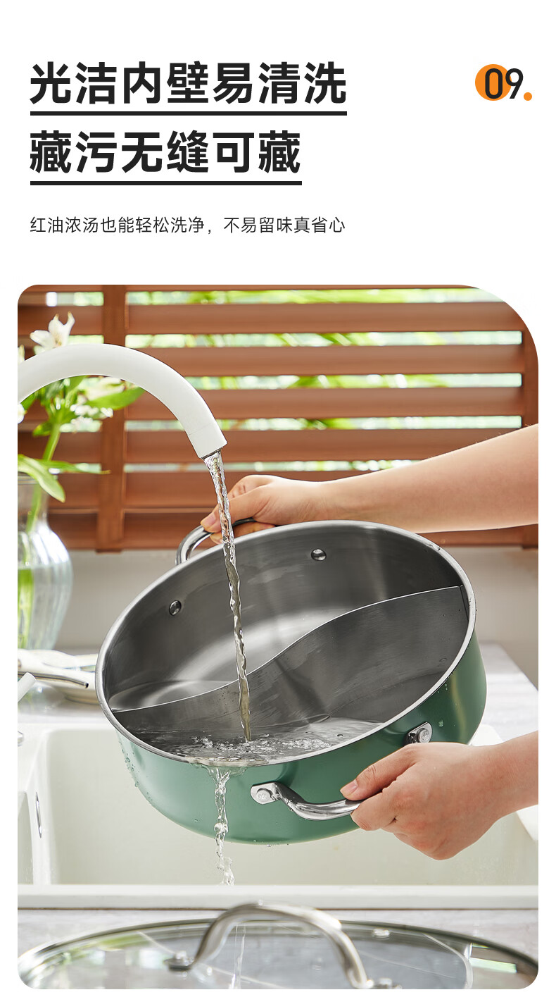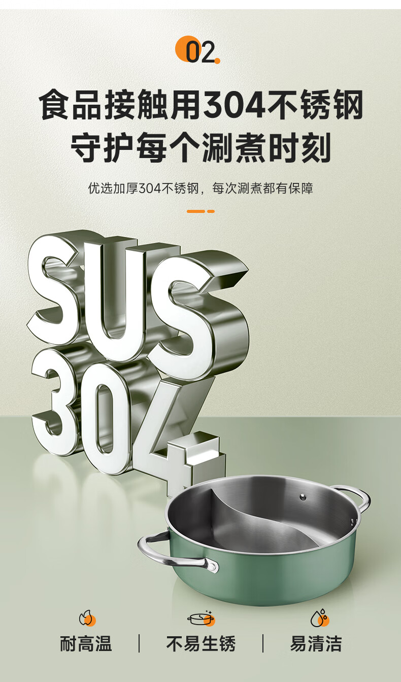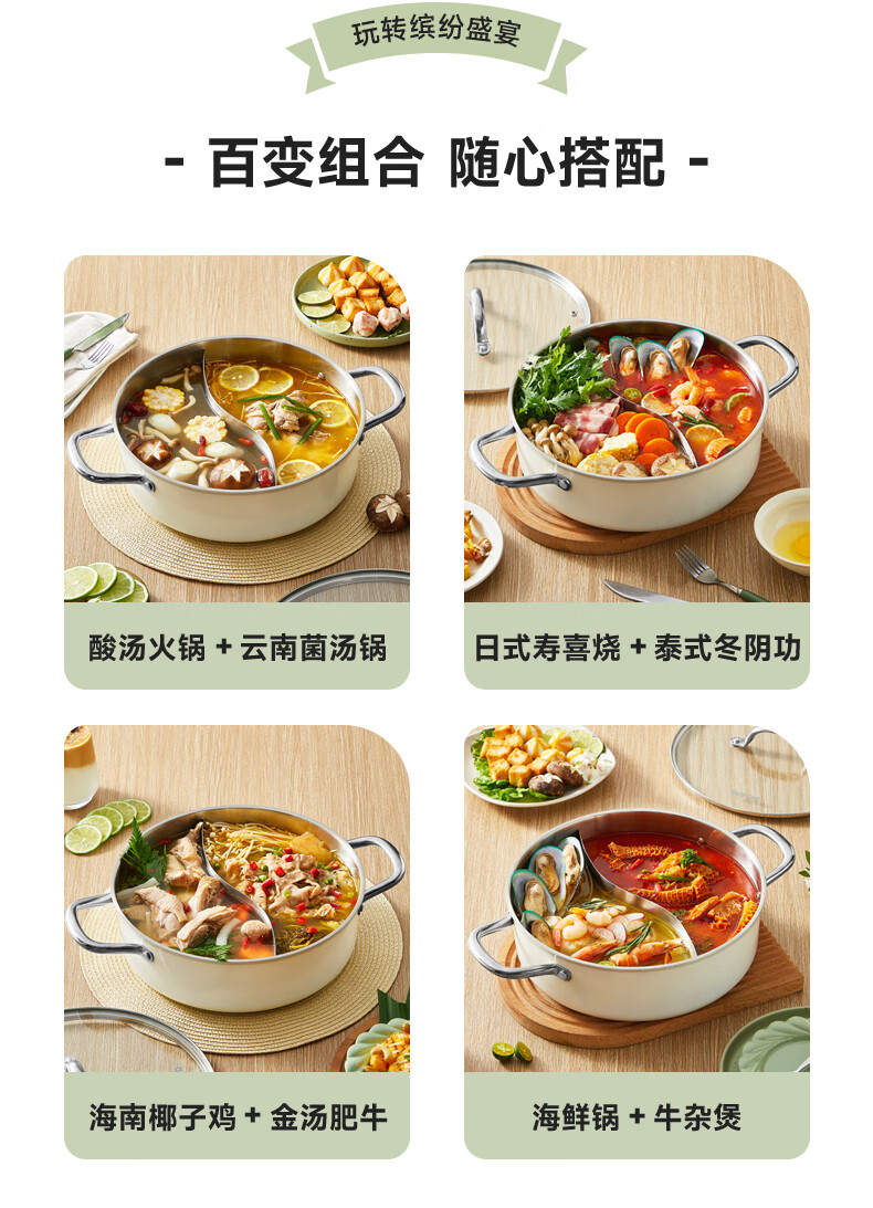 SUPOR hot pot 304 stainless steel mandarin duck pot double bottom thickened soup pot household easy-to-clean mutton open flame induction cooker universal ST28AB1-W mandarin duck pot white 28cm