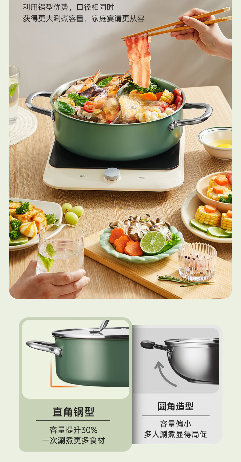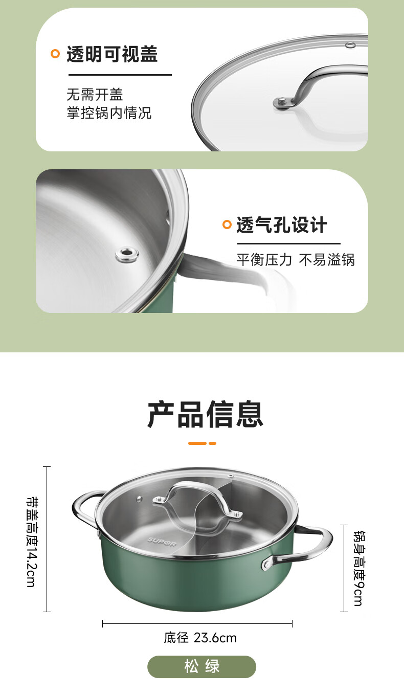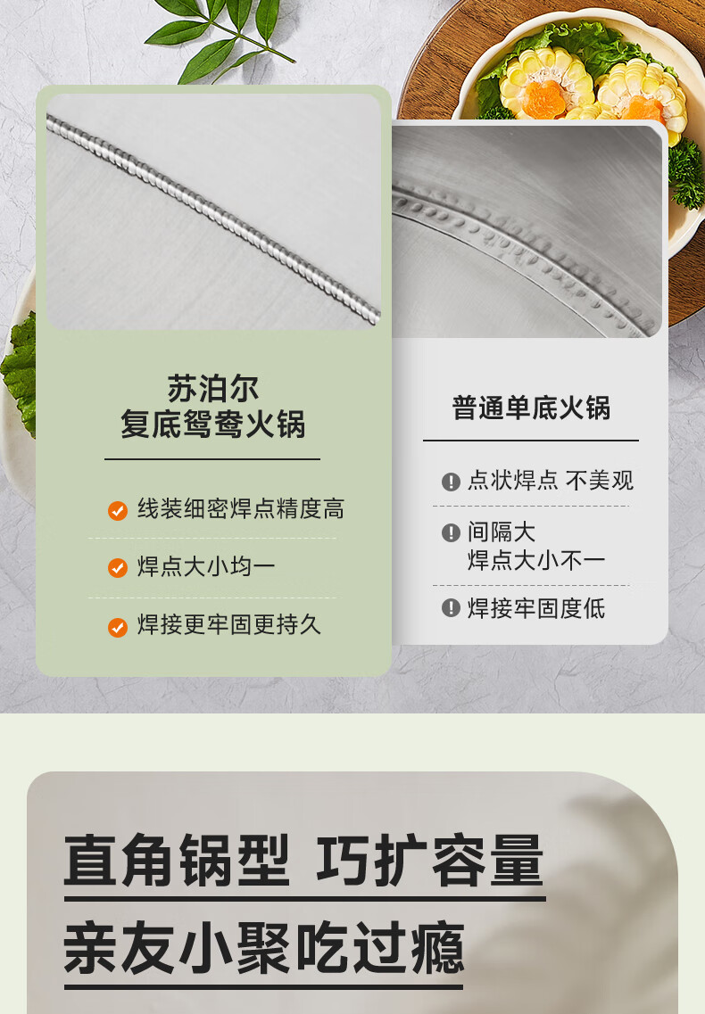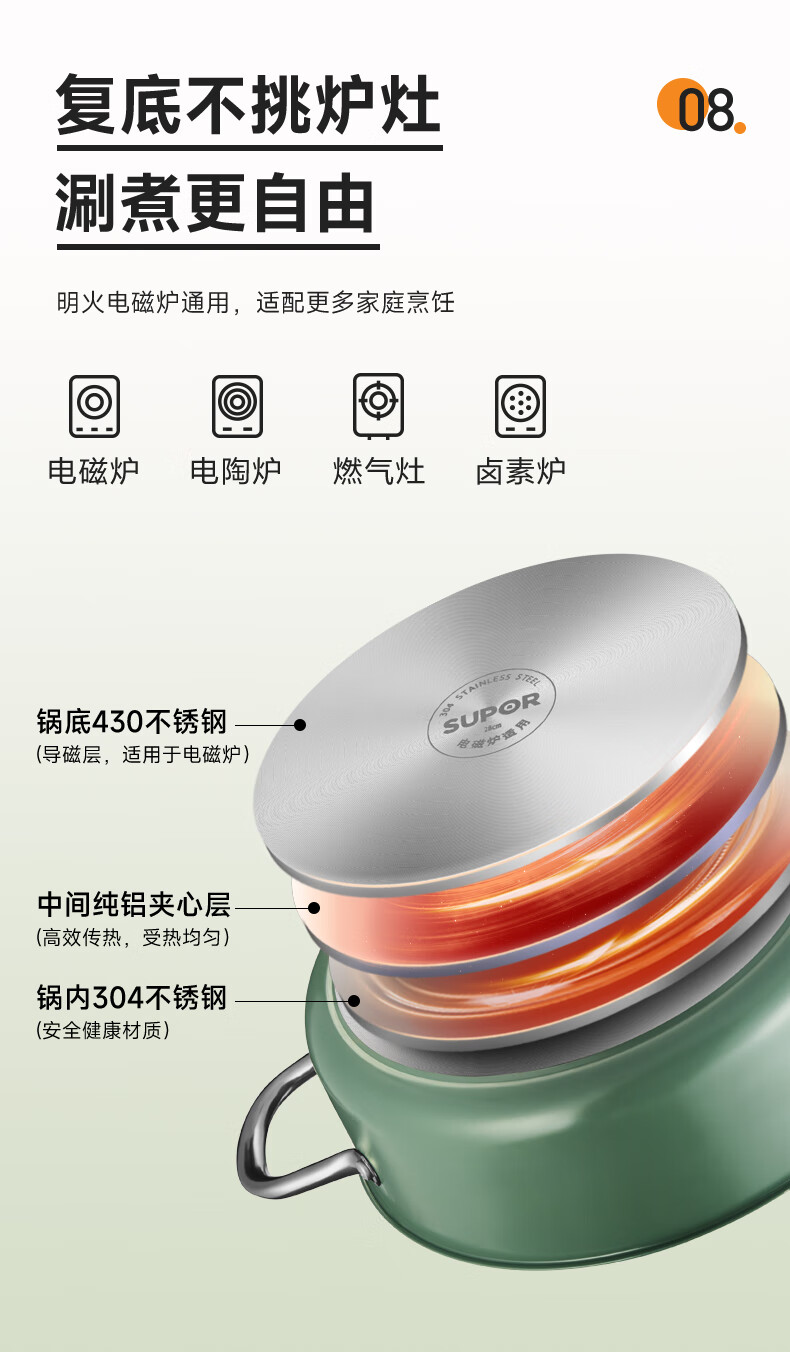 SUPOR hot pot 304 stainless steel mandarin duck pot double bottom thickened soup pot household easy-to-clean mutton open flame induction cooker universal ST28AB1-W mandarin duck pot white 28cm