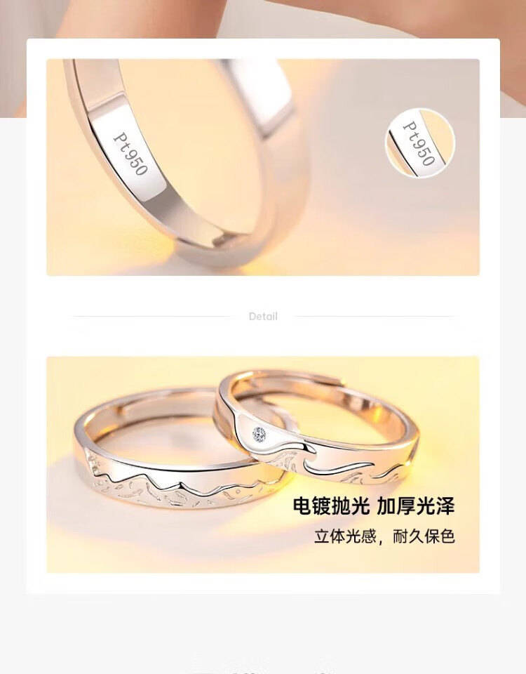 MZMZ platinum ring Shanhai pt950 platinum couple ring men's and women's ring engagement and proposal birthday anniversary gift light luxury couple ring