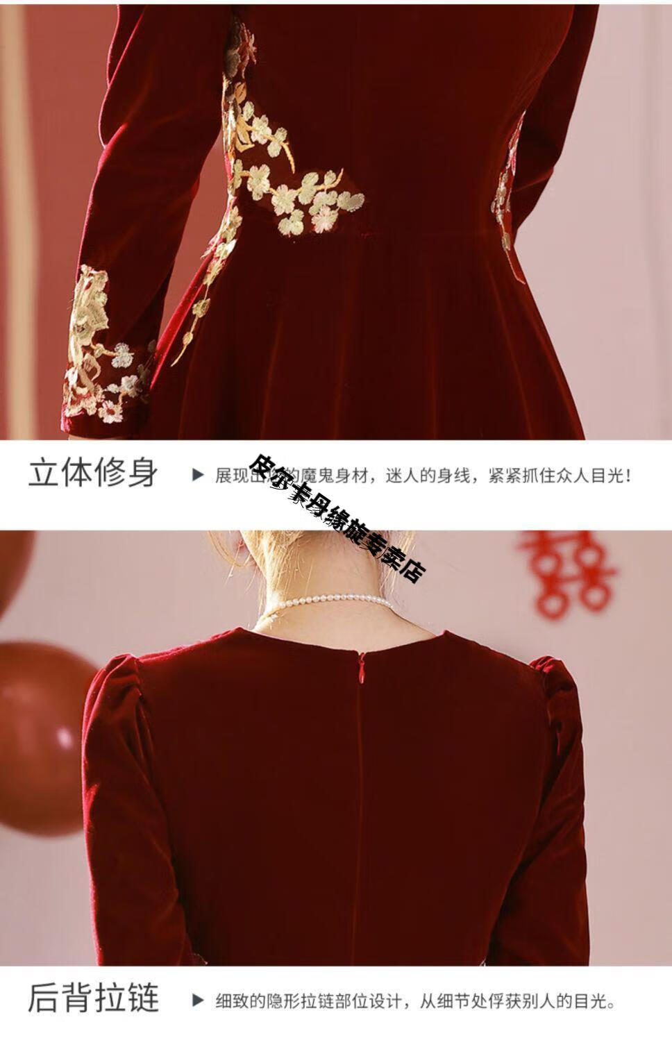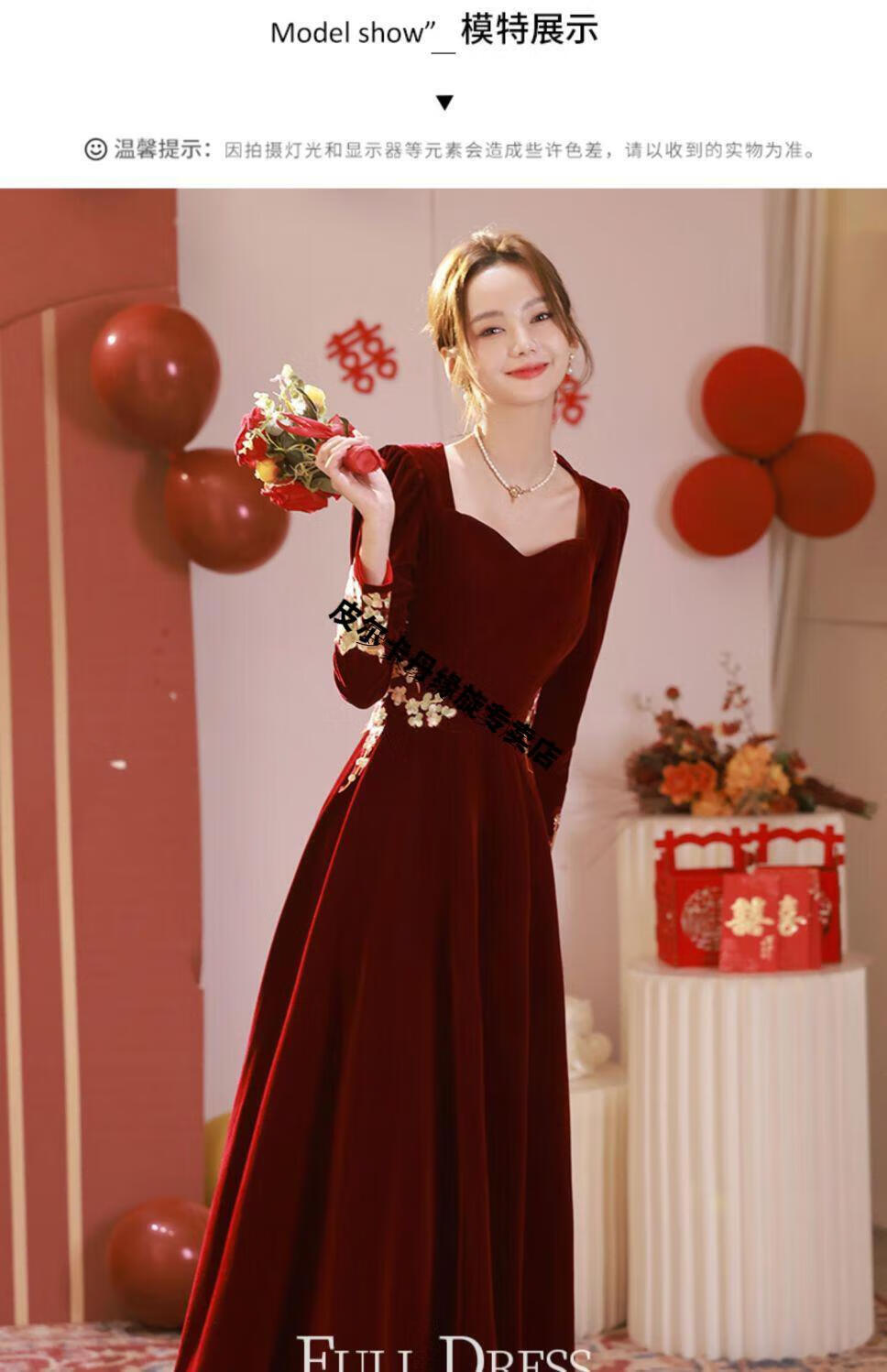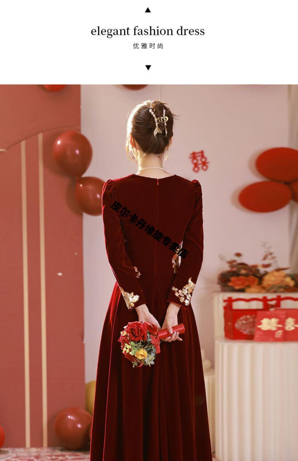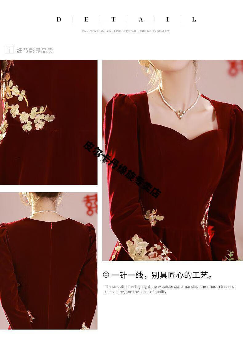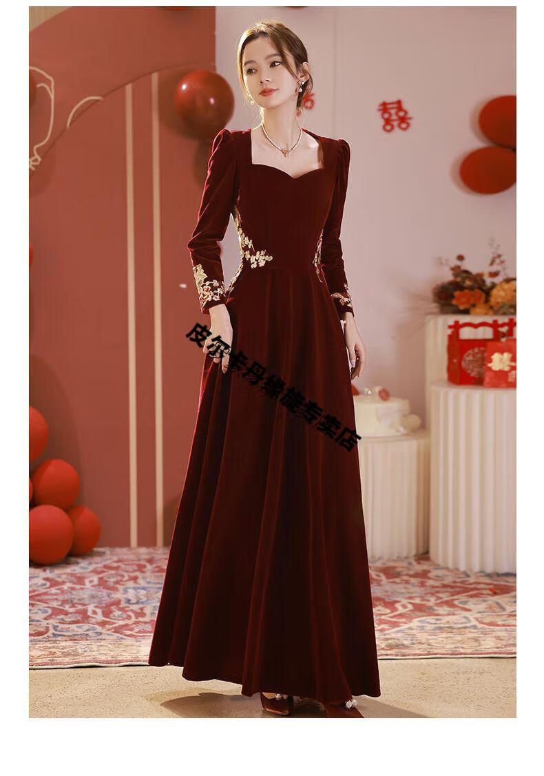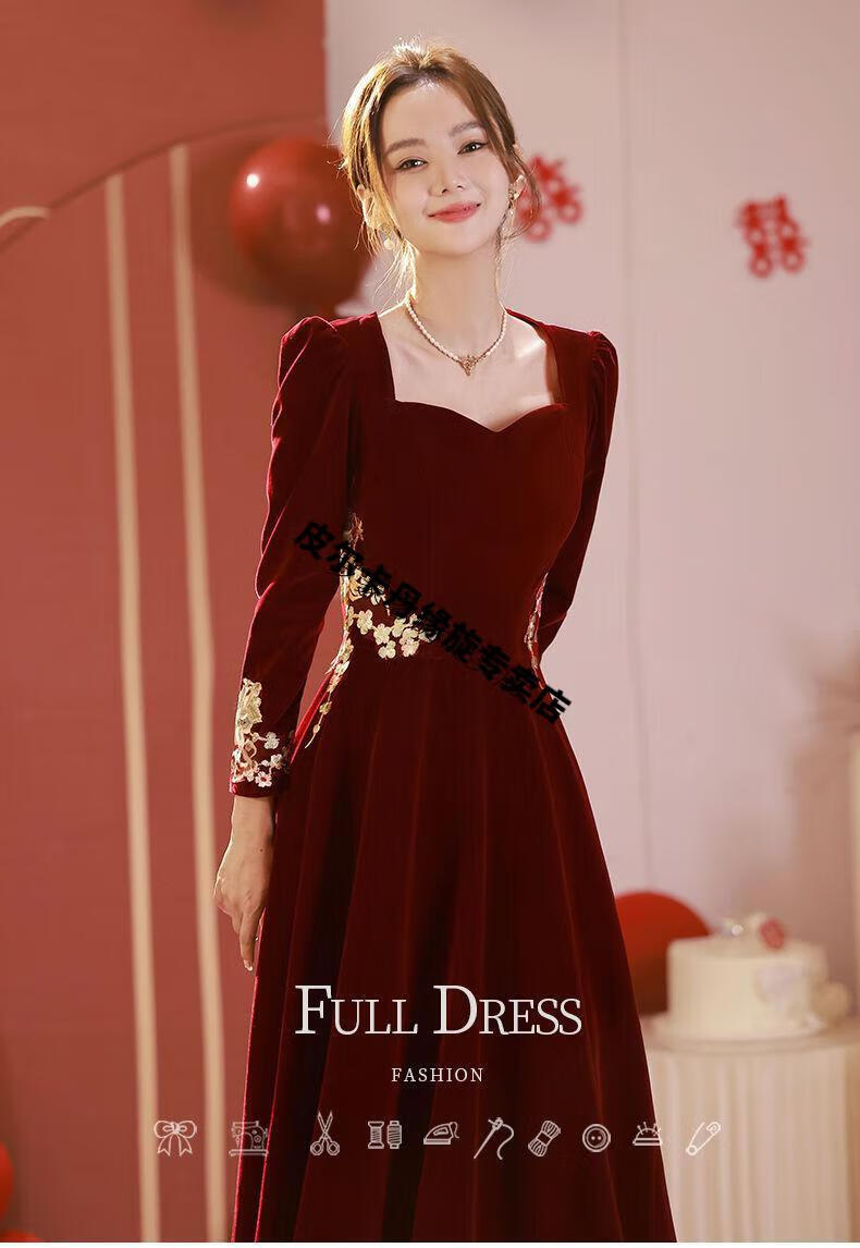 Pierre Cardin 23 New Toast Wear Bridal Red Wedding Winter High-end Velvet Engagement Dress Long Sleeve Autumn and Winter Women Burgundy L