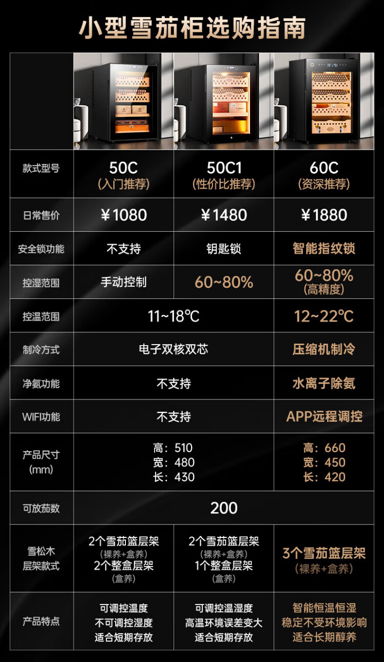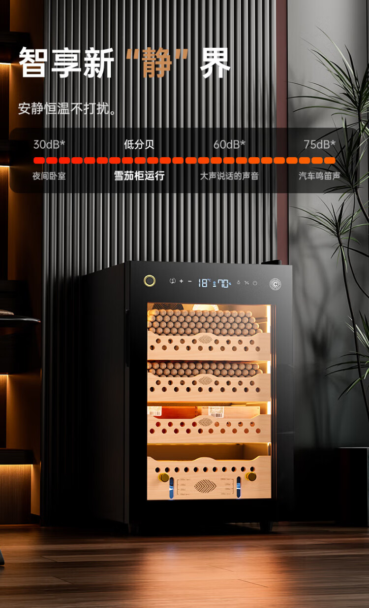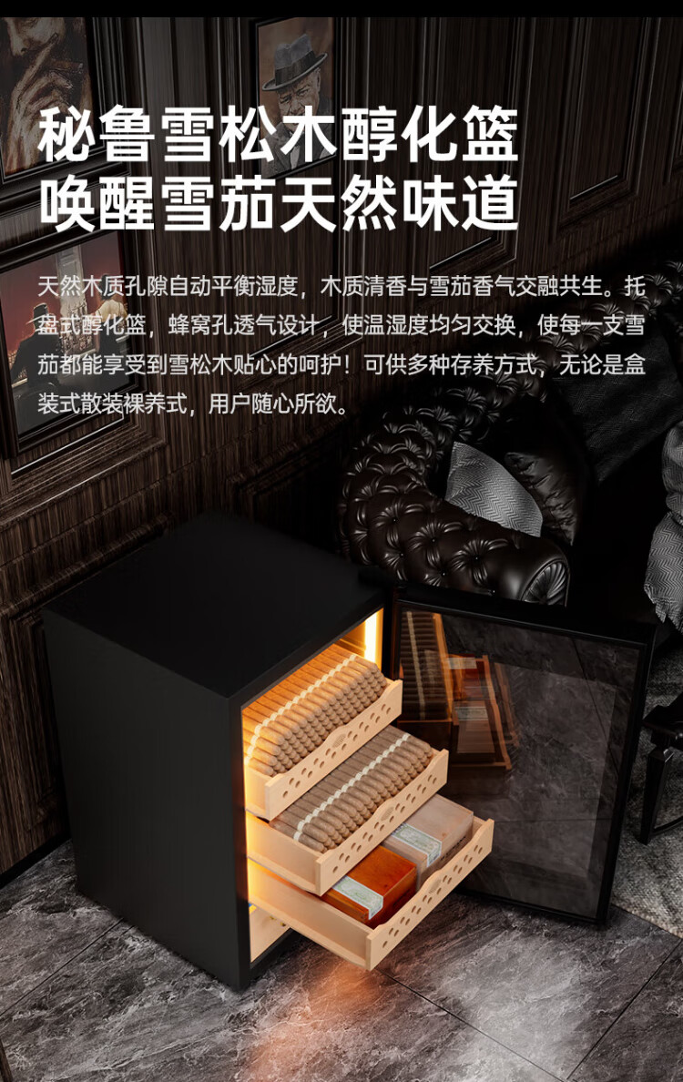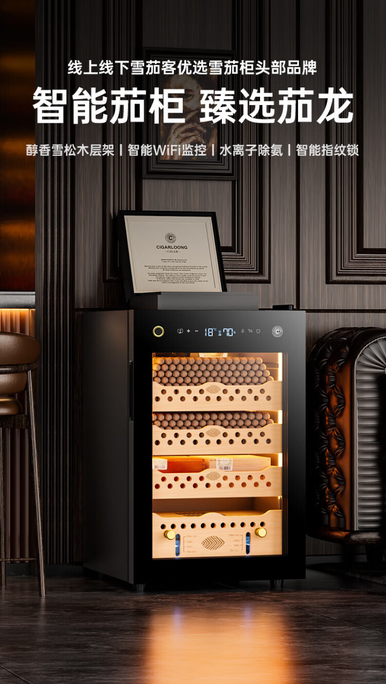 CIGARLOONG 60C cigar cabinet with constant temperature and humidity, purified ammonia wifi, Spanish cedar wood compressor, energy-saving household small mini smart fingerprint lock cigar cabinet, constant temperature and humidity control for raising cigars, classic cigar basket model, fingerprint lock + purified ammonia + cedar wood shelf