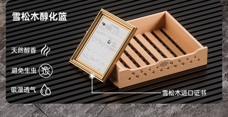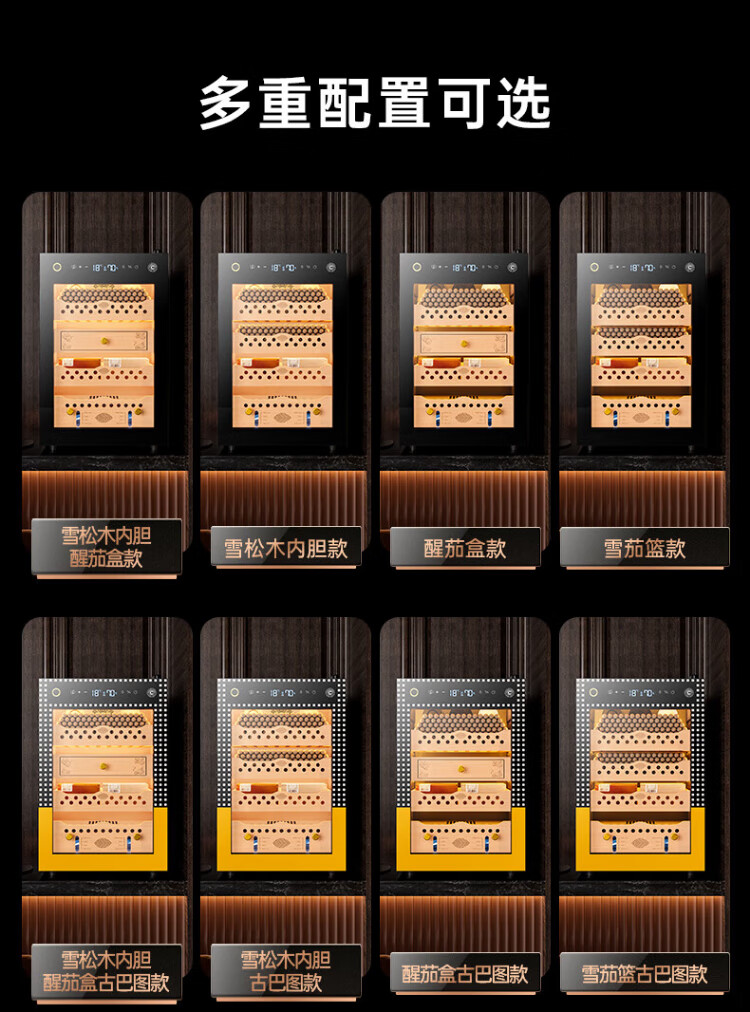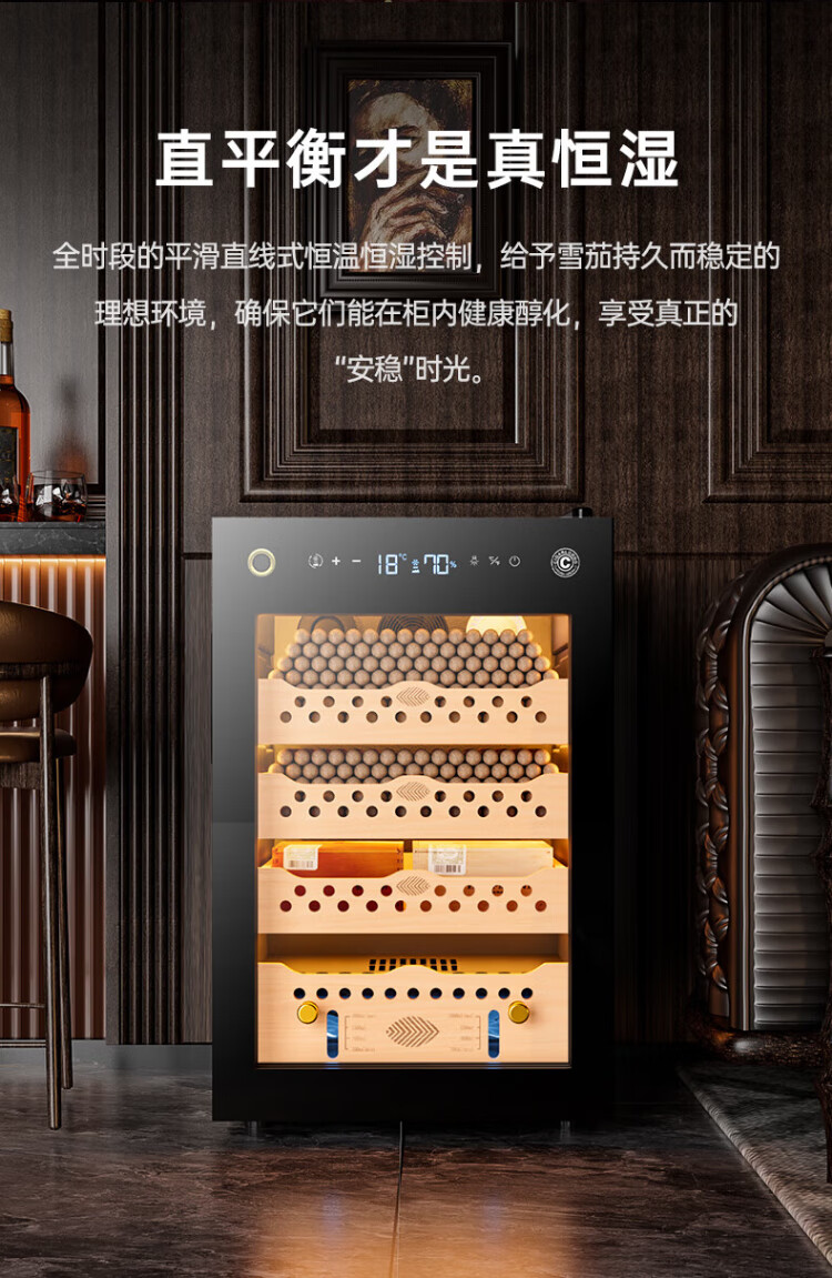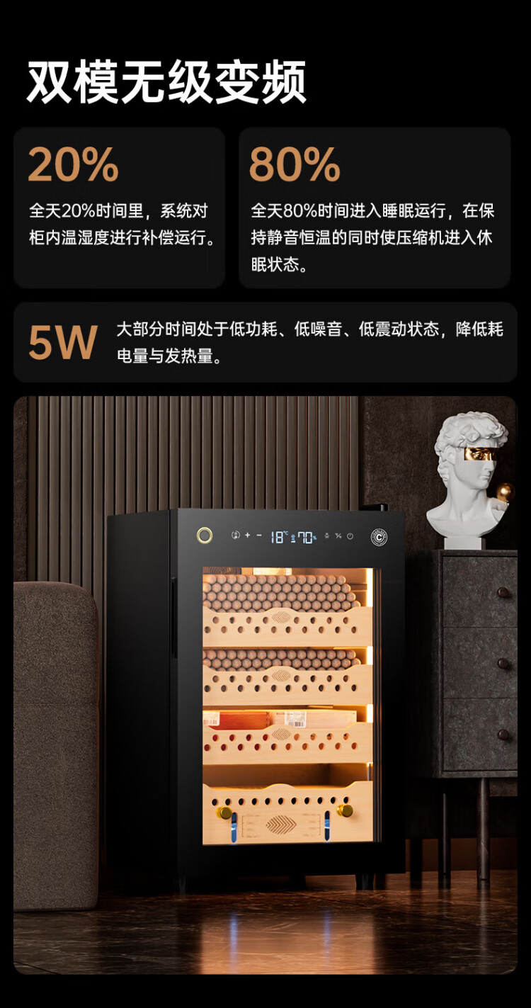 CIGARLOONG 60C cigar cabinet with constant temperature and humidity, purified ammonia wifi, Spanish cedar wood compressor, energy-saving household small mini smart fingerprint lock cigar cabinet, constant temperature and humidity control for raising cigars, classic cigar basket model, fingerprint lock + purified ammonia + cedar wood shelf