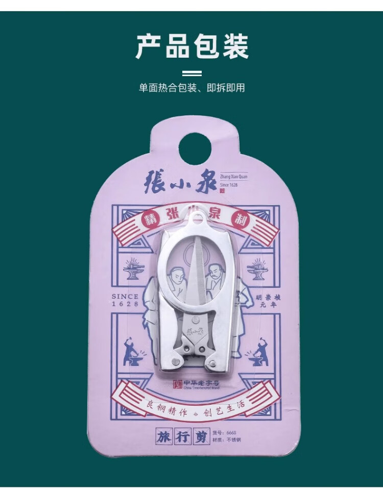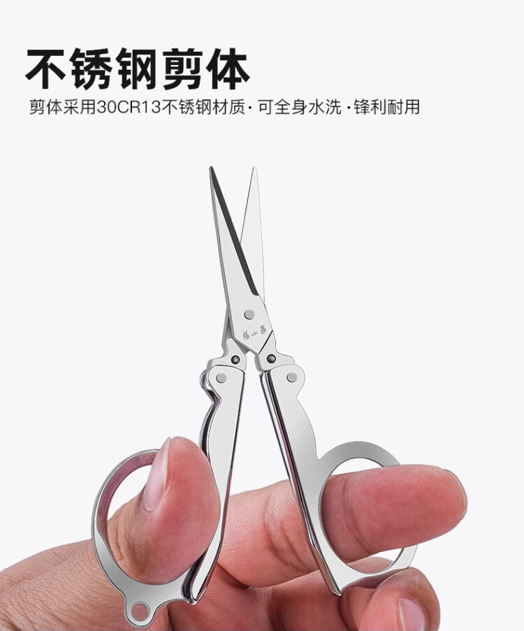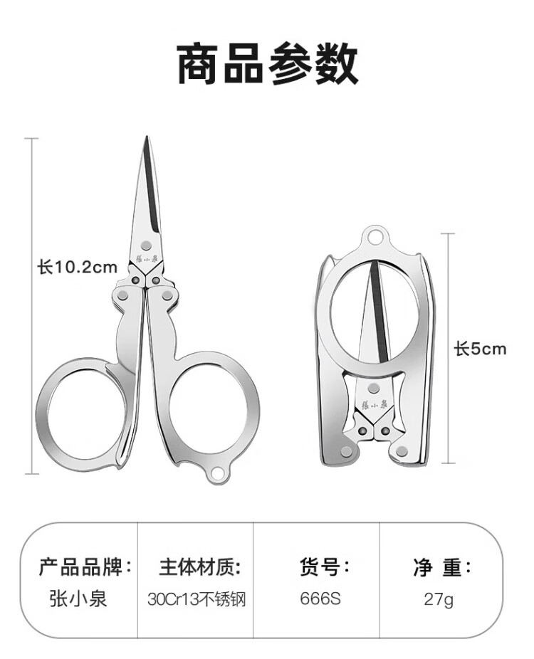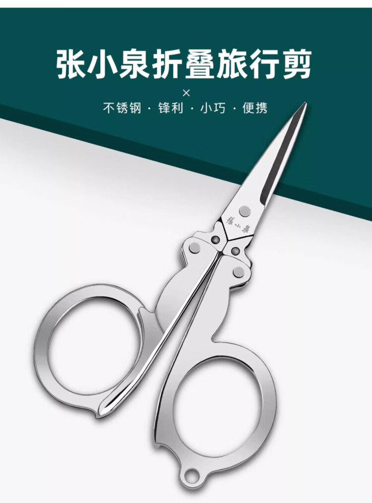 张小泉折叠剪刀便携迷你旅行随身小剪刀小号不锈钢剪子鼻毛钓鱼剪 折叠剪刀(不锈钢)