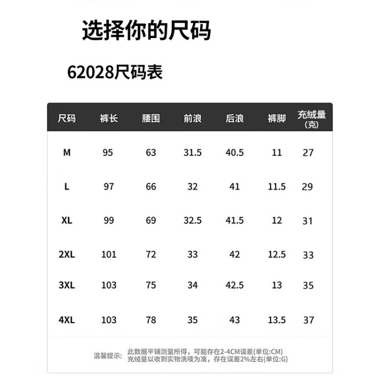 Outseam (cm) 99 cm 101.5 cm 104 cm 106.5 cm 109 cm