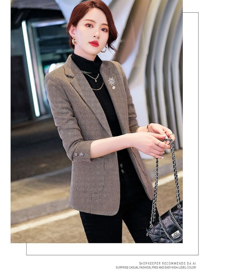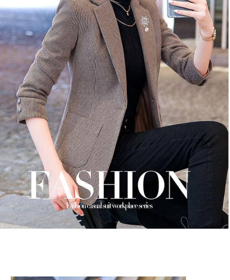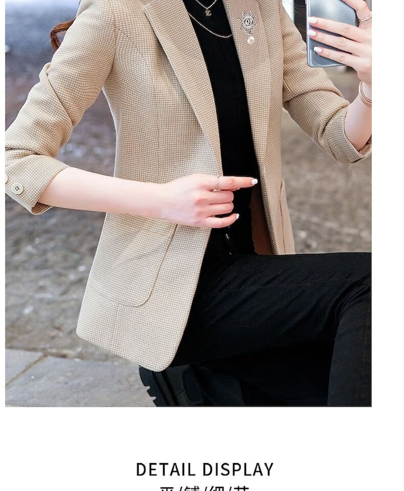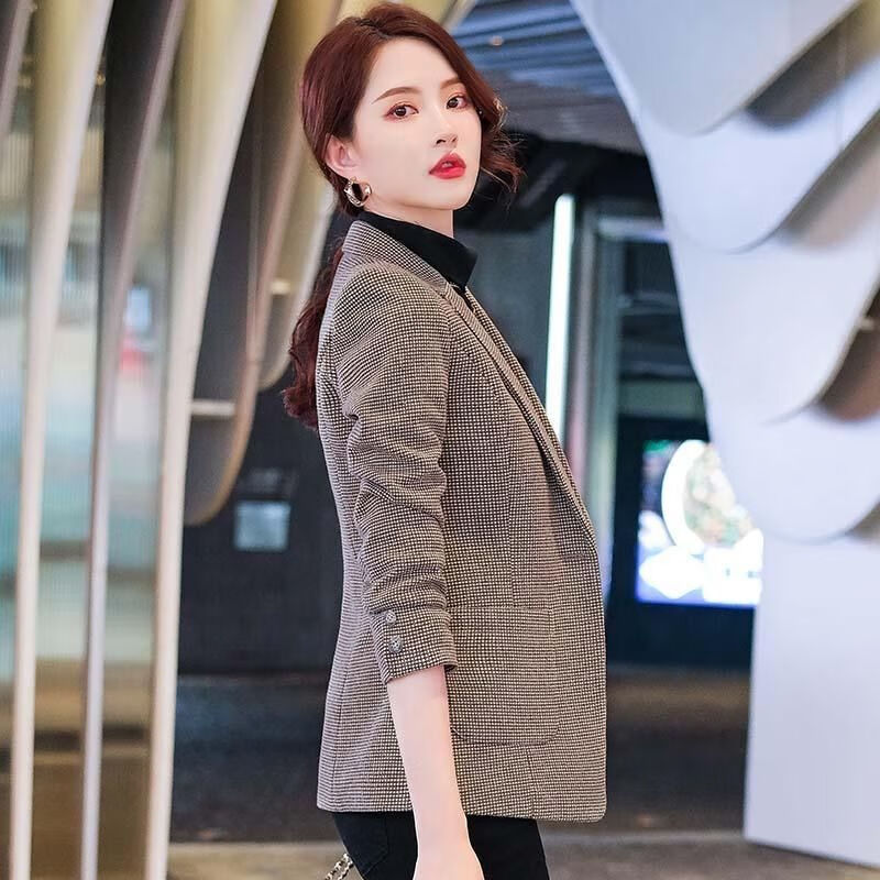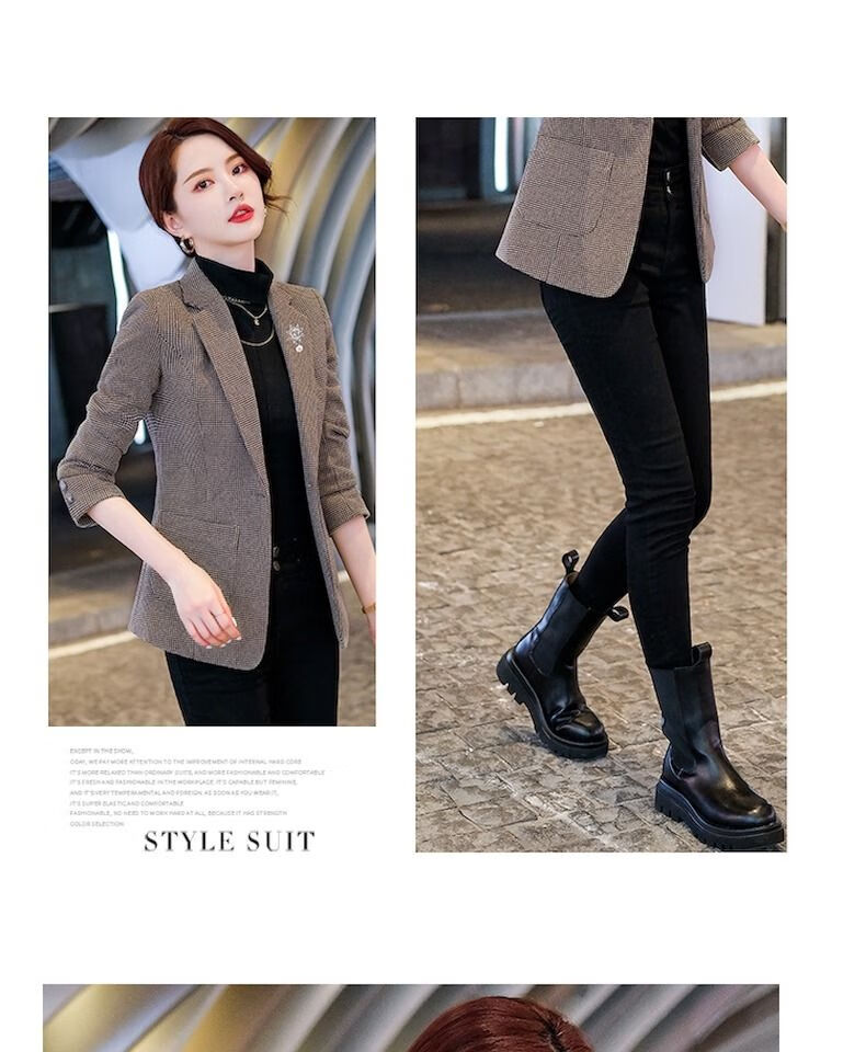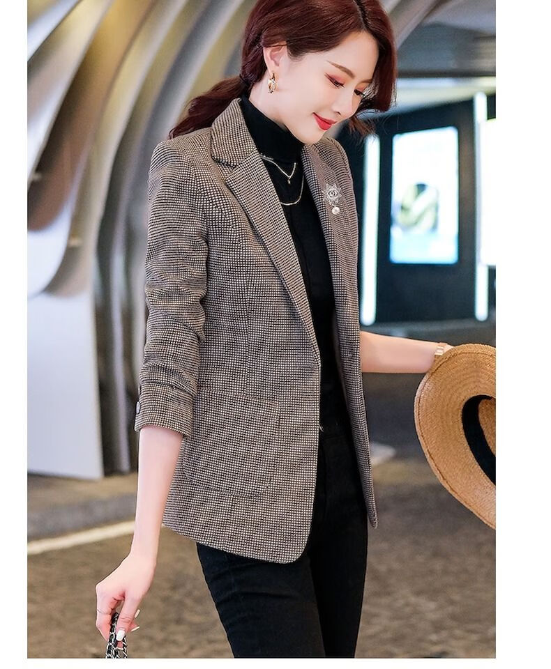 Woodpecker (TUCANO) small suit jacket for women 2025 spring and autumn new high-end plaid classic houndstooth woolen suit men's suit autumn and winter coffee grid coffee grid plus cotton thickened S recommended 80-95